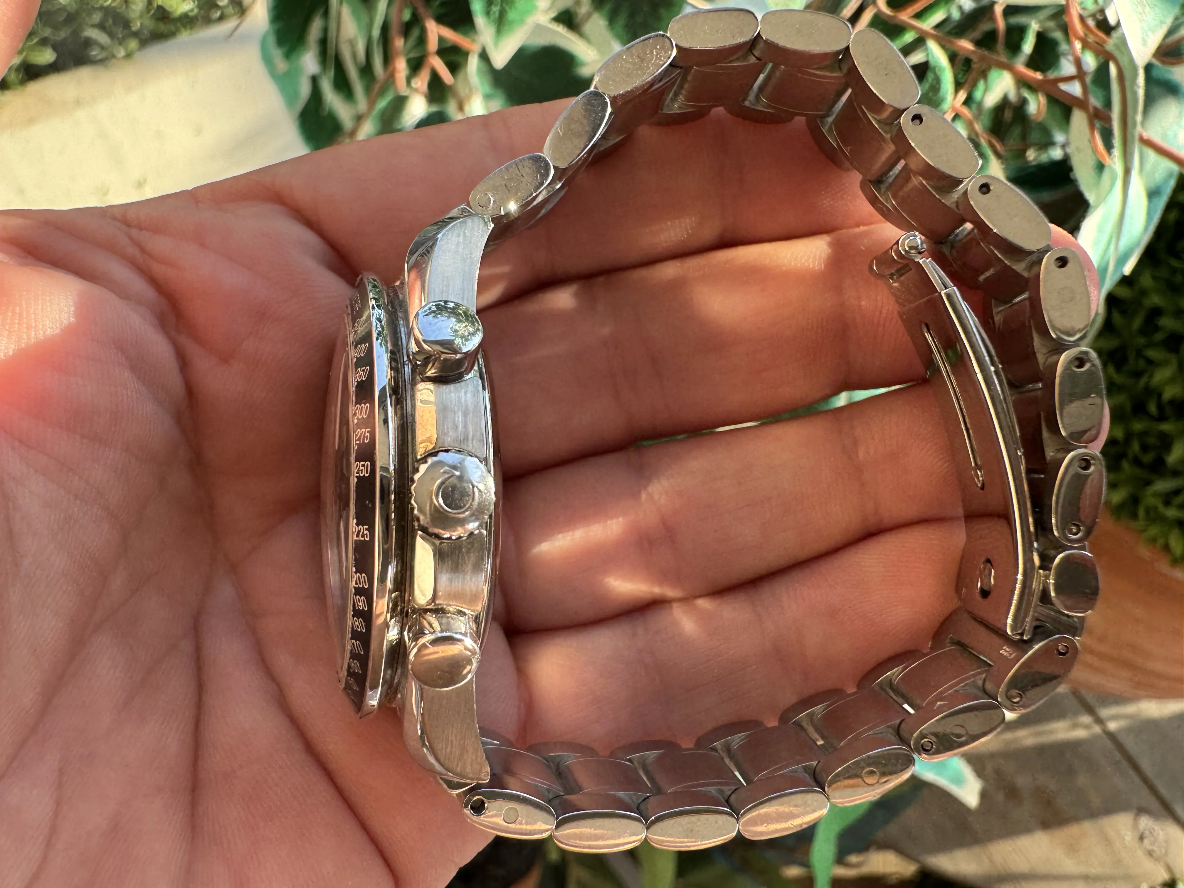 The watch is in good functional condition and has been a reliable part of my collection. It keeps time as it should, and all complications—day, date, month, 24h indicator, and chronograph—are working properly.