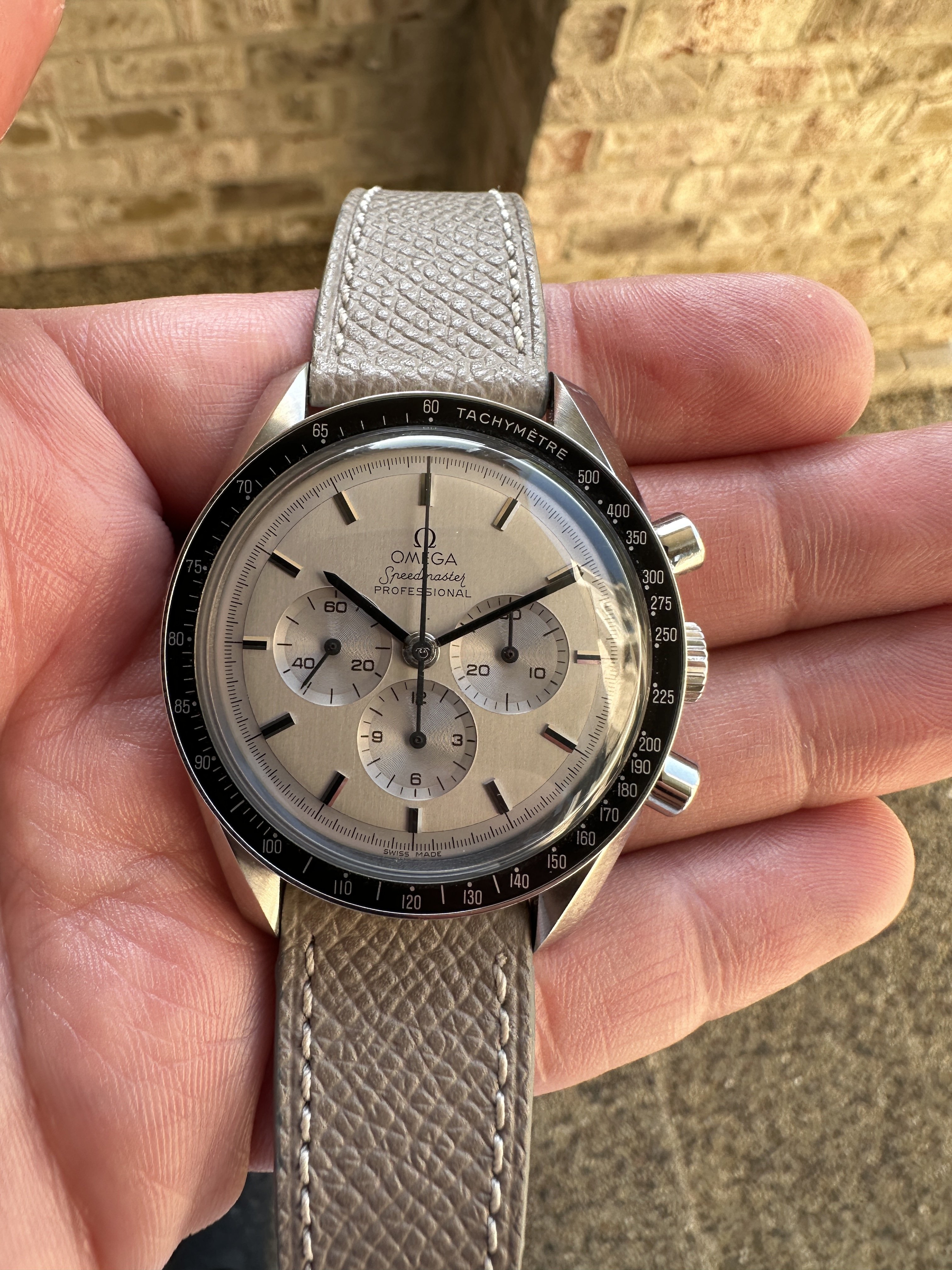 ·Up for grabs is a Speedmaster Rhodium Dial mod. This was worn after completion, but is still in nice overall shape.