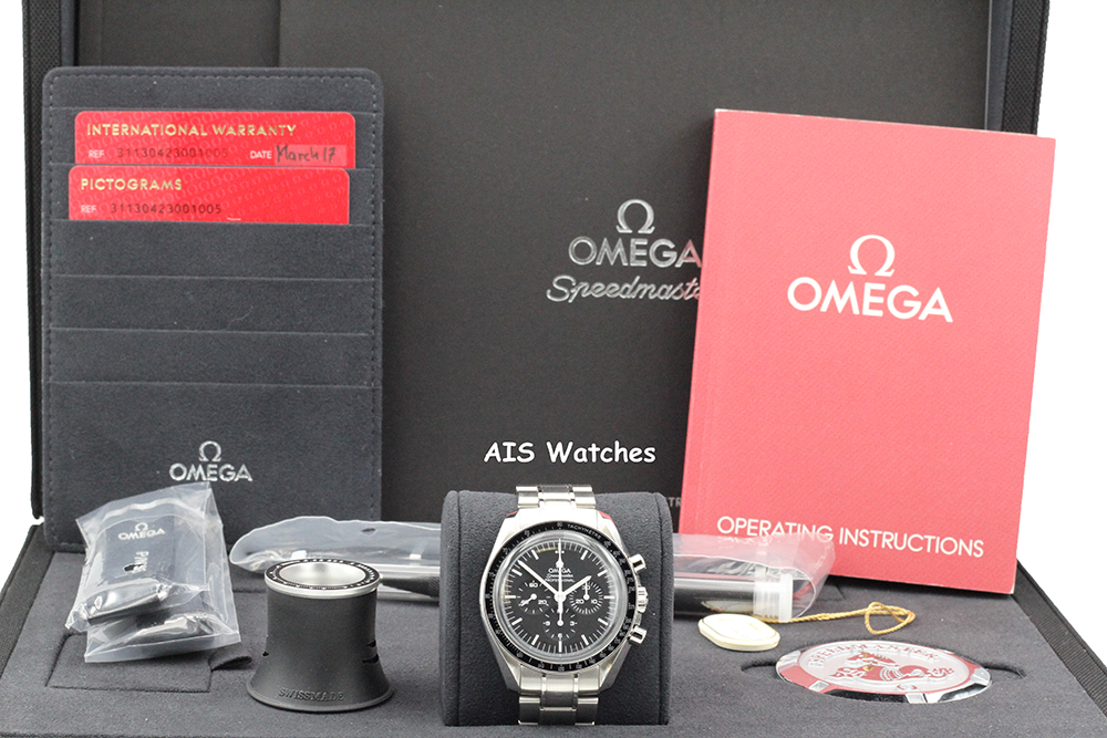 Up for sale is an Omega Speedmaster Moon Watch Ref# 311.30.42.30.01.005 Hesalite Crystal Box & Papers . The timepiece is in excellent condition.