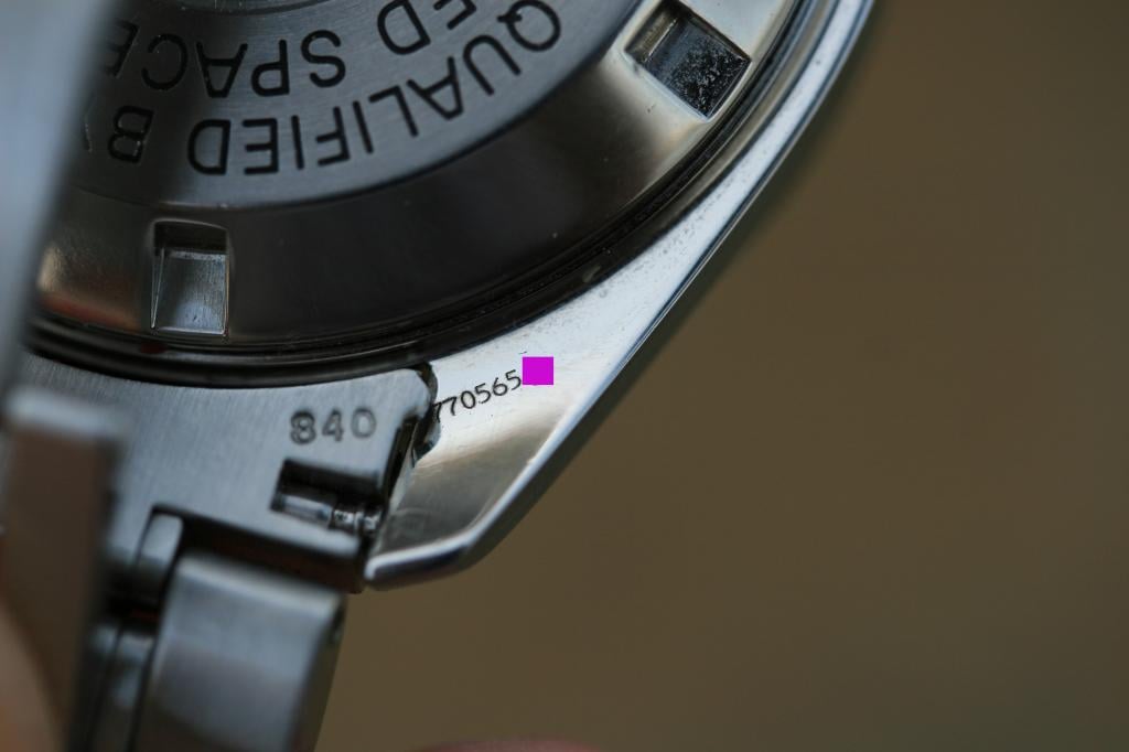 Excellent condition with no dings, dents, or deep scratches. Sharp and defined lugs on case. Serial number is intact on lug.
