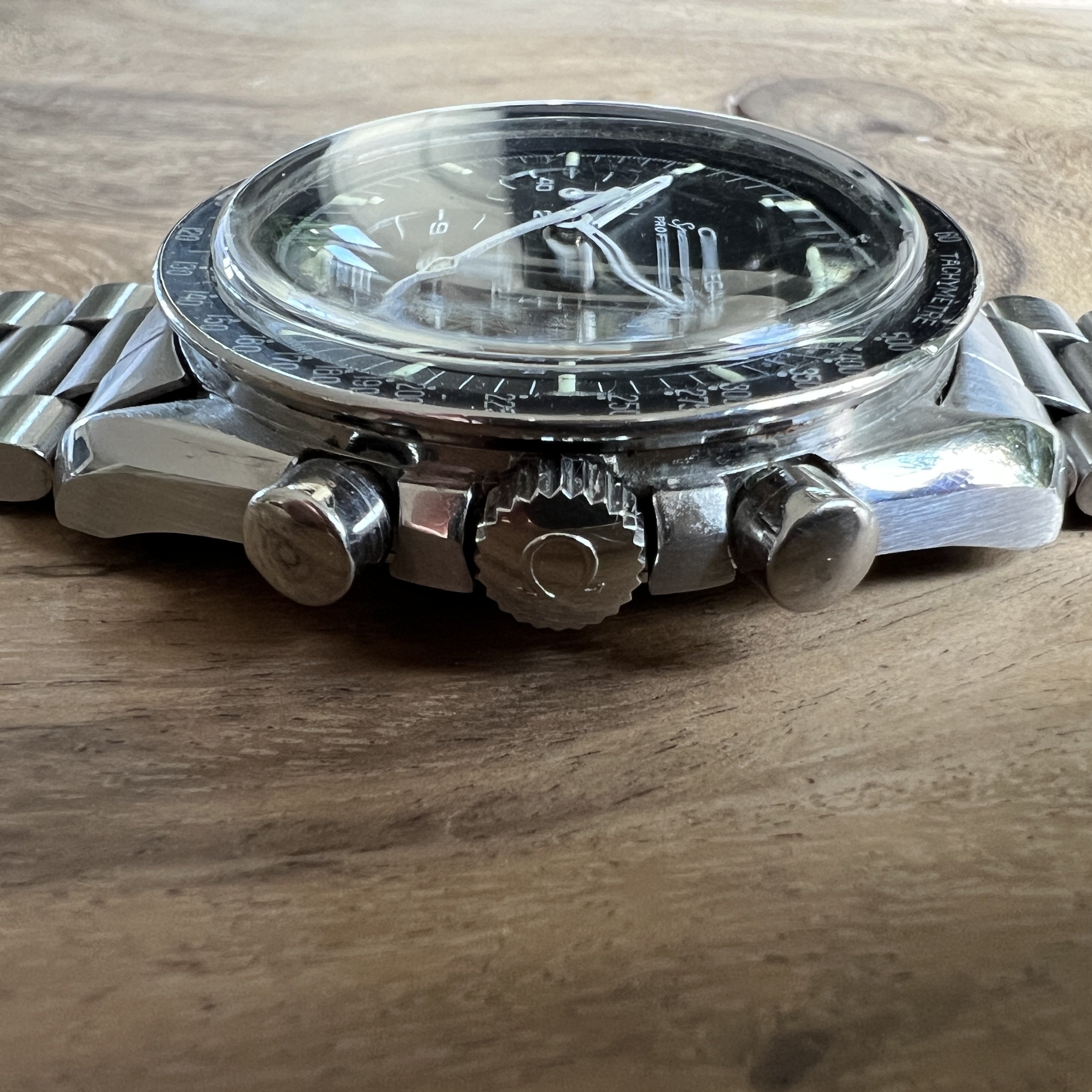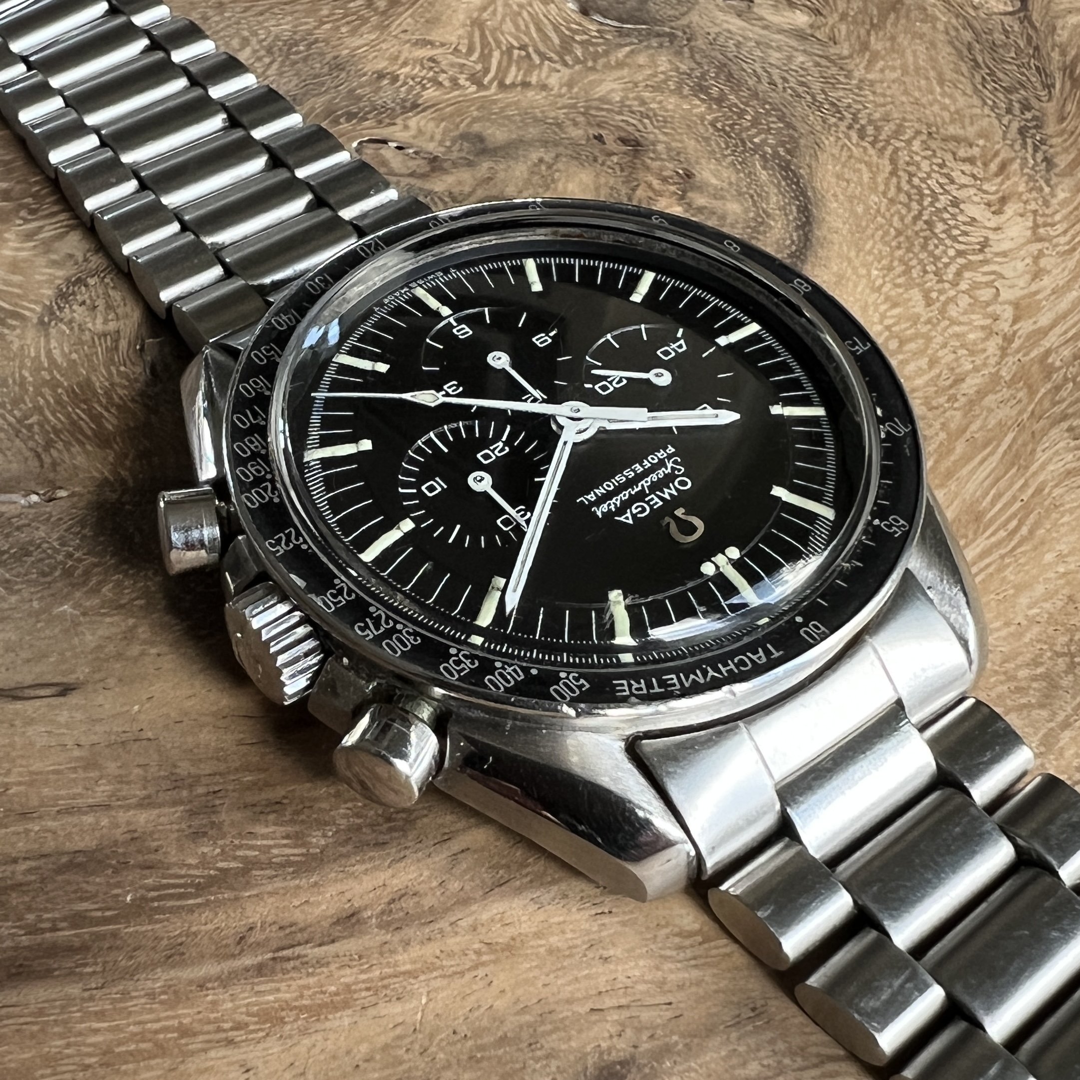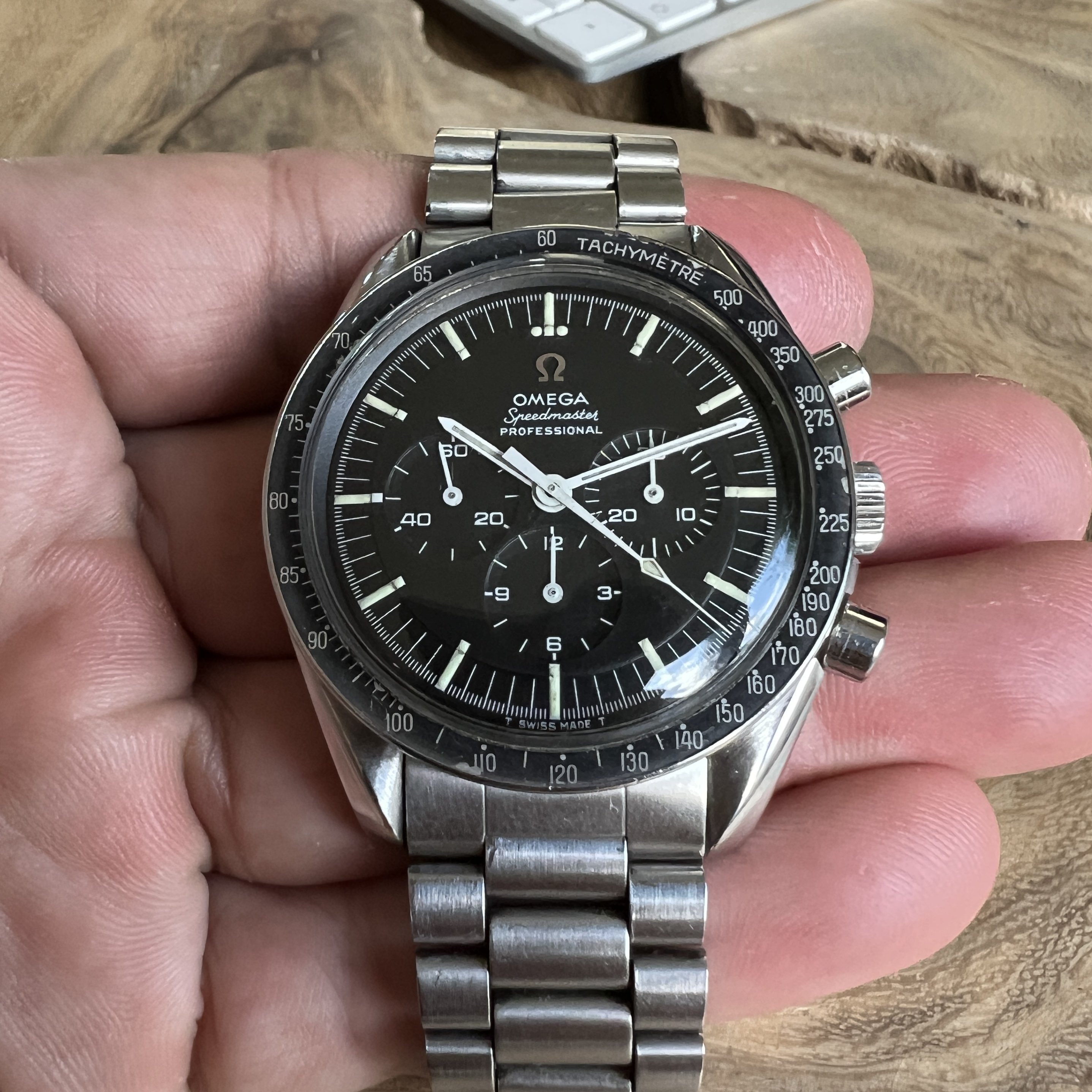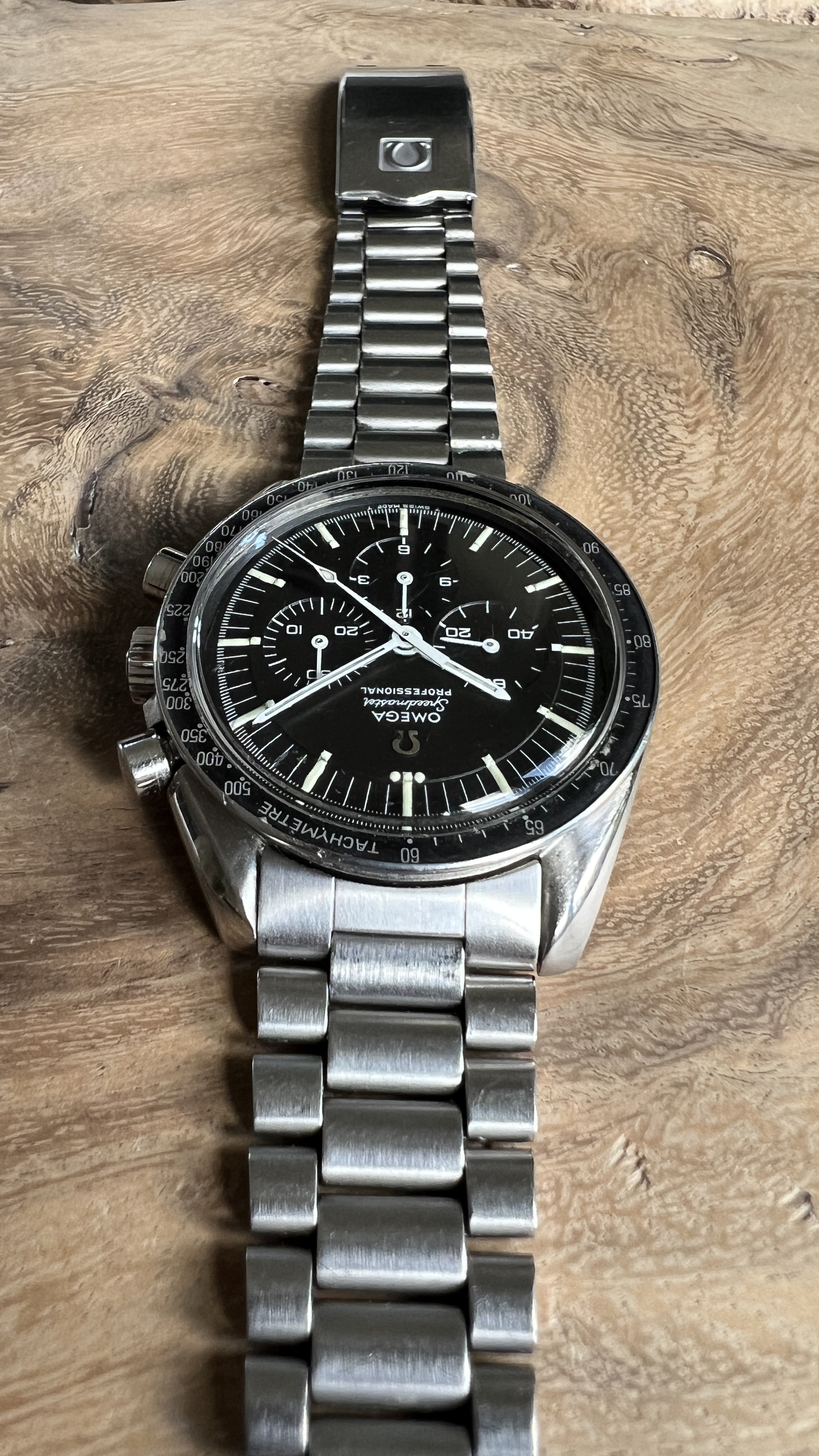 I did manage to contaminate a friend of mine into owning multiple Speedmasters and originally sourced this one for him. He did not bond with this piece as much as with the birth year Speedmaster I got him too, so I've bought it back. After long consideration, I'm now listing it for sale as I have another, cleaner, example of the same reference.