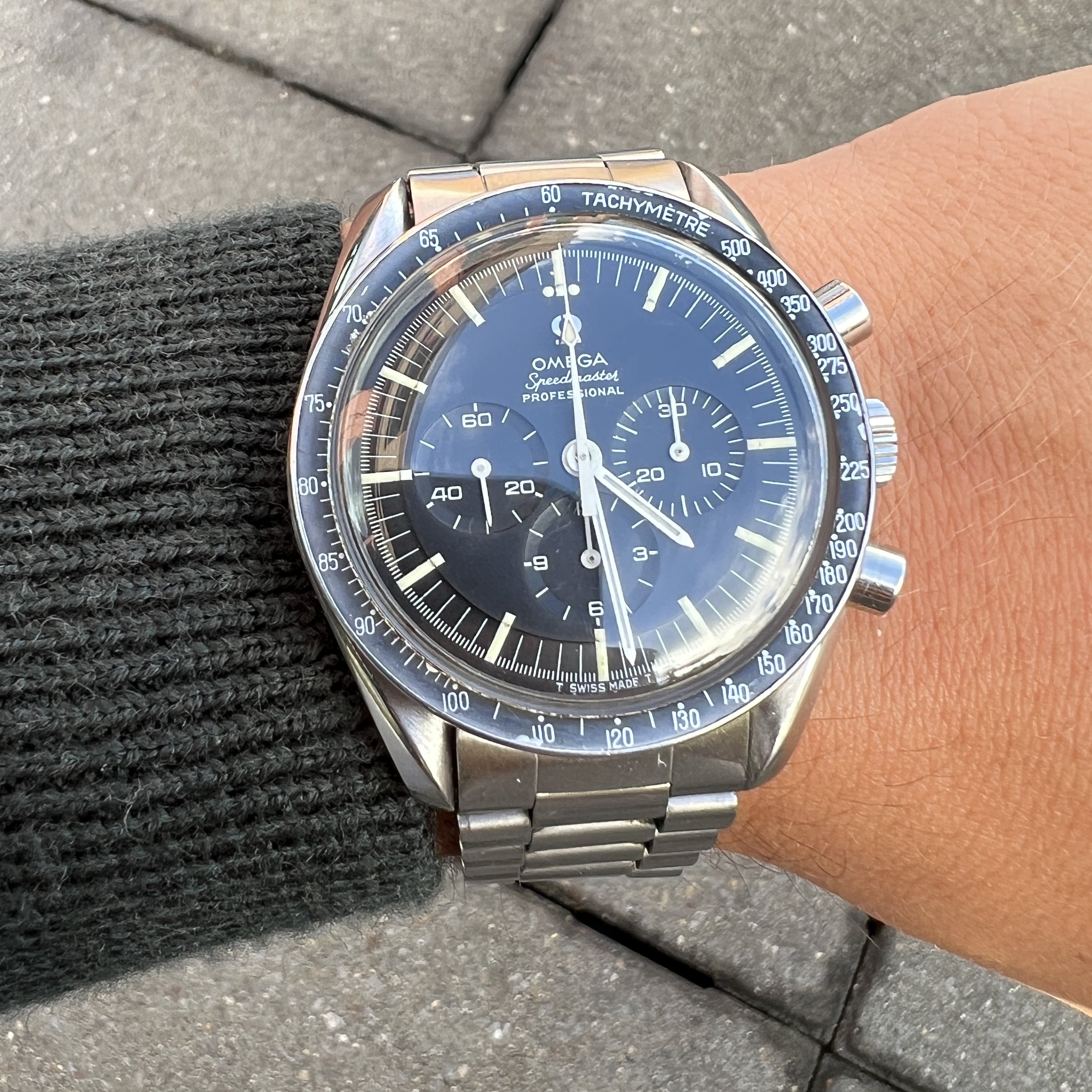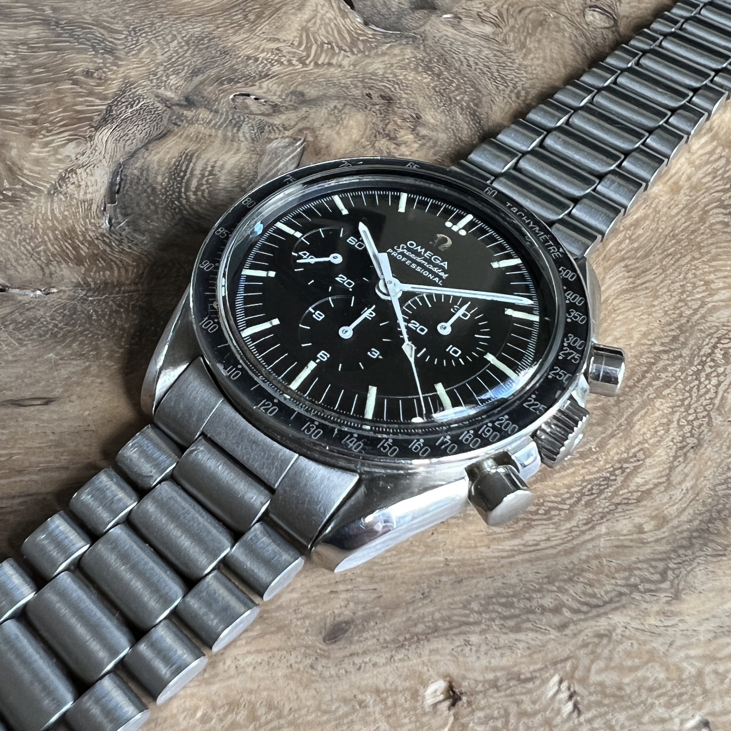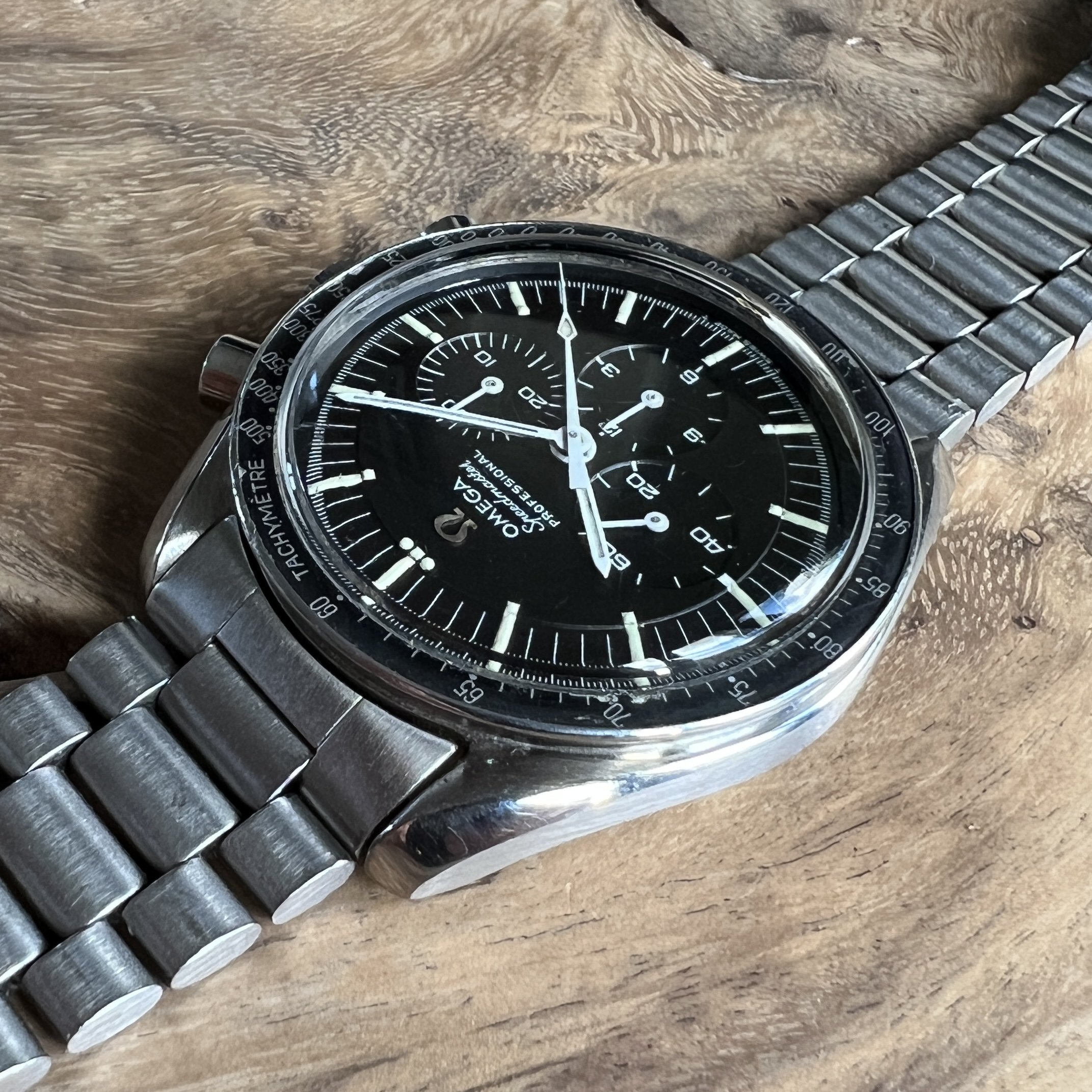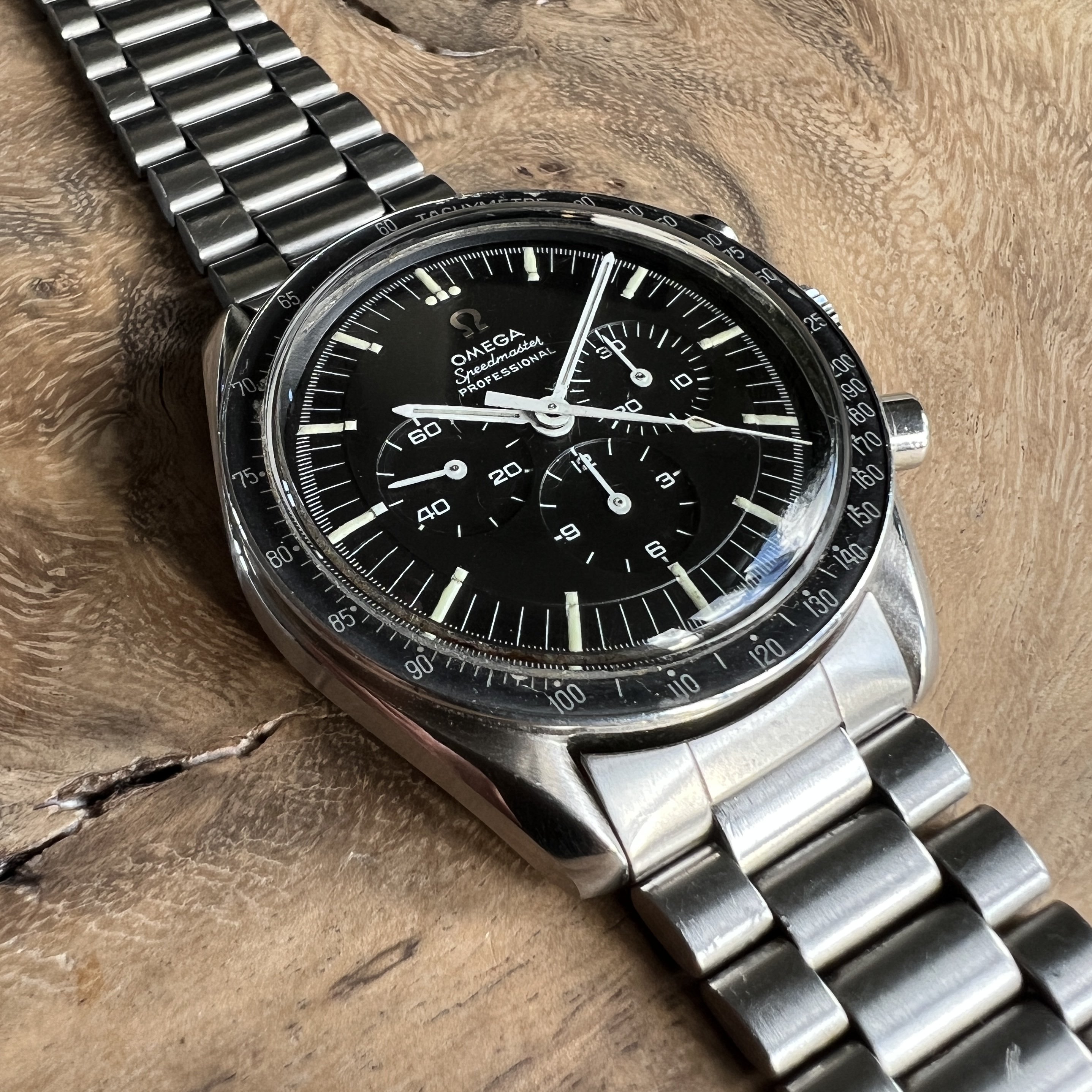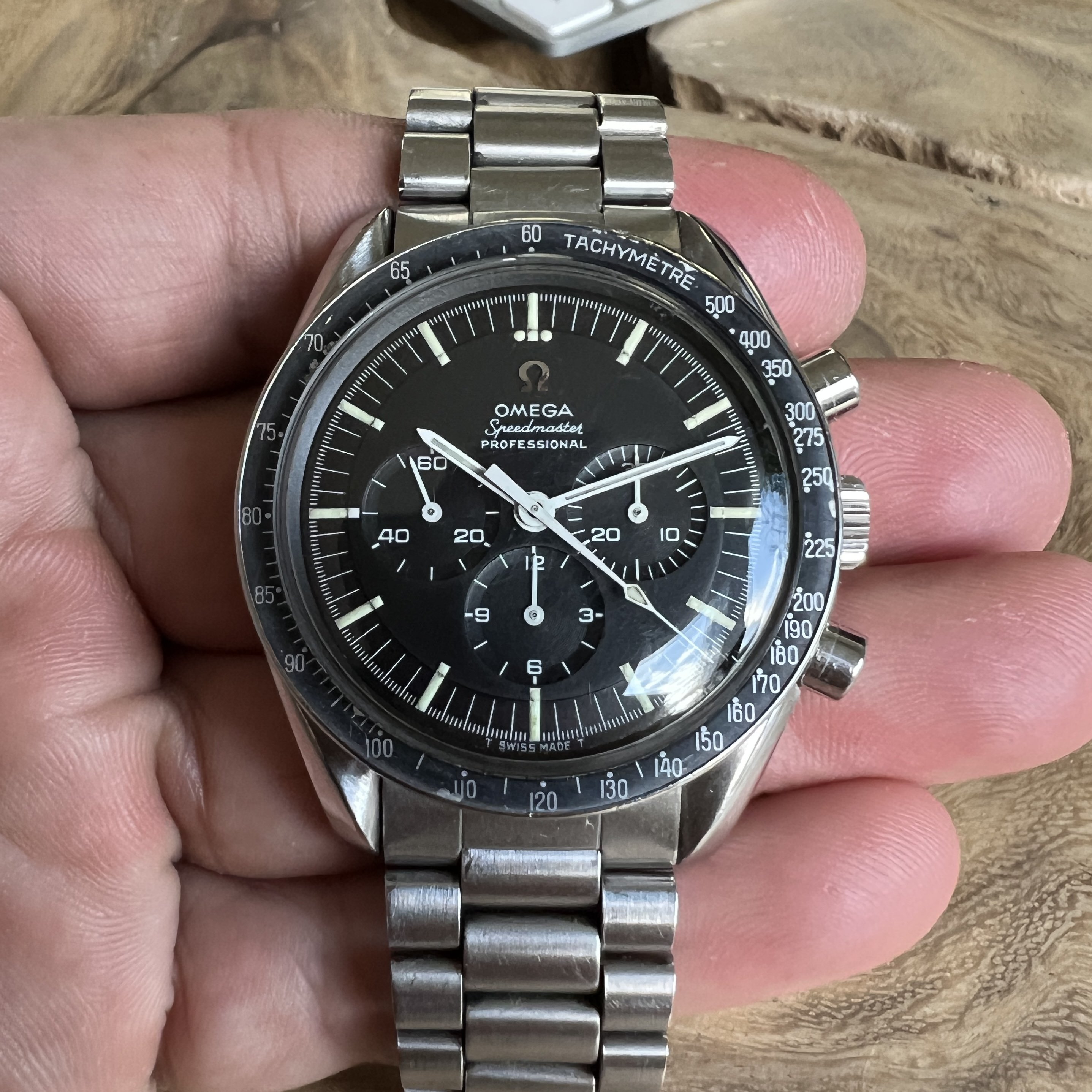 I did manage to contaminate a friend of mine into owning multiple Speedmasters and originally sourced this one for him. He did not bond with this piece as much as with the birth year Speedmaster I got him too, so I've bought it back. After long consideration, I'm now listing it for sale as I have another, cleaner, example of the same reference.