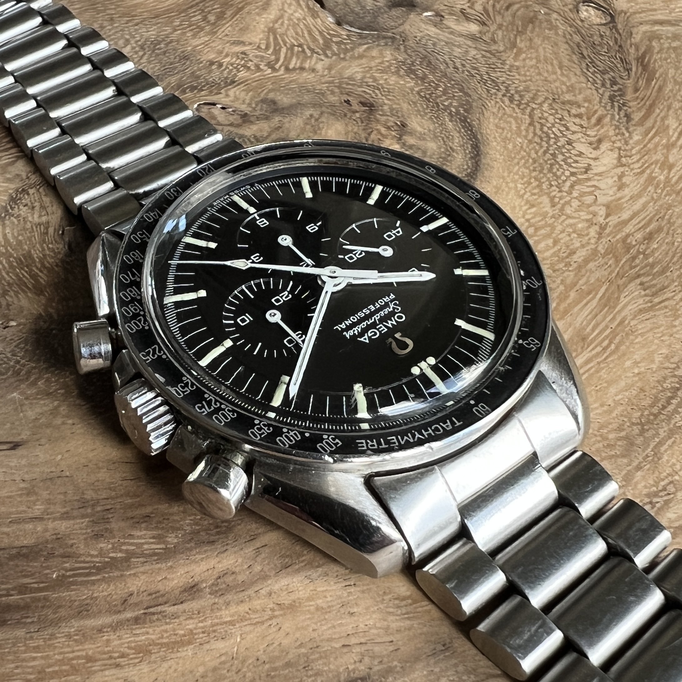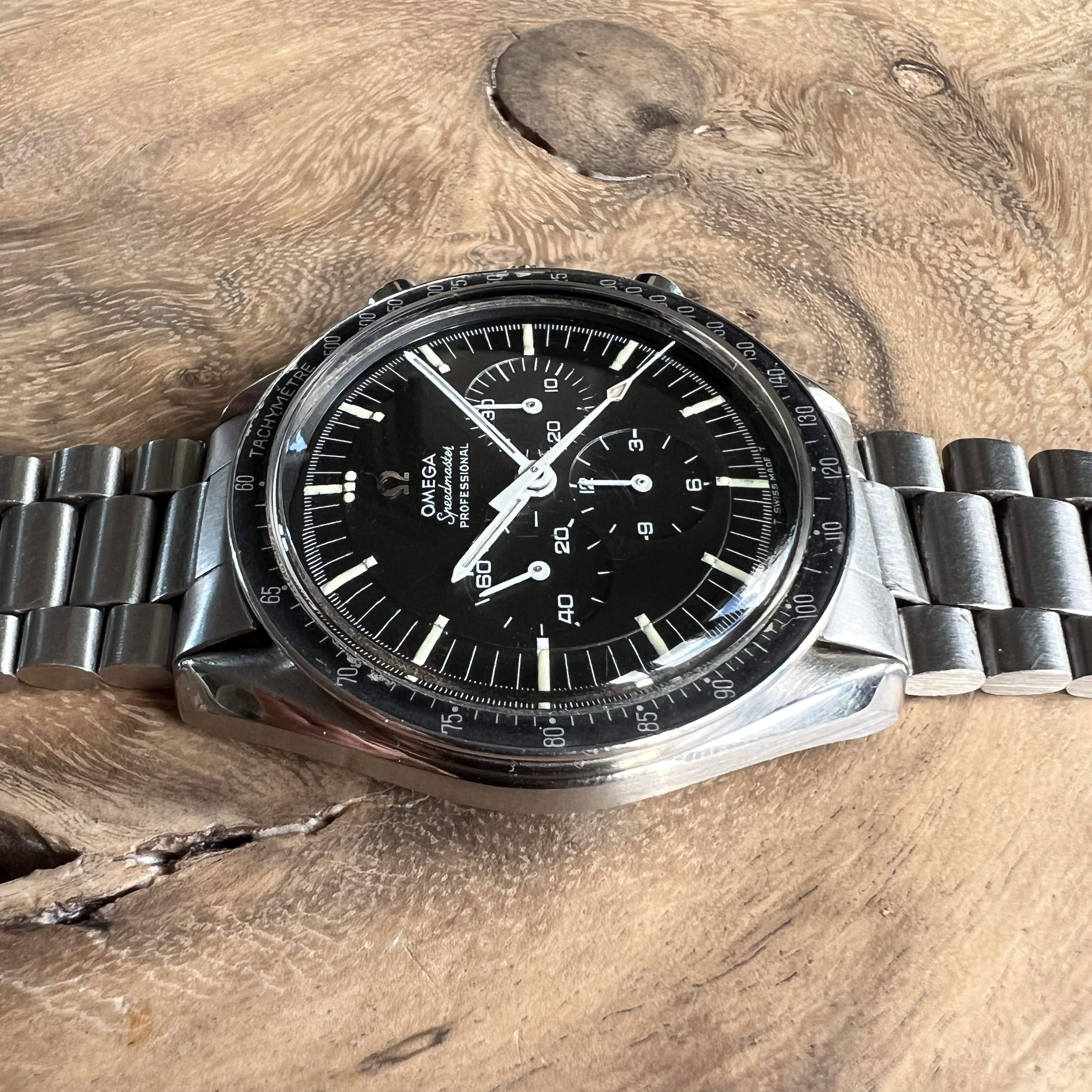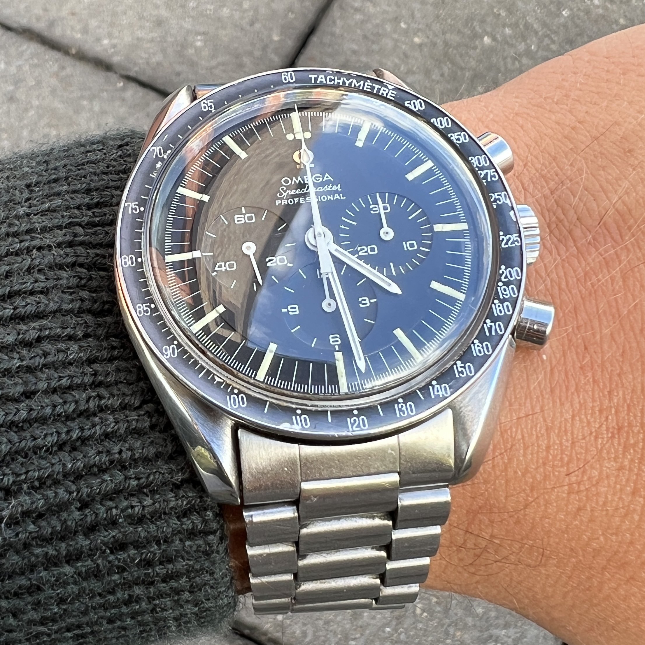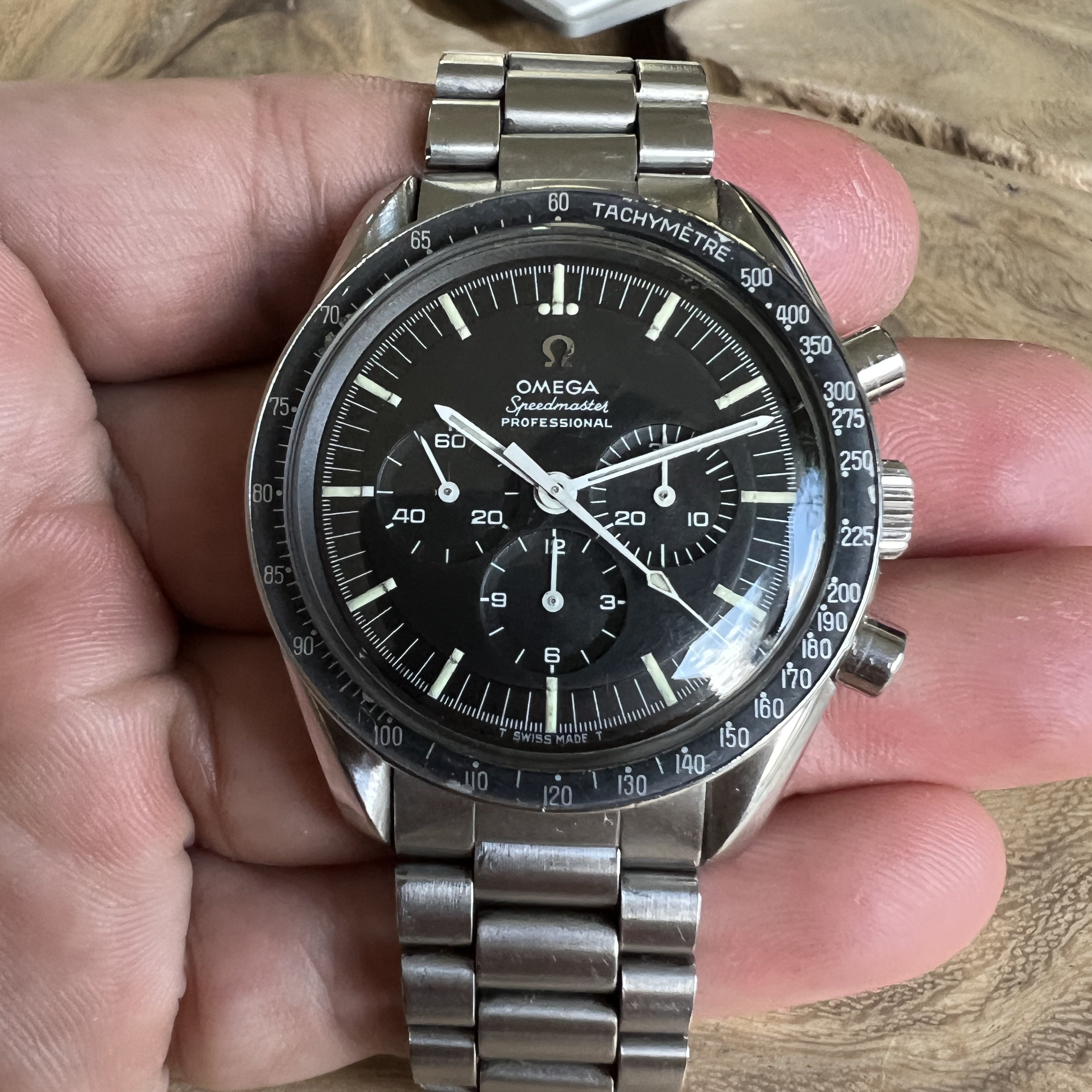 I did manage to contaminate a friend of mine into owning multiple Speedmasters and originally sourced this one for him. He did not bond with this piece as much as with the birth year Speedmaster I got him too, so I've bought it back. After long consideration, I'm now listing it for sale as I have another, cleaner, example of the same reference.