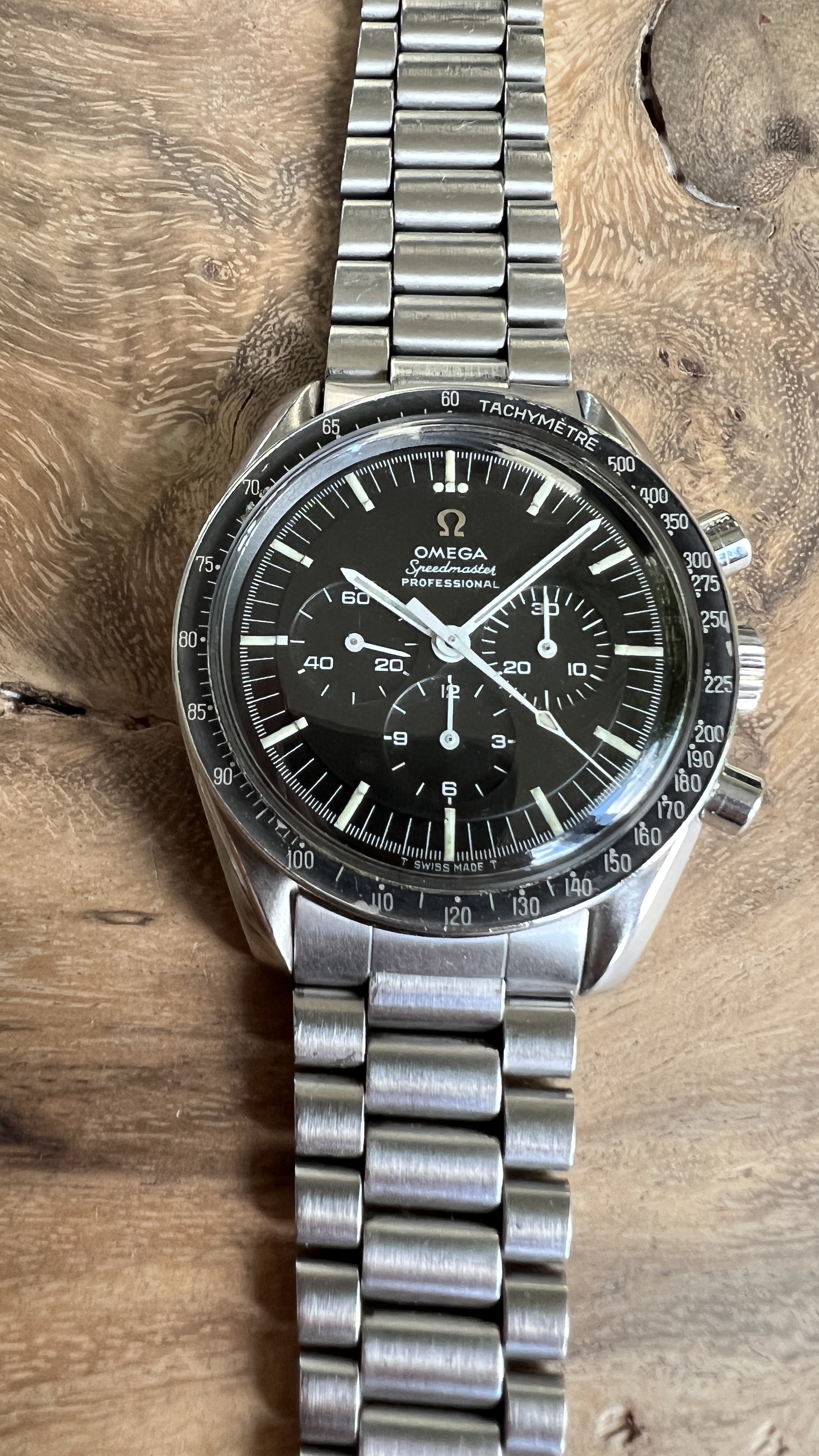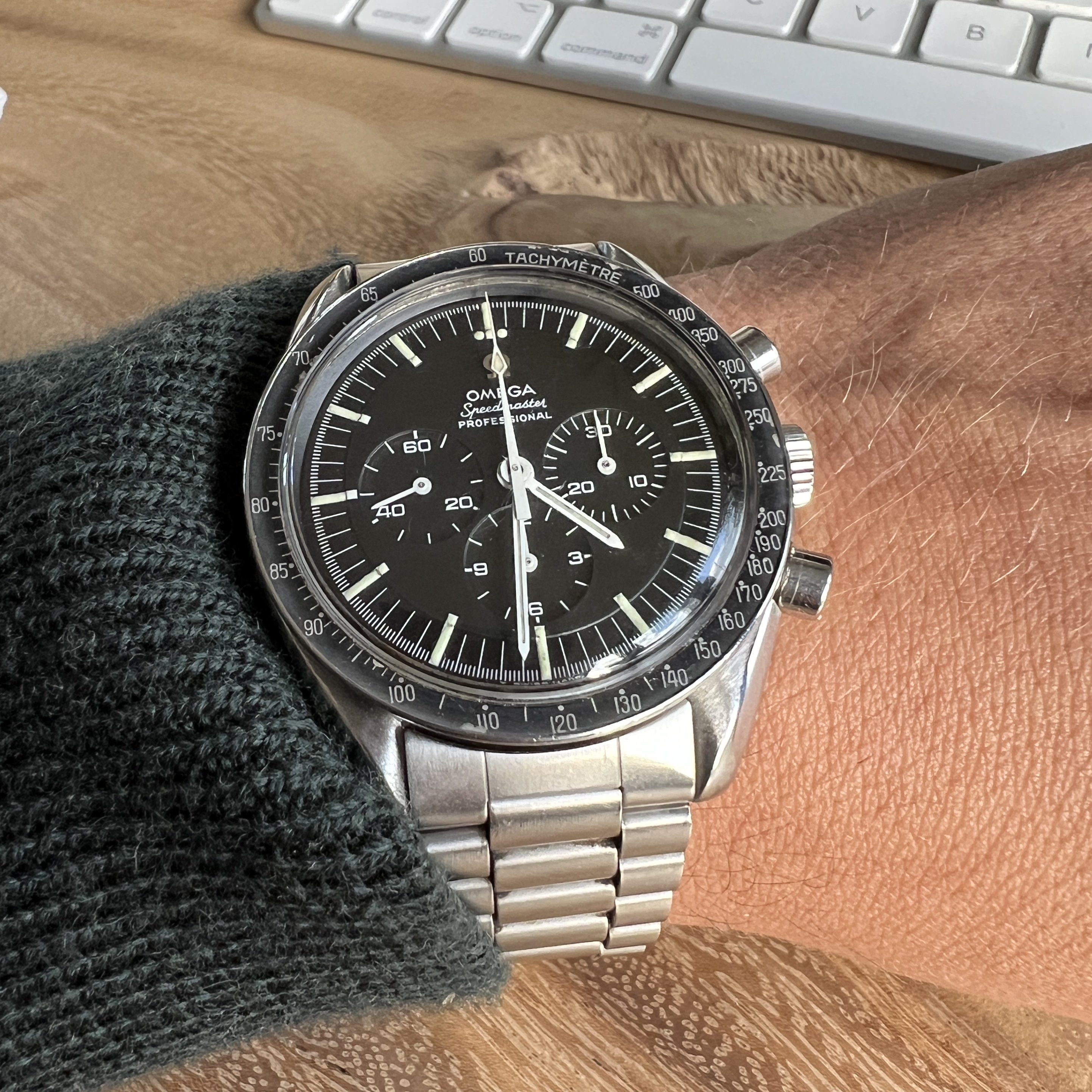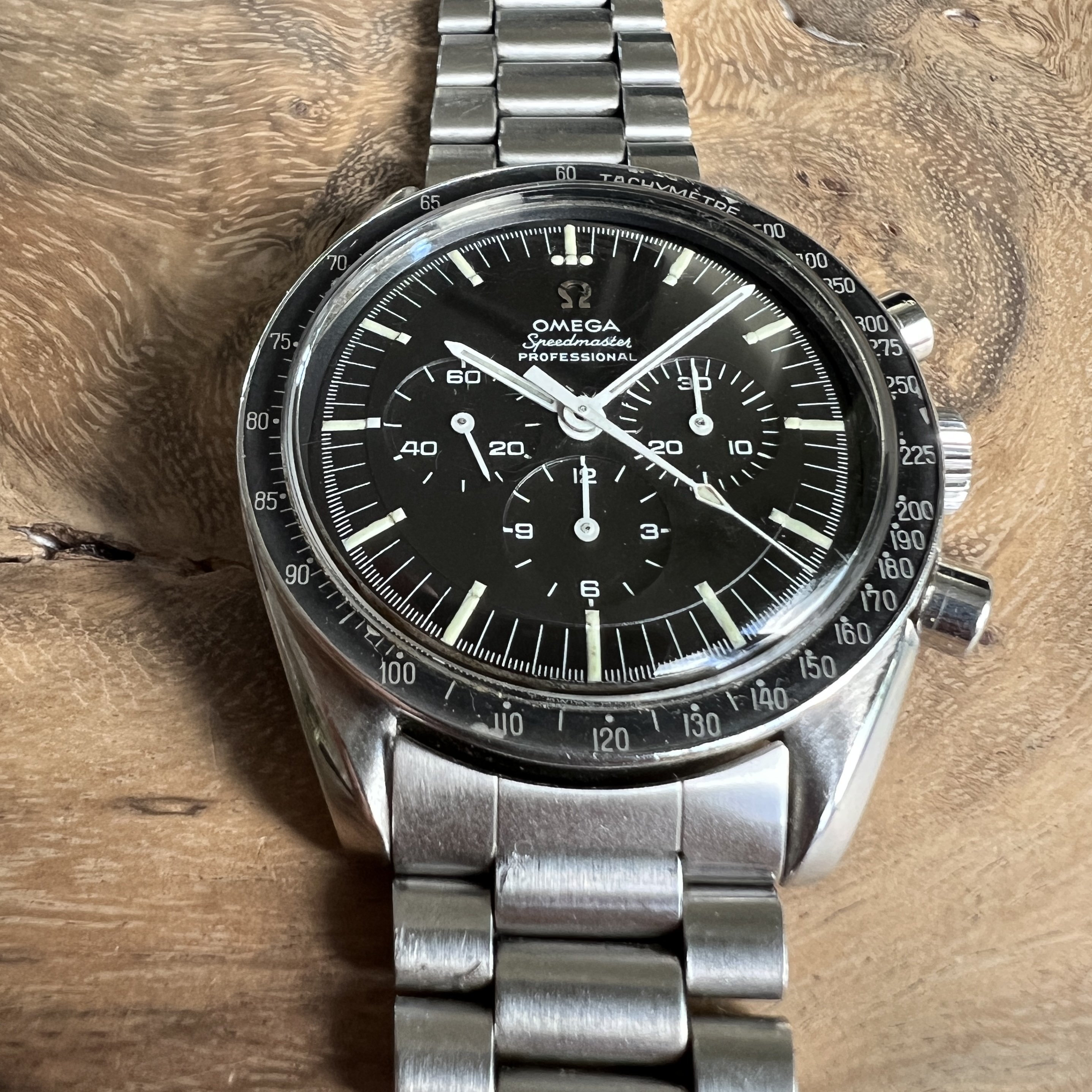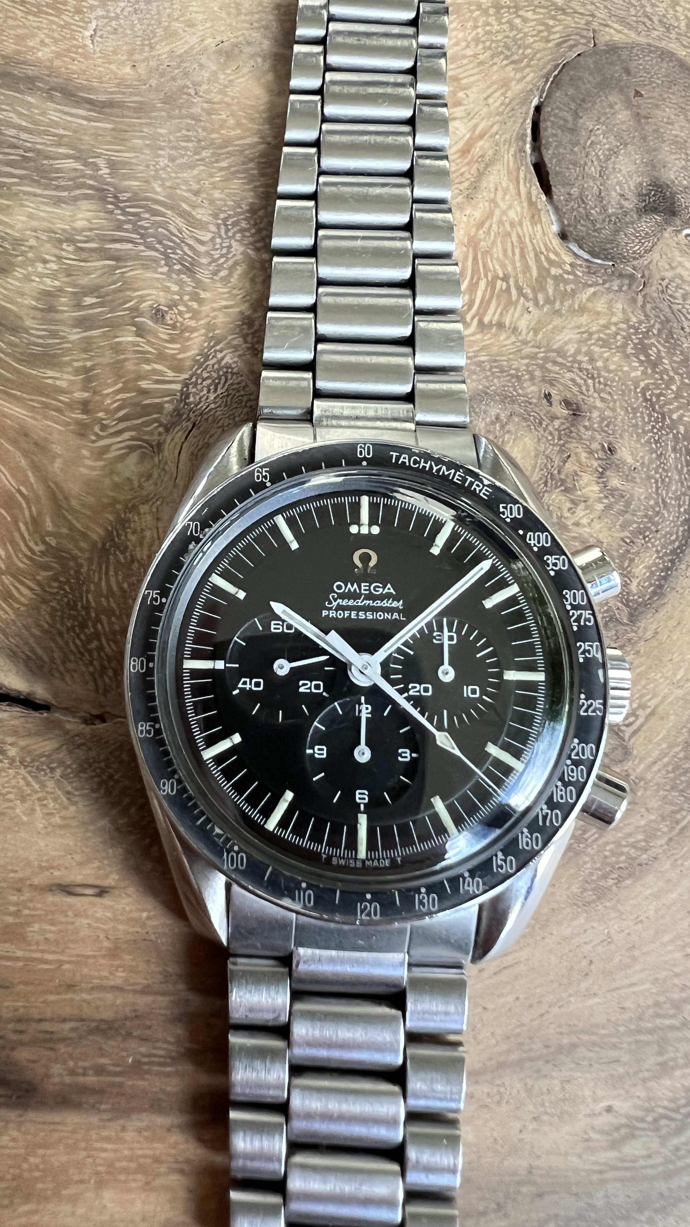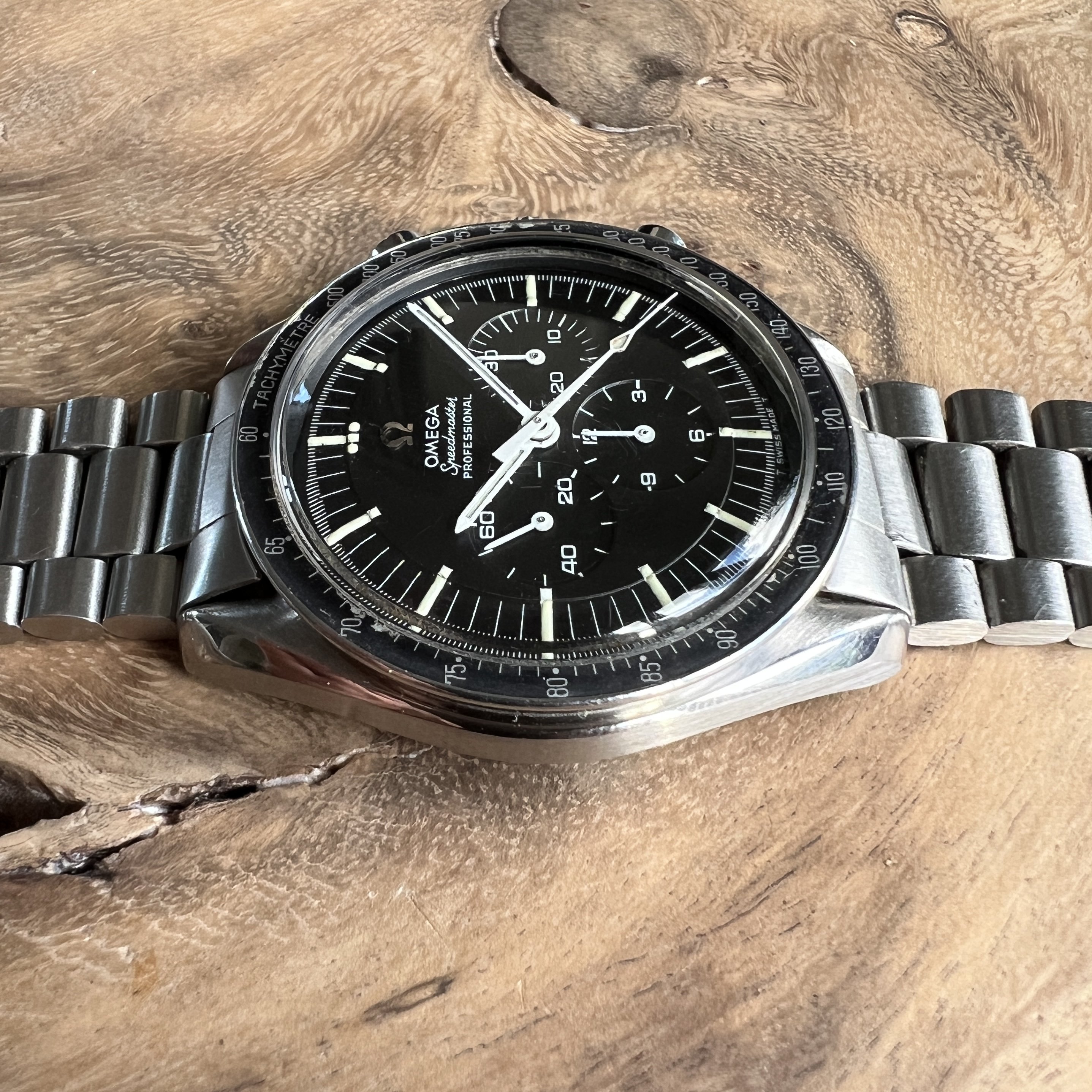 I did manage to contaminate a friend of mine into owning multiple Speedmasters and originally sourced this one for him. He did not bond with this piece as much as with the birth year Speedmaster I got him too, so I've bought it back. After long consideration, I'm now listing it for sale as I have another, cleaner, example of the same reference.