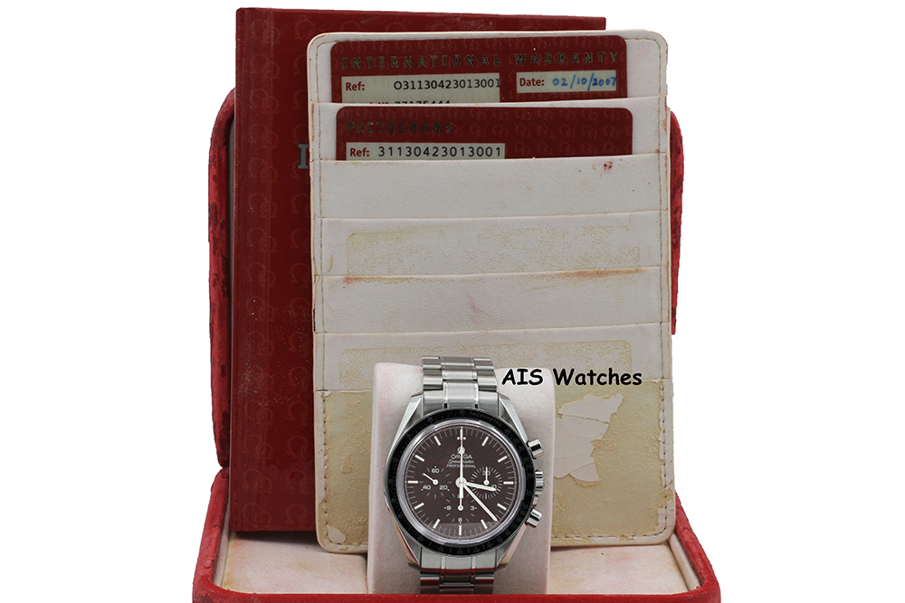 Up for sale is an Omega SpeedMaster 1863 cal. MoonWatch 311.30.42.30.13.001 Sapphire Chocolate Dial Sandwich Crystal on Stainless Steel Bracelet Box & Papers. The timepiece is in excellent condition.