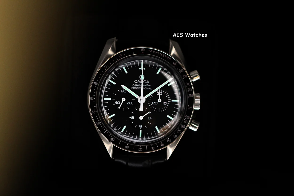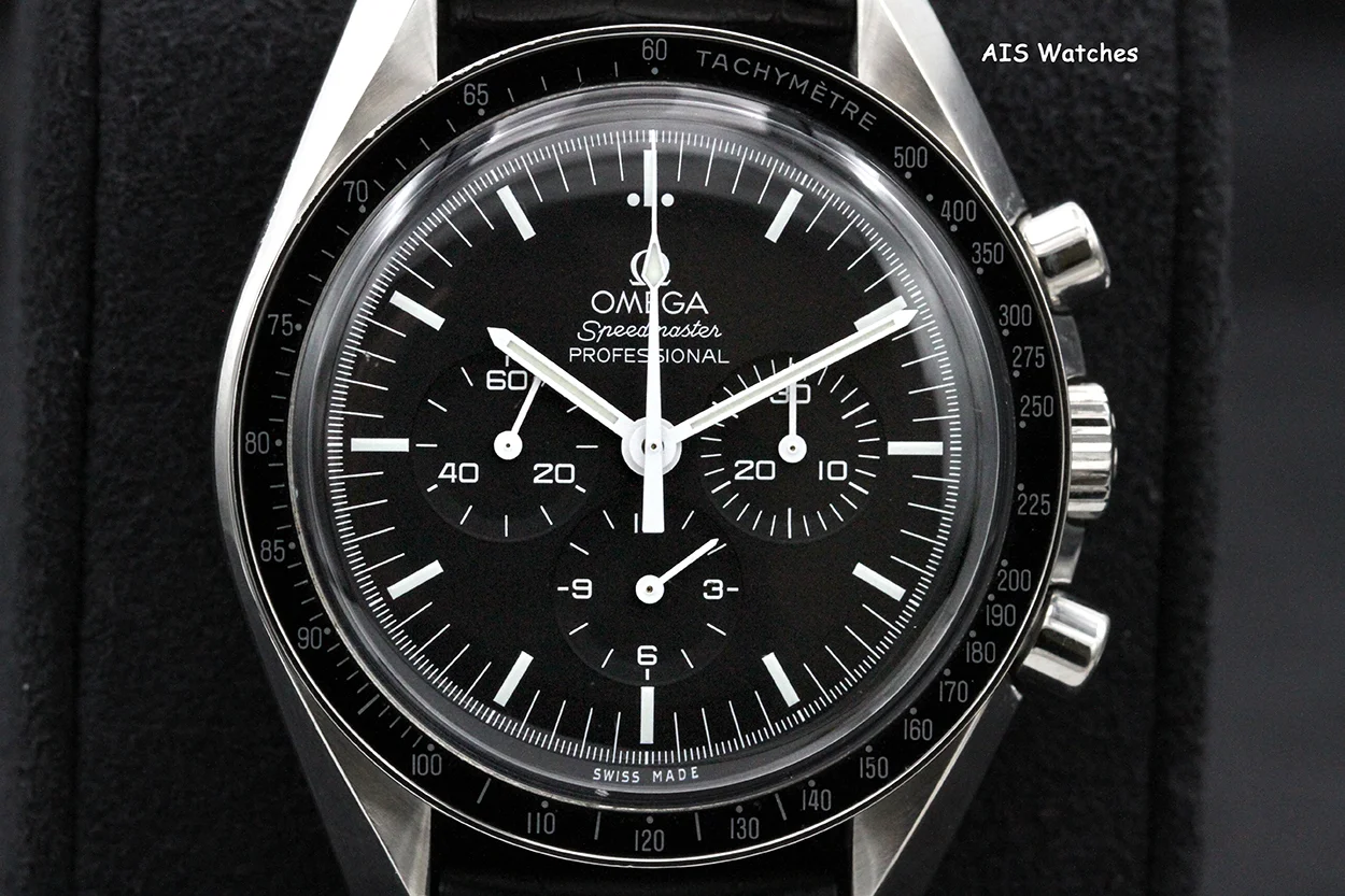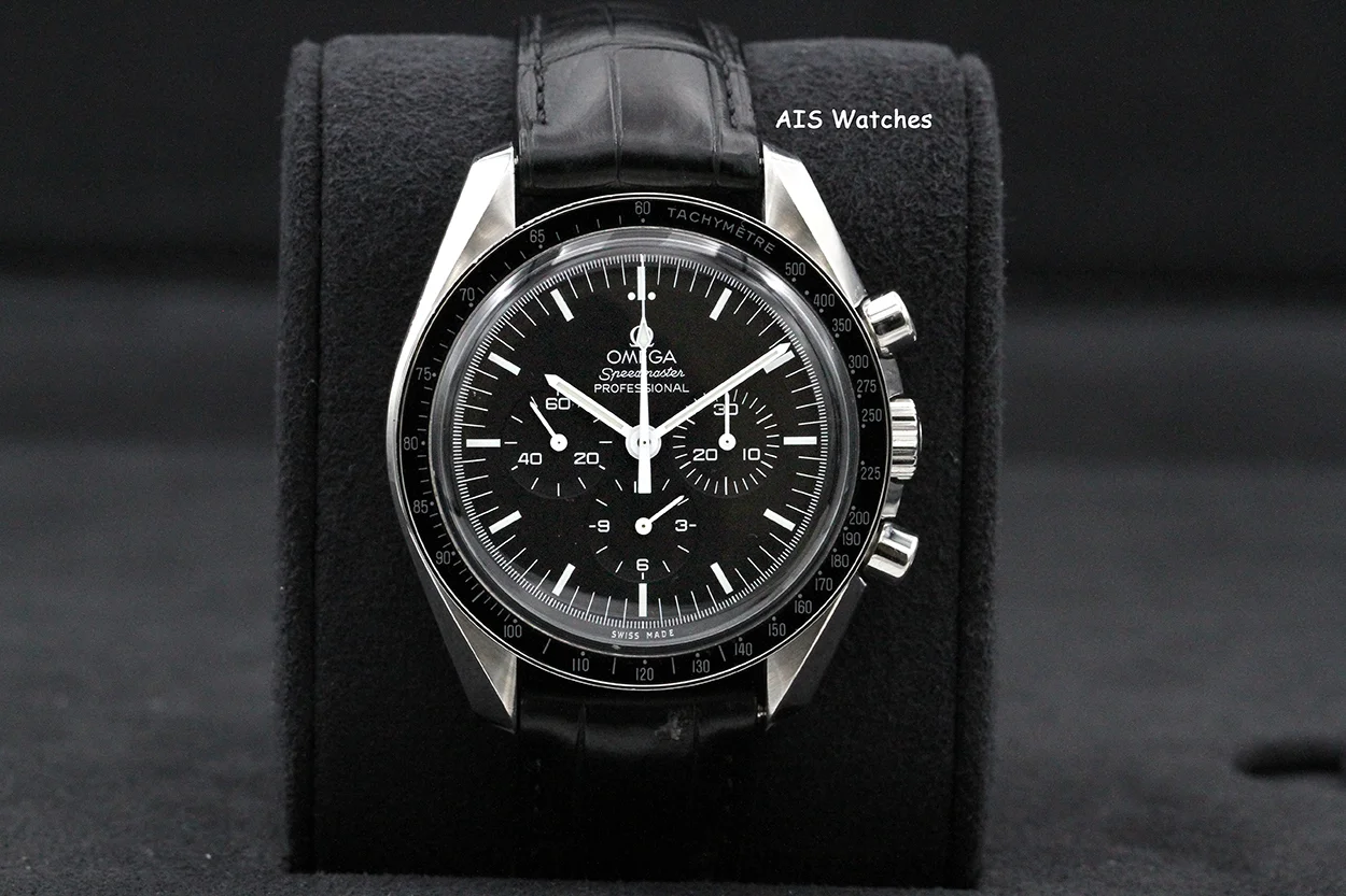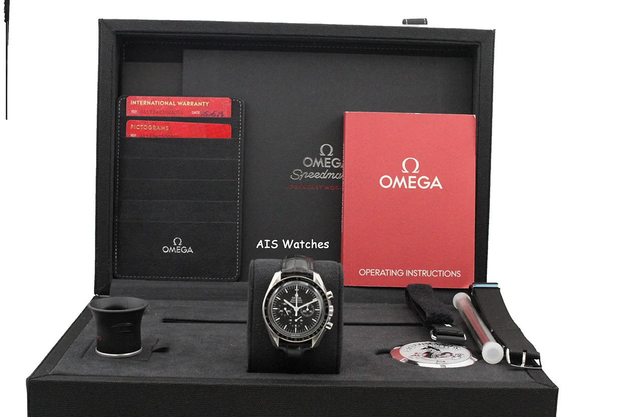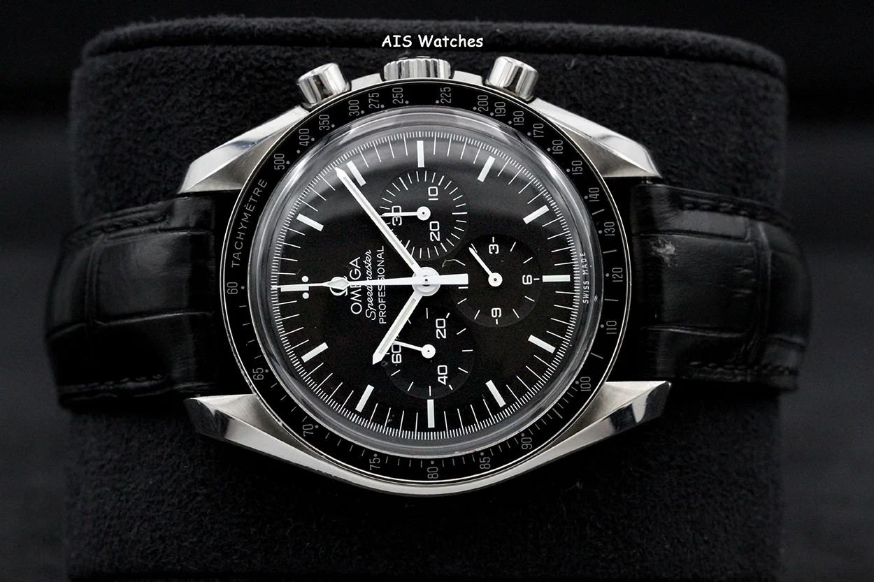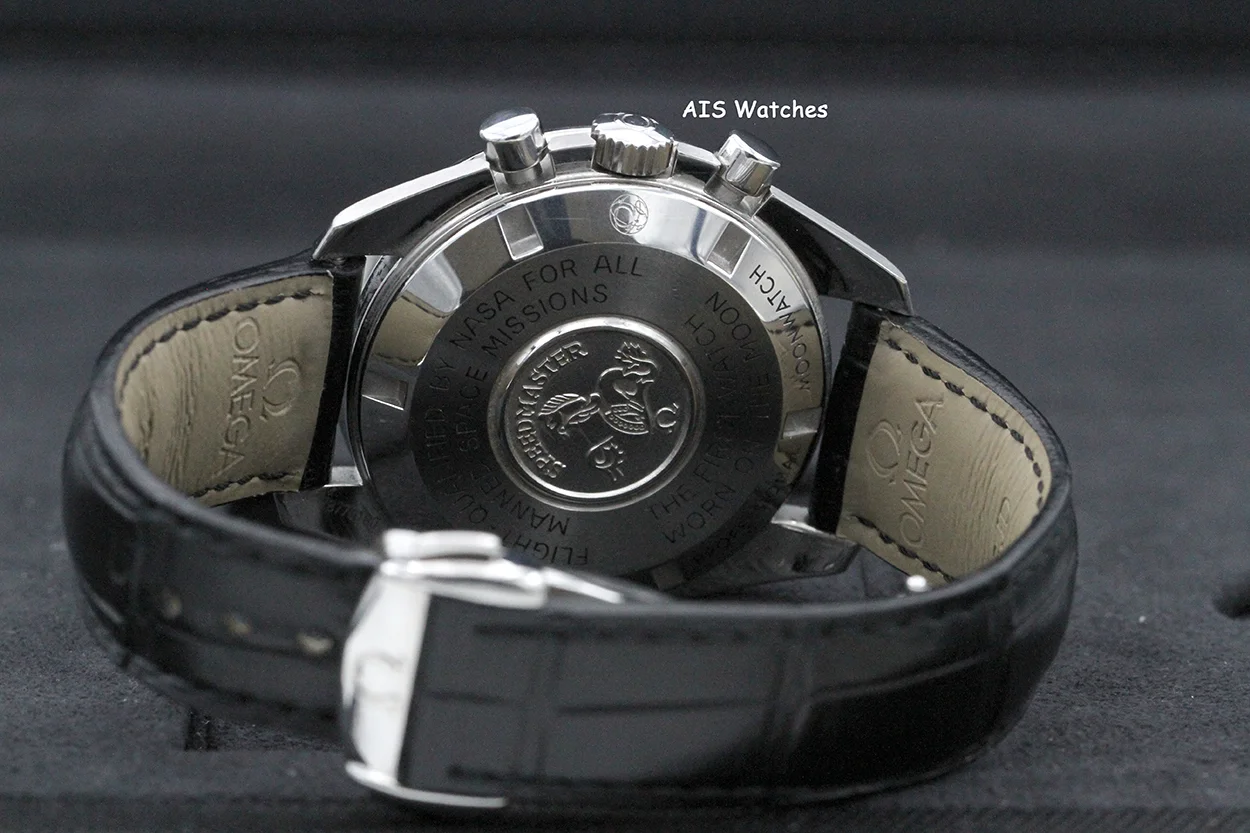 ** Omega Speedmaster Moon Watch Hesalite Crystal / Leather Strap with Deployment Clasp