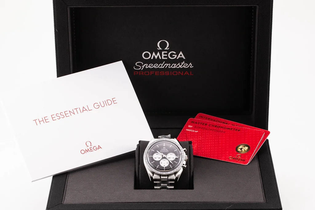 ·Up for sale is a brand new Omega Speedmaster Moonwatch Professional Sapphire Reverse Panda Dial with Adjustable Clasp, reference # 310.30.42.50.01.004 This comes with all boxes, papers, booklet, and Omega Warranty Card dated March 2026.