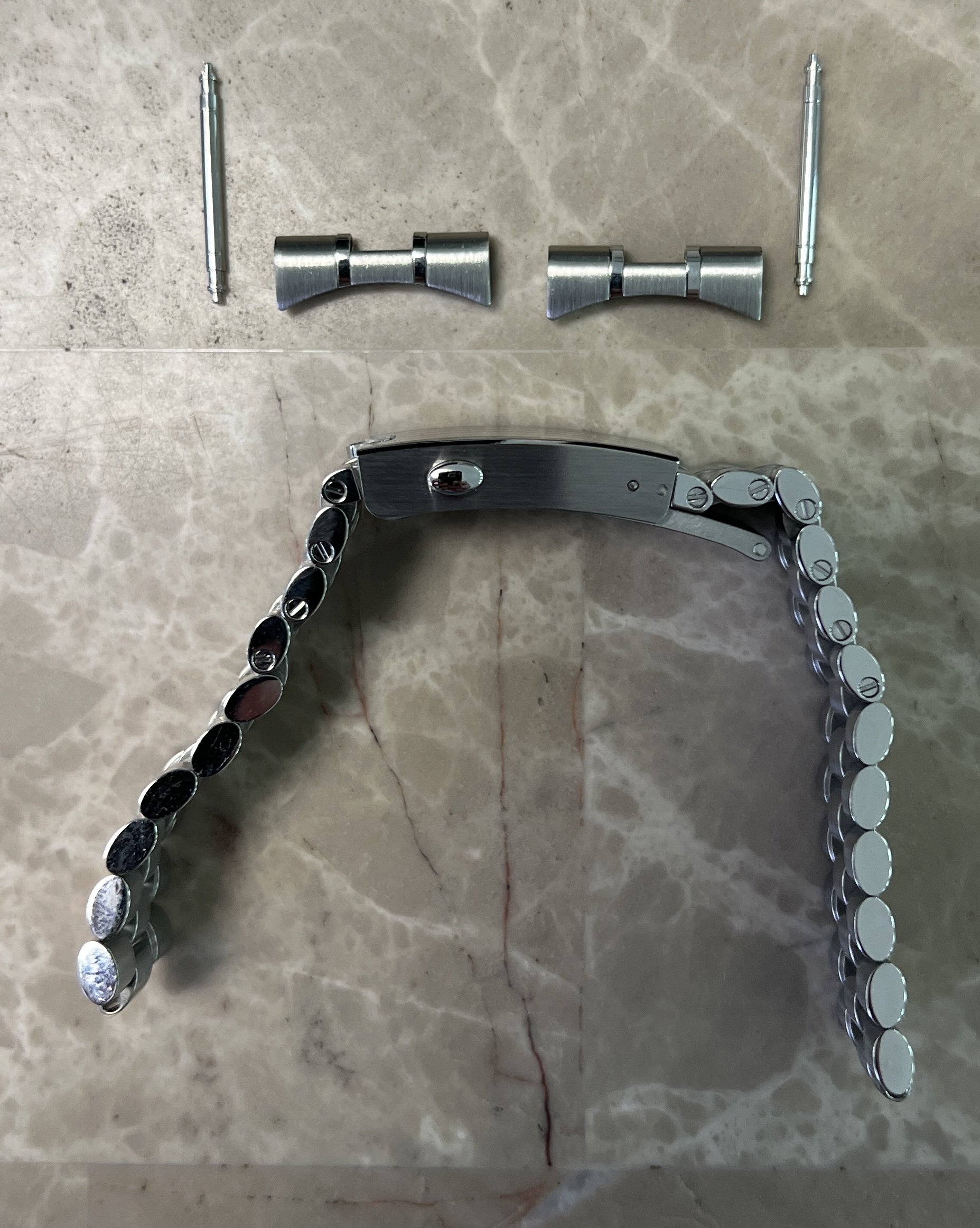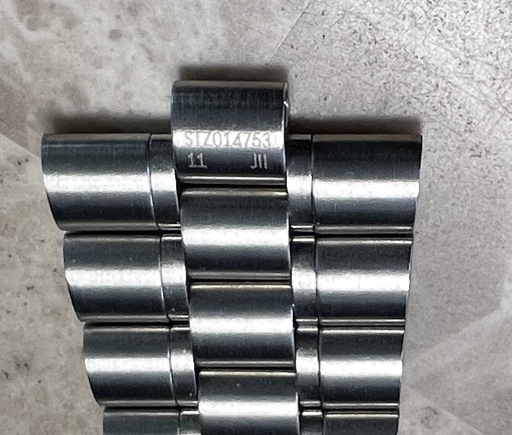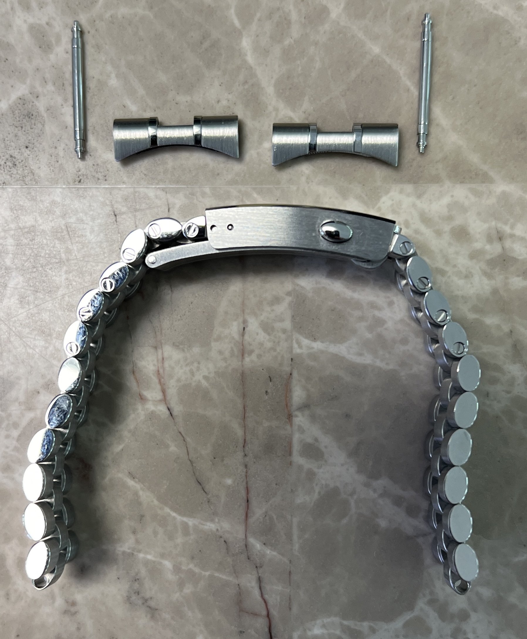 ·For sale ($600 OBRO) have a genuine 20 MM Omega Speedmaster 3861 bracelet. This bracelet comes from factory on the Speedmaster 3861 sapphire sandwich and has the polished inner links but can also be used on the Hesalite model as well. The bracelet reference is STZ014753 and the clasp (pin length adjustment) reference is STZ015496.