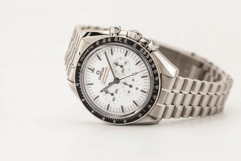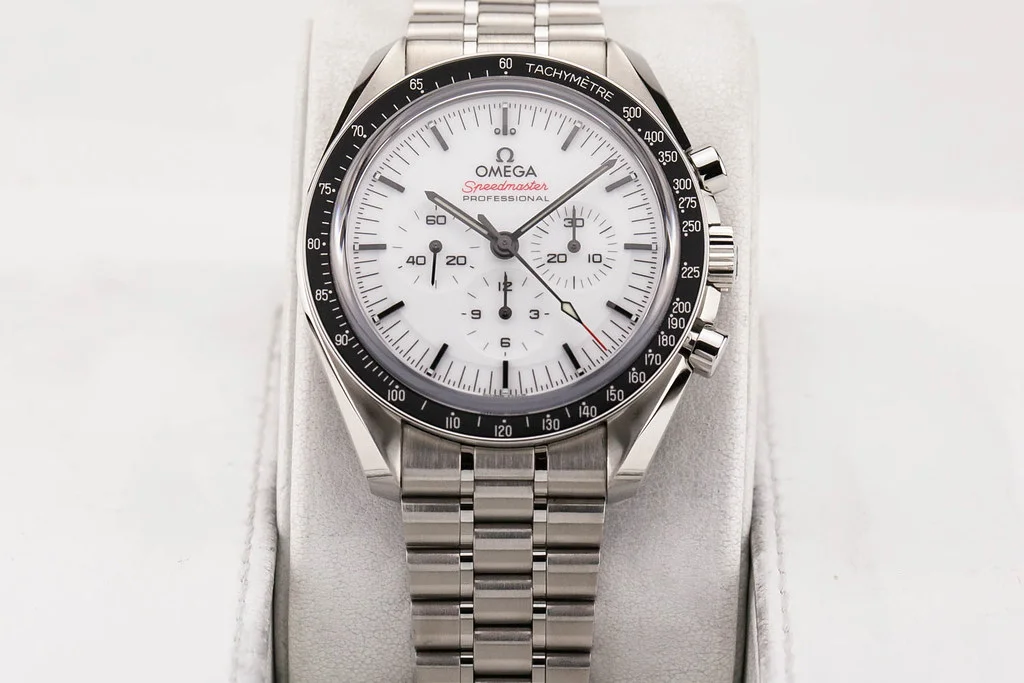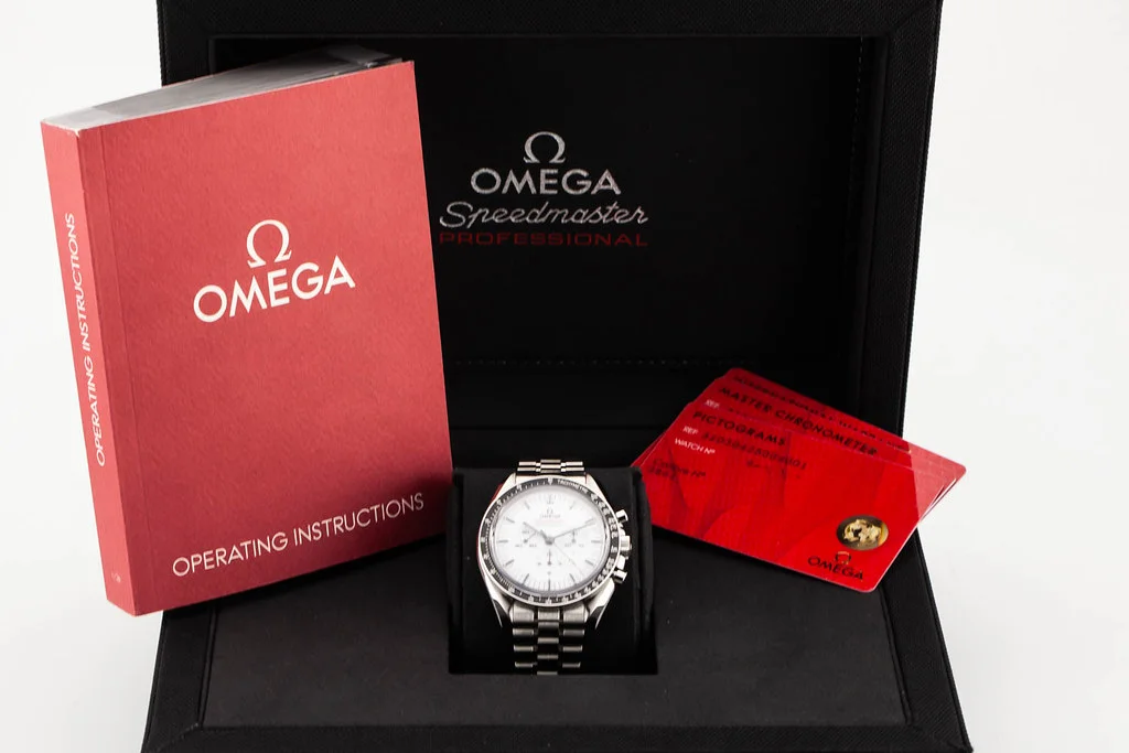 ·Up for sale is an excellent condition Omega Speedmaster Moonwatch Professional White Dial Sapphire on Bracelet, reference # 310.30.42.50.04.001 It comes with all boxes, papers, booklets, and Omega Warranty Card dated August 2024.