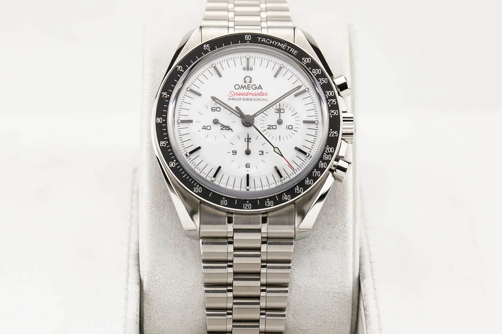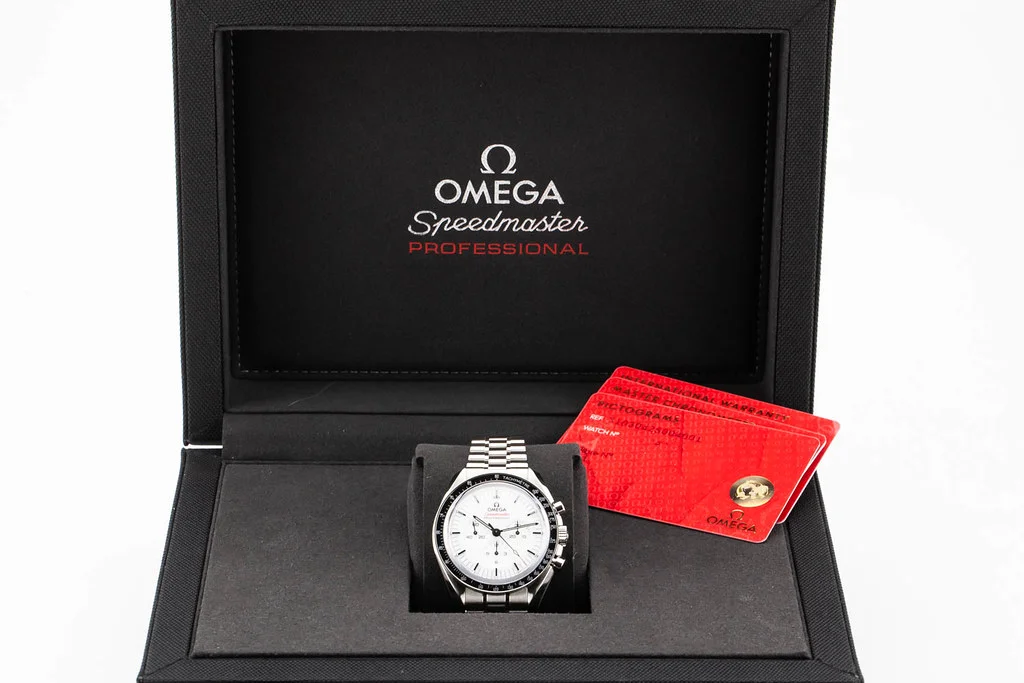 ·Up for sale is an excellent condition Omega Speedmaster Moonwatch Professional White Dial Sapphire on Bracelet, reference # 310.30.42.50.04.001 It comes with everything shown - boxes, papers, and Omega Warranty Card dated October 2024.
