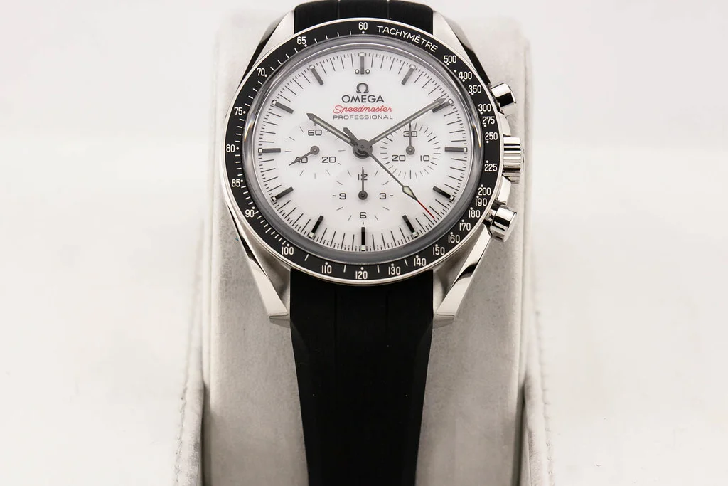 ·Up for sale is a brand new Omega Speedmaster Moonwatch Professional White Dial Sapphire on Rubber Strap, reference # 310.32.42.50.04.001 It comes complete with all boxes, papers, booklets, hang tag and Omega Warranty Card dated June 2025.