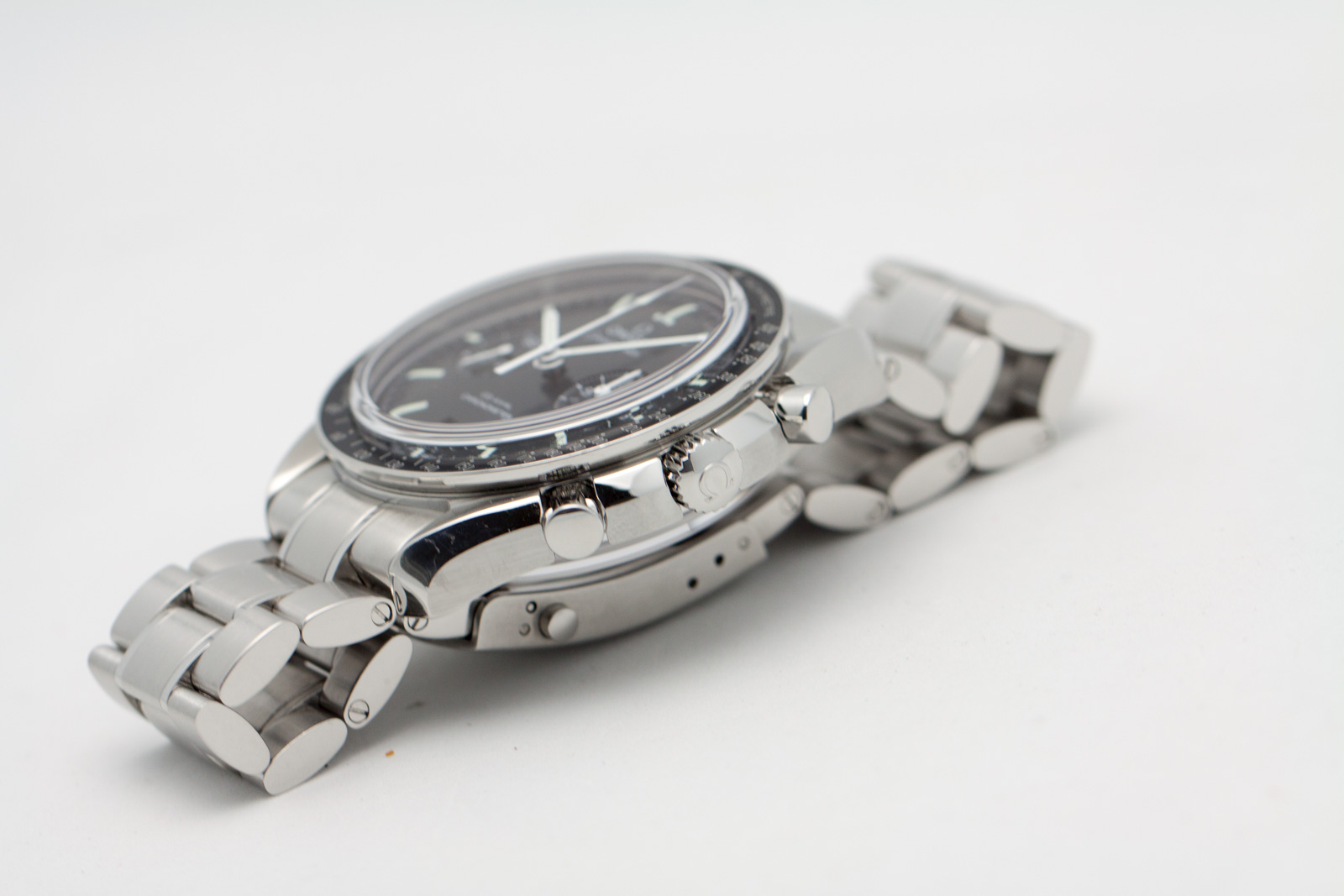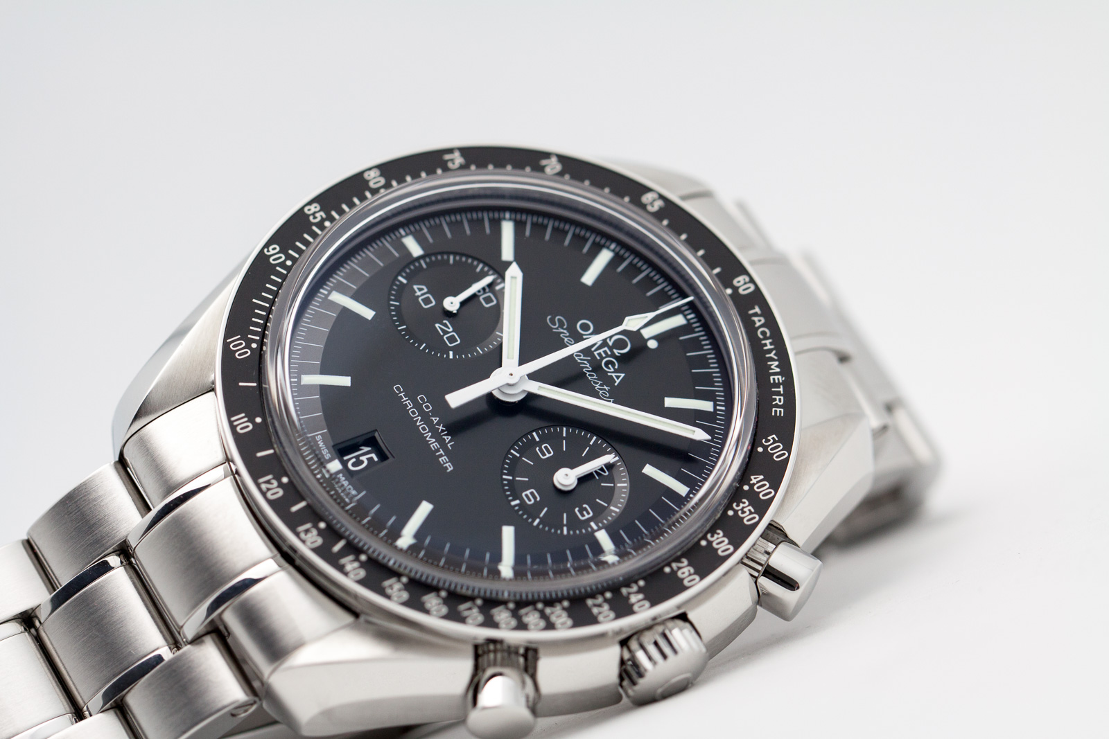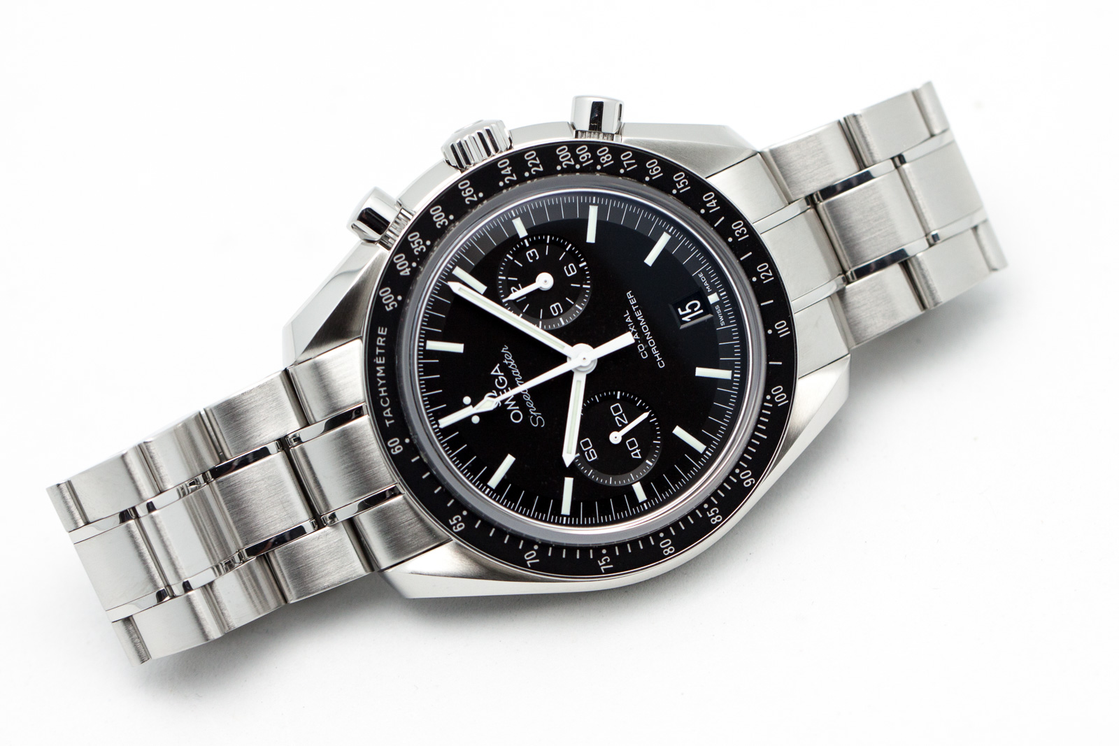 ·Omega Speedmaster Moonwatch Co-Axial Chronograph, 44.25m, 311.30.44.51.01.002. 96% MINT throughout with no dings or nicks, crystal is perfect, runs perfect. Excellent amplitude and running spot on at +/- 0 seconds per day. Powered by Omega 9300 automatic movement with column wheel and co-axial escapement, 60 hour power reserve. Includes everything pictured; boxes, Pictogram Card, COSC Card and International Warranty card (warranty card stamped by US AD and dated Mar 2014). Photos are of actual watch for sale, serial numbers removed from photos, but in tact/matching on actual watch and cards. Always accepting trades and buyer on modern Omegas, Zenith, IWC, Breitling, PAM and Tag. Item as described or refund minus shipping.