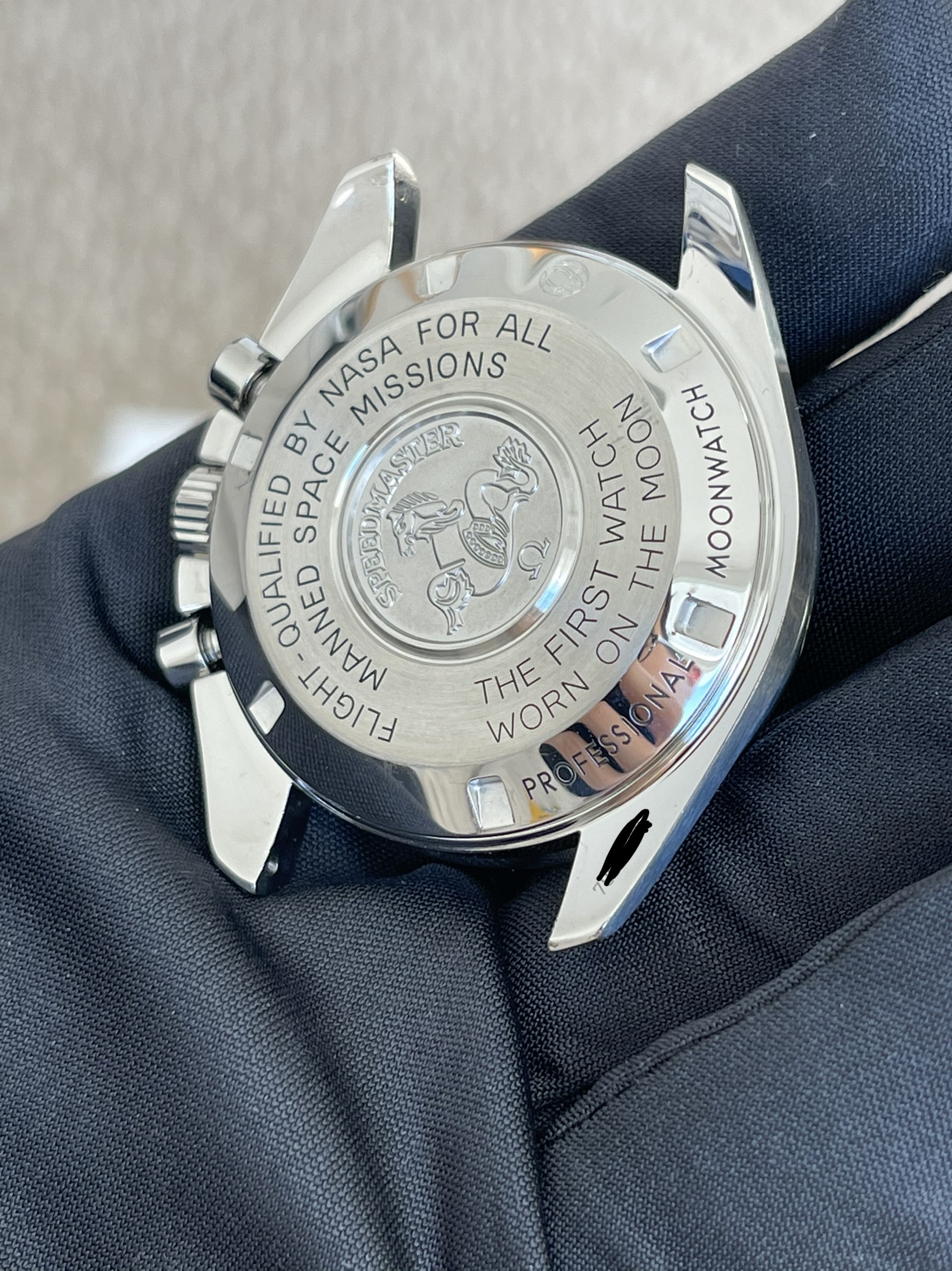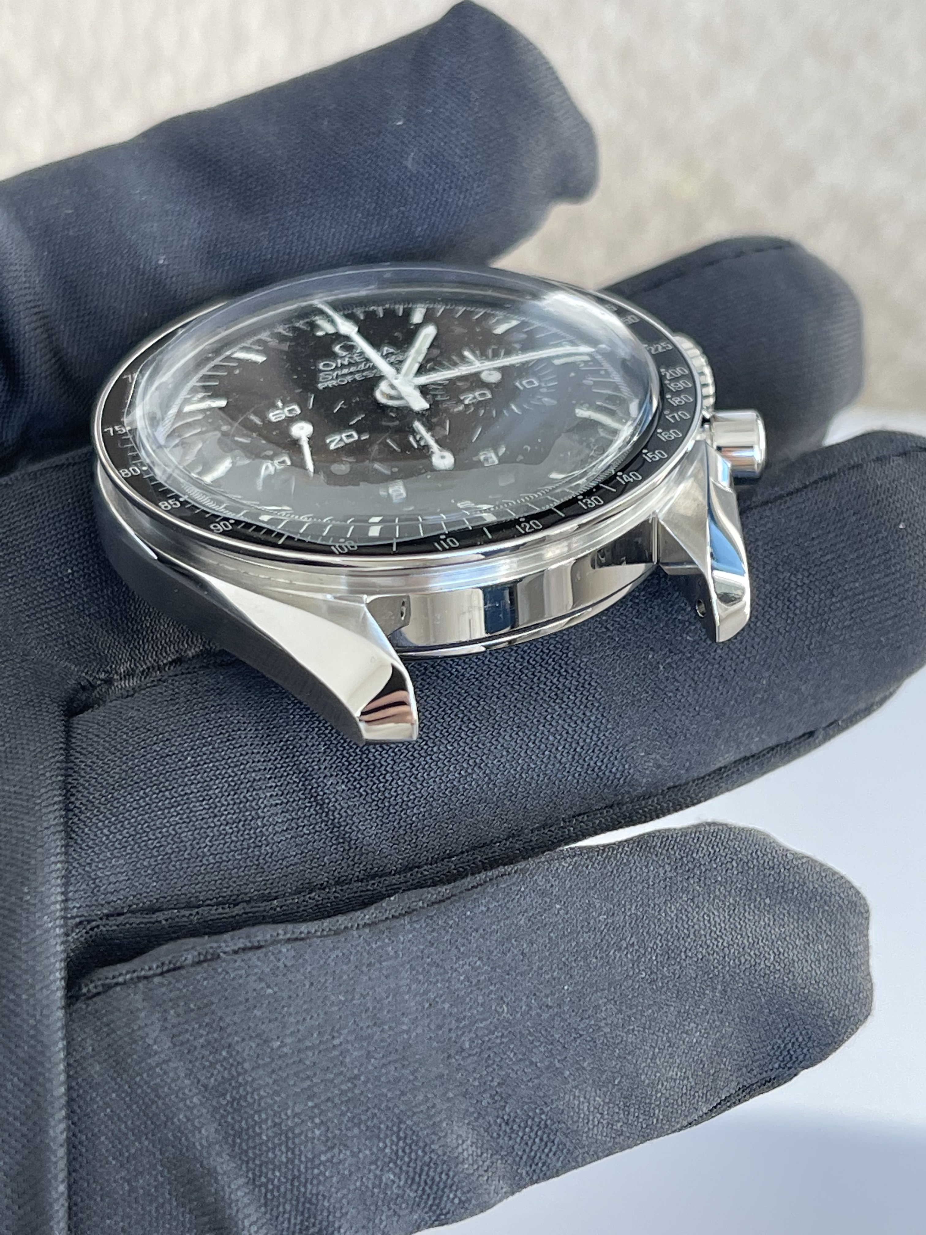 For sale is my lightly used, and recently serviced Moonwatch Professional. I’ve had it since 2018, and was worn in rotation with a few other Speedies. No major dents, dings, or scratches that I can see besides very faint strap-changing marks on the underside of the polished lugs, and even then those aren’t very noticeable. Full length bracelet included, and I can install it back onto the case if requested. I didn’t send in the bracelet for service as I didn’t see anything wrong with it besides some light marks on the clasp and one link.