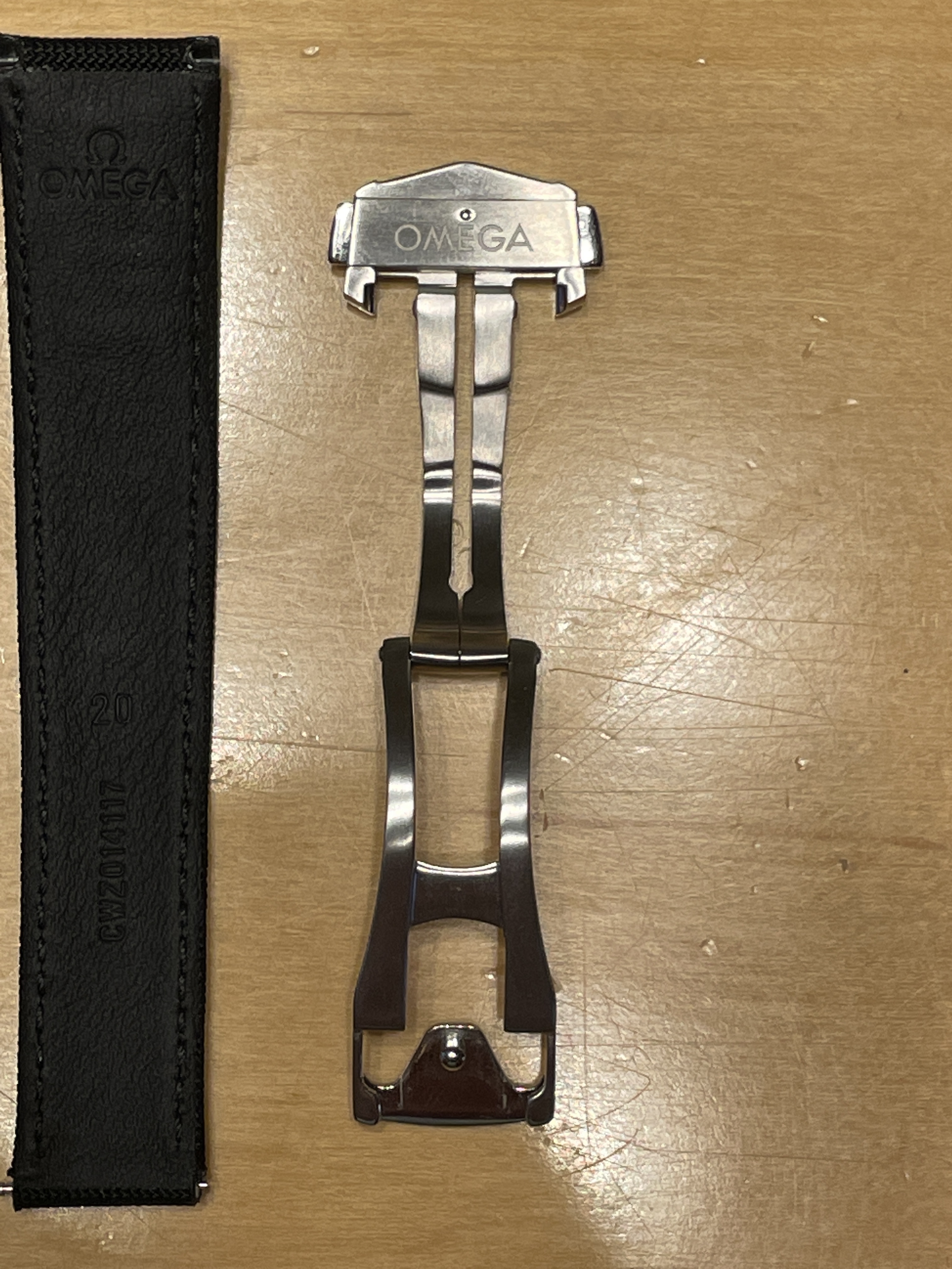 ·Never worn Omega Speedmaster Nylon Strap and Deployant Buckle. This is sold out everywhere that I found. I had to wait 3 months for it to get to my AD. Part numbers 032CWZ014117 and STZ007387. Official OEM parts purchased from and AD with receipt posted. 20mm at the lugs 15mm at the deployant. Pins are not included. I spent $538 on it so save a few bucks and get your now instead of waiting. $500 shipped. USA only, PayPal payment, No returns. Thank you.