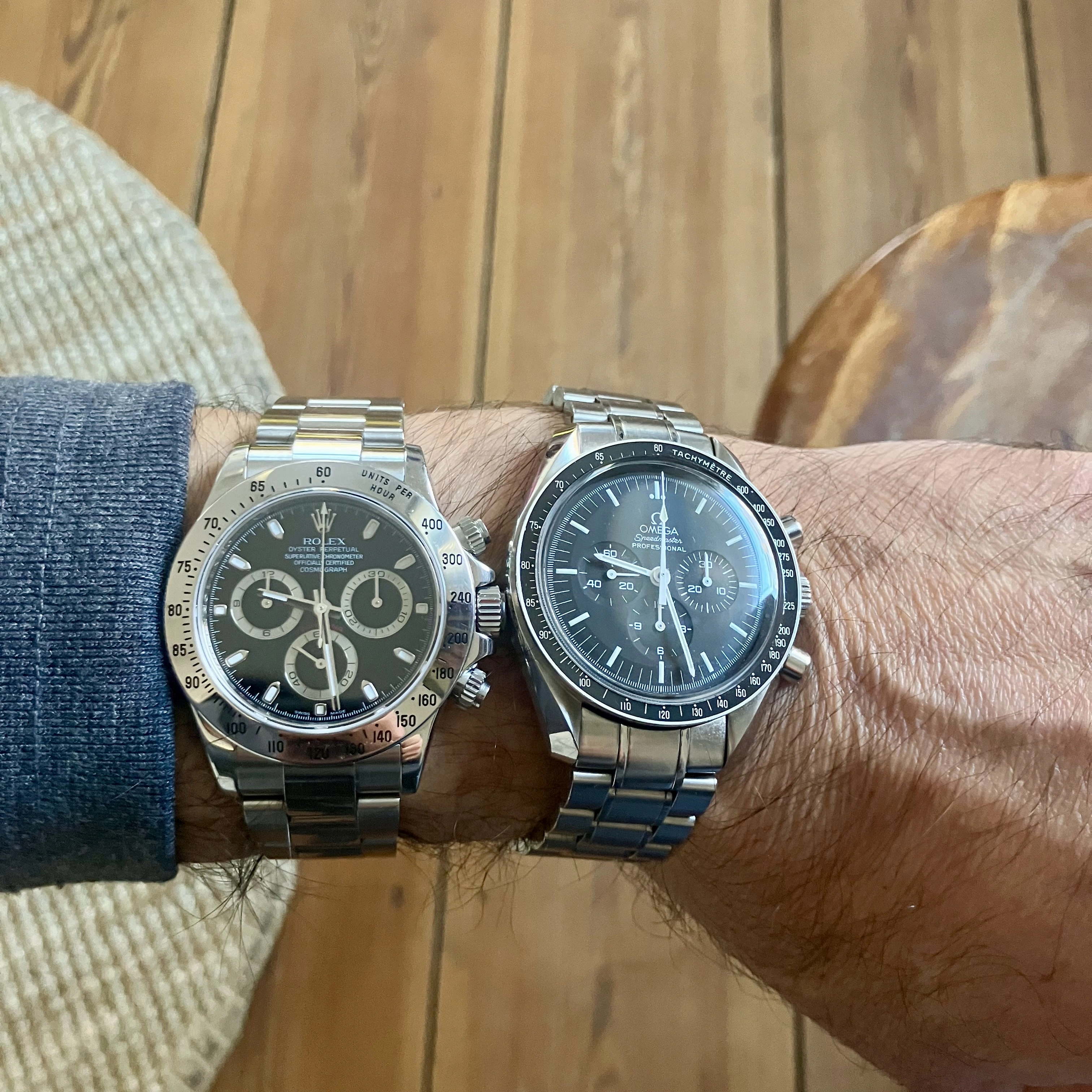 So I know this as been done in some way or another more than 1000 times, but I want to look at it on each watches own merit. History and resale value is a large part of why people buy one of these two watches, however I want to get peoples options ( I know this is a bias omega forum) on these two watches based on quality and visual beauty ( I know beauty is in the eye of the beholder). For that reason, I want to use sapphire sandwich version because it uses modern materials that I feel would match better to a Daytona. Nothing wrong with the hesalite, but it is more geared to history, rather than materials for modern watch making. So the question is, does the Speedmaster carry quality, prestige, luxury on par or near on par with the Daytona or are they on two different level?