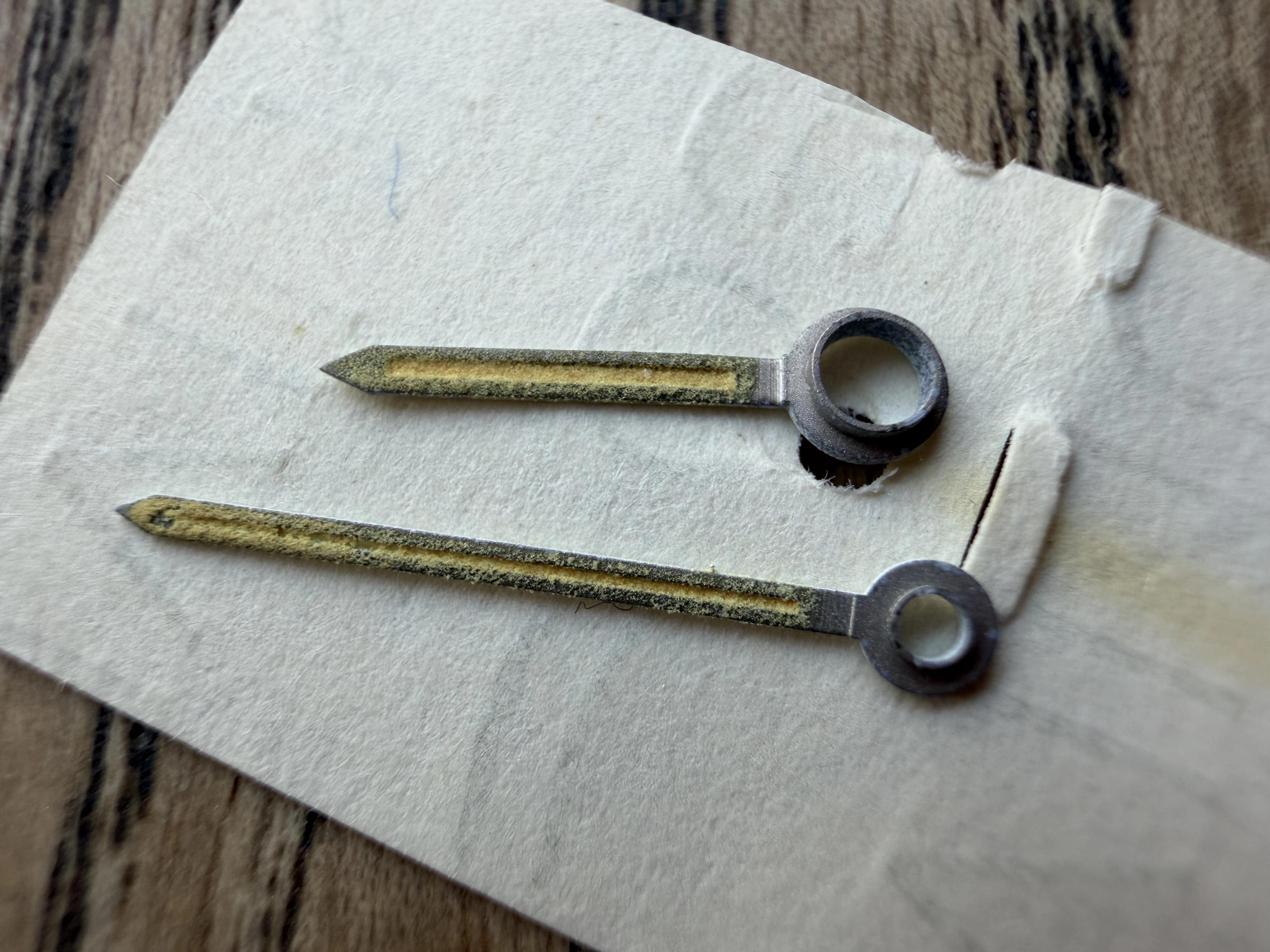 1. Omega Speedmaster Professional vintage tritium hour and minute hand, nicely aged which I got off E-Bay. I wanted them for a project which never happened. I'm looking for Sold: 400 Euro including tracked shipping to EU/USA.