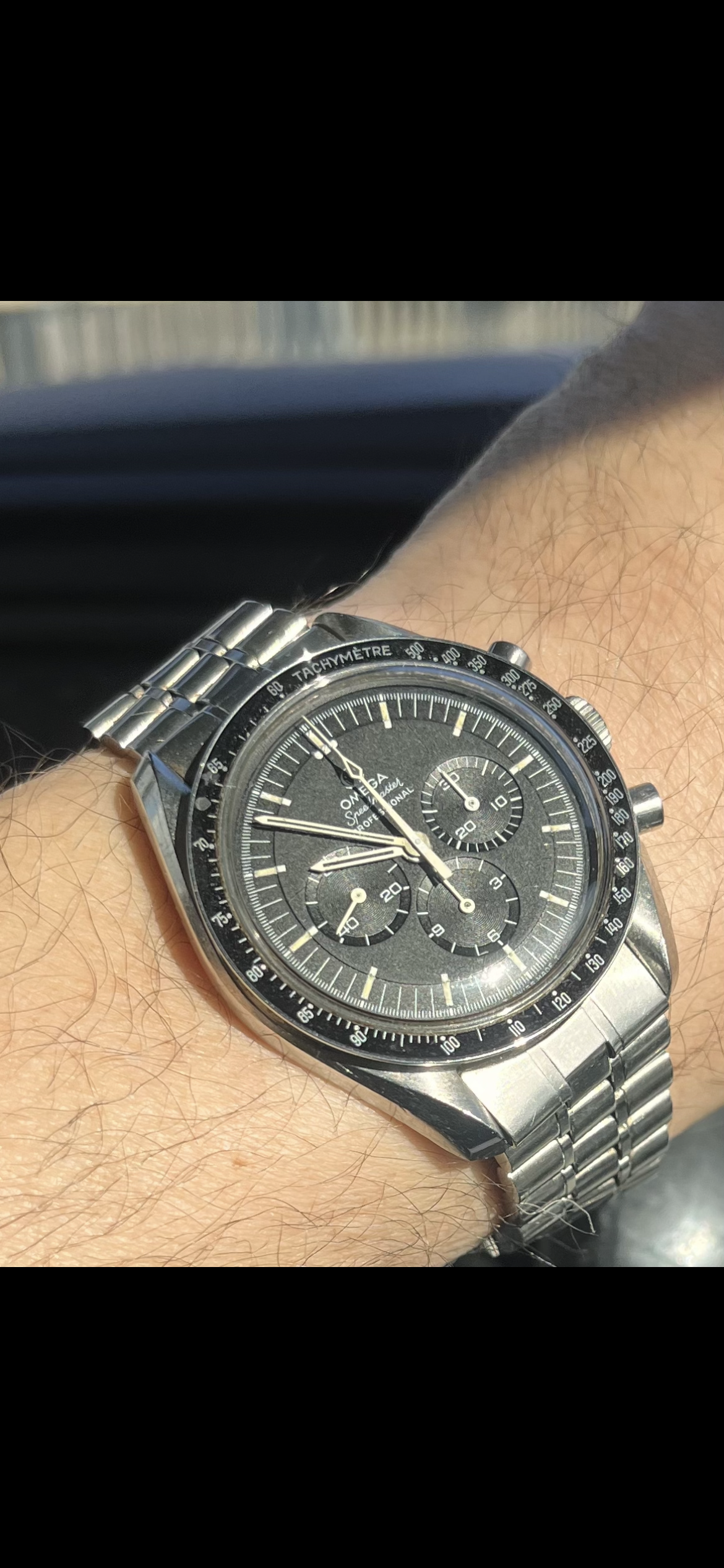 Posts 5,270 Likes 78,640 Barking mad ·May 4, 2024·Prolific Speedmaster Hoarder Had this for over ten years now. Slight hints of brown in the beginning but a little more obvious now. A later serial than normally expected and straight writing, the Creeper 😀