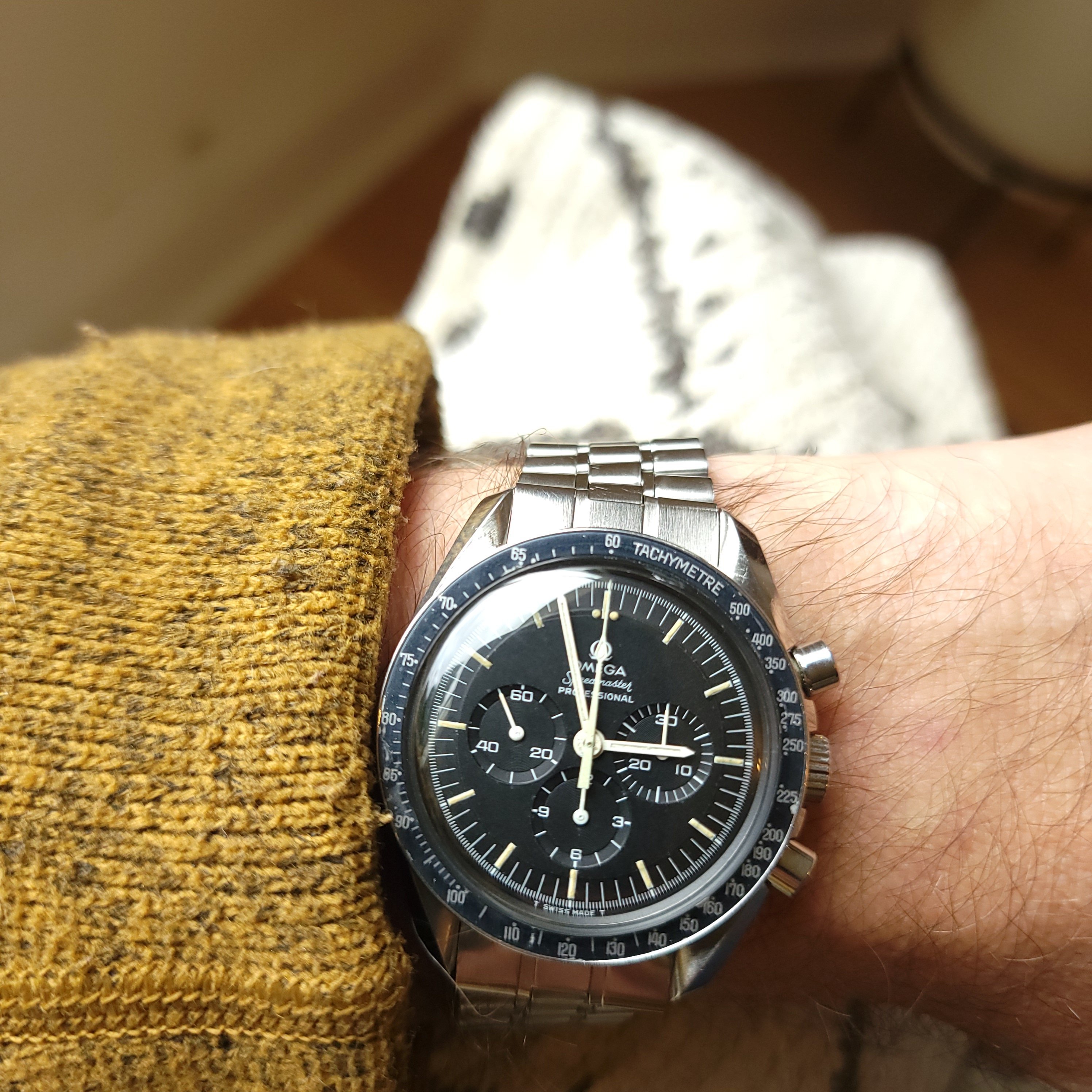 This is my daily and the most beater of my few speedmasters. It makes me happy wearing it. I love the story behind it, that it was an expression of exuberance and the world come together in celebration. It has scratches and wear, so I don't worry about a few more.