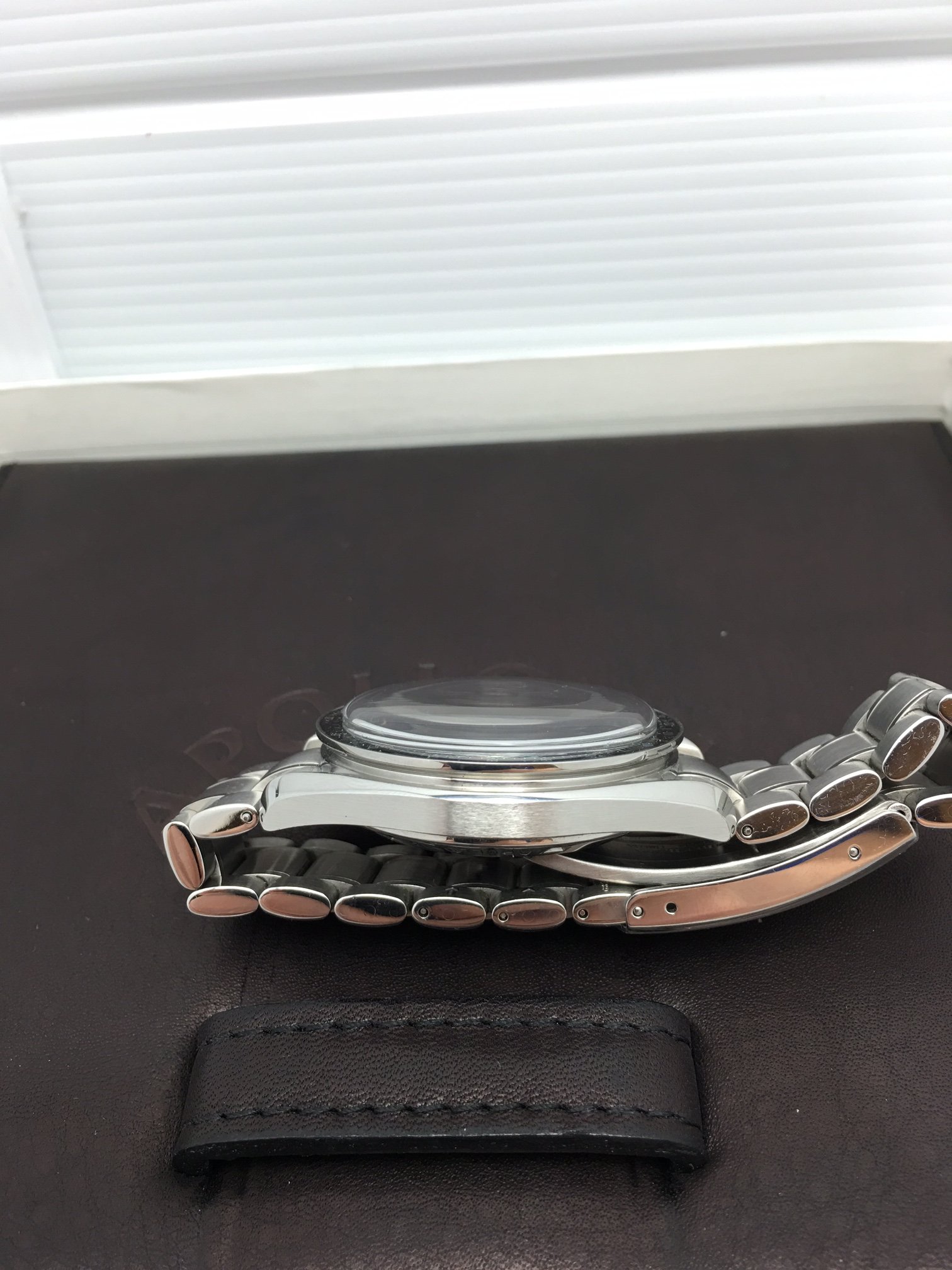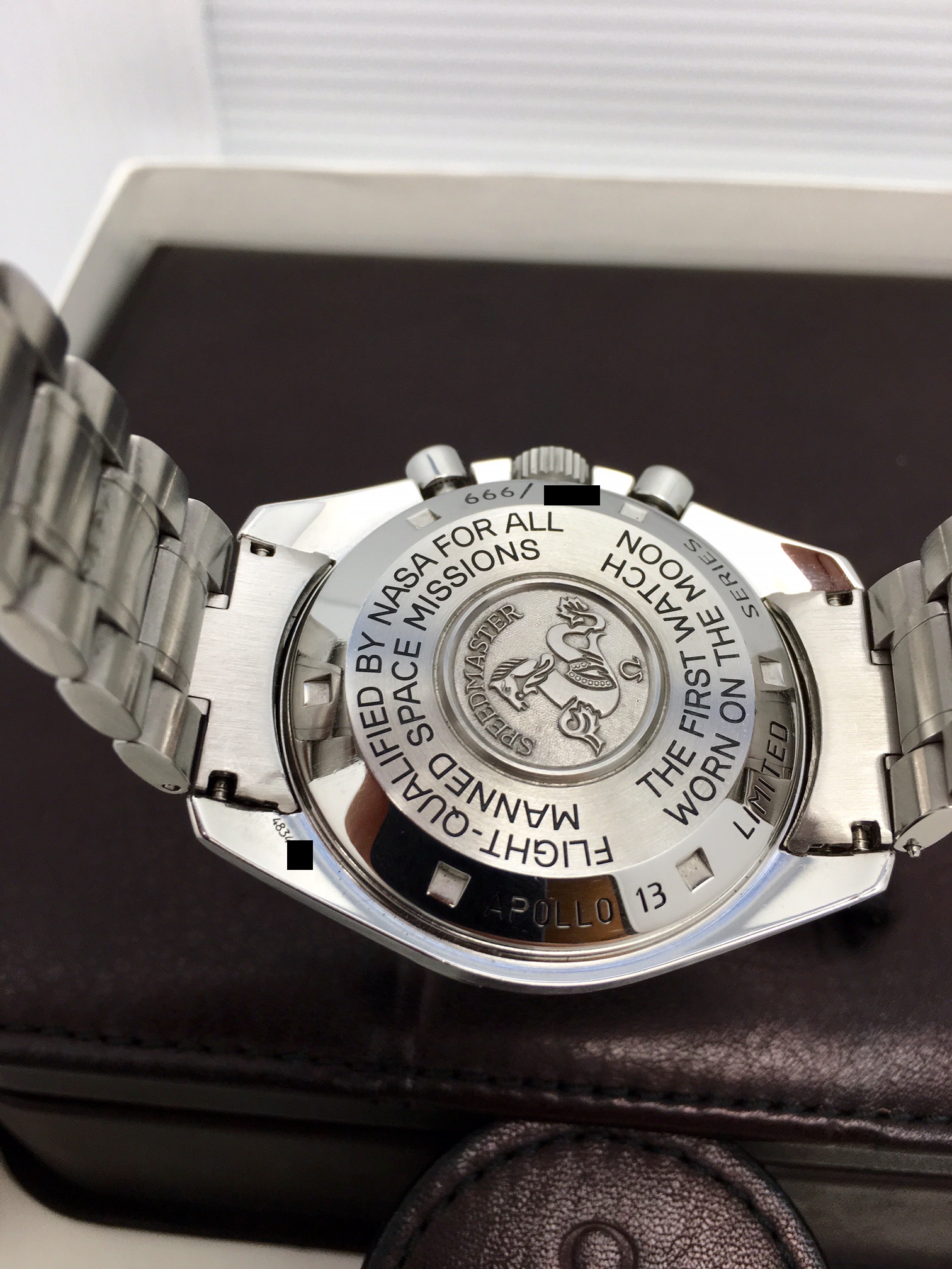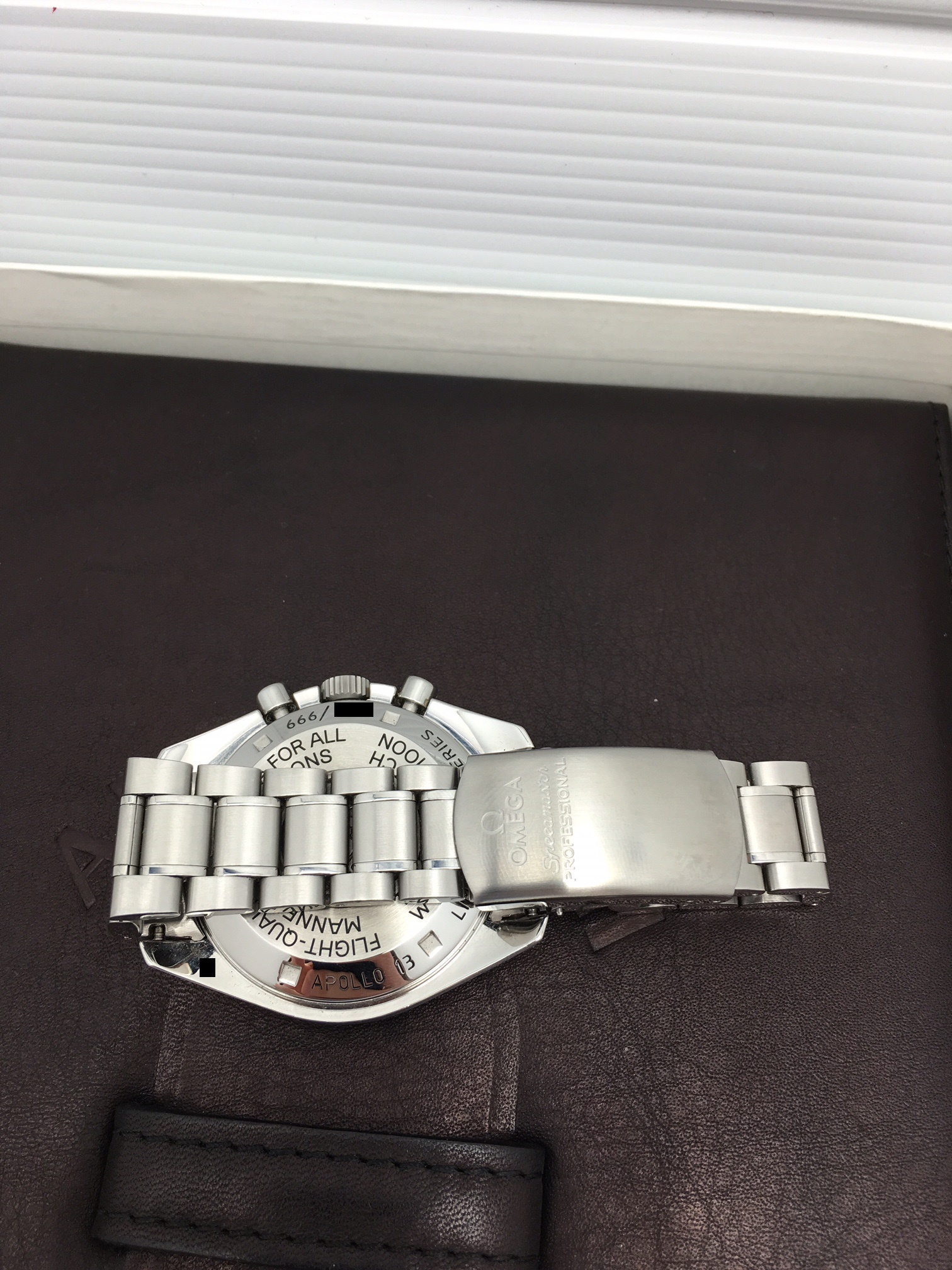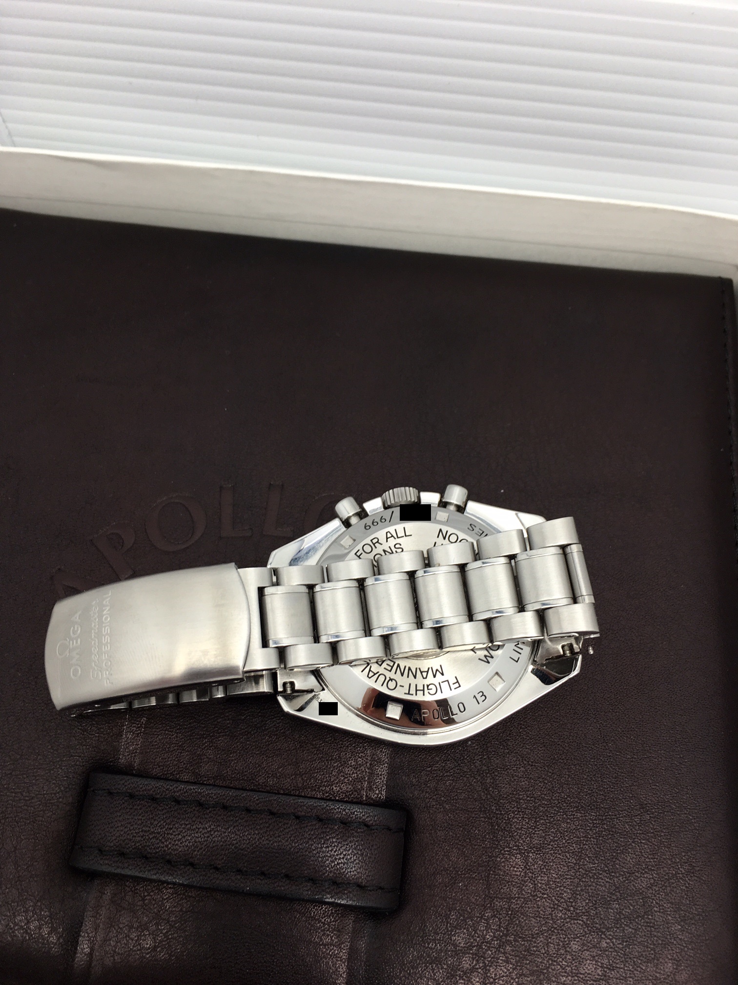 Accessories: Both Omega boxes, manual, card holder, international warranty card, Certificate of Authenticity, patch, serial tag