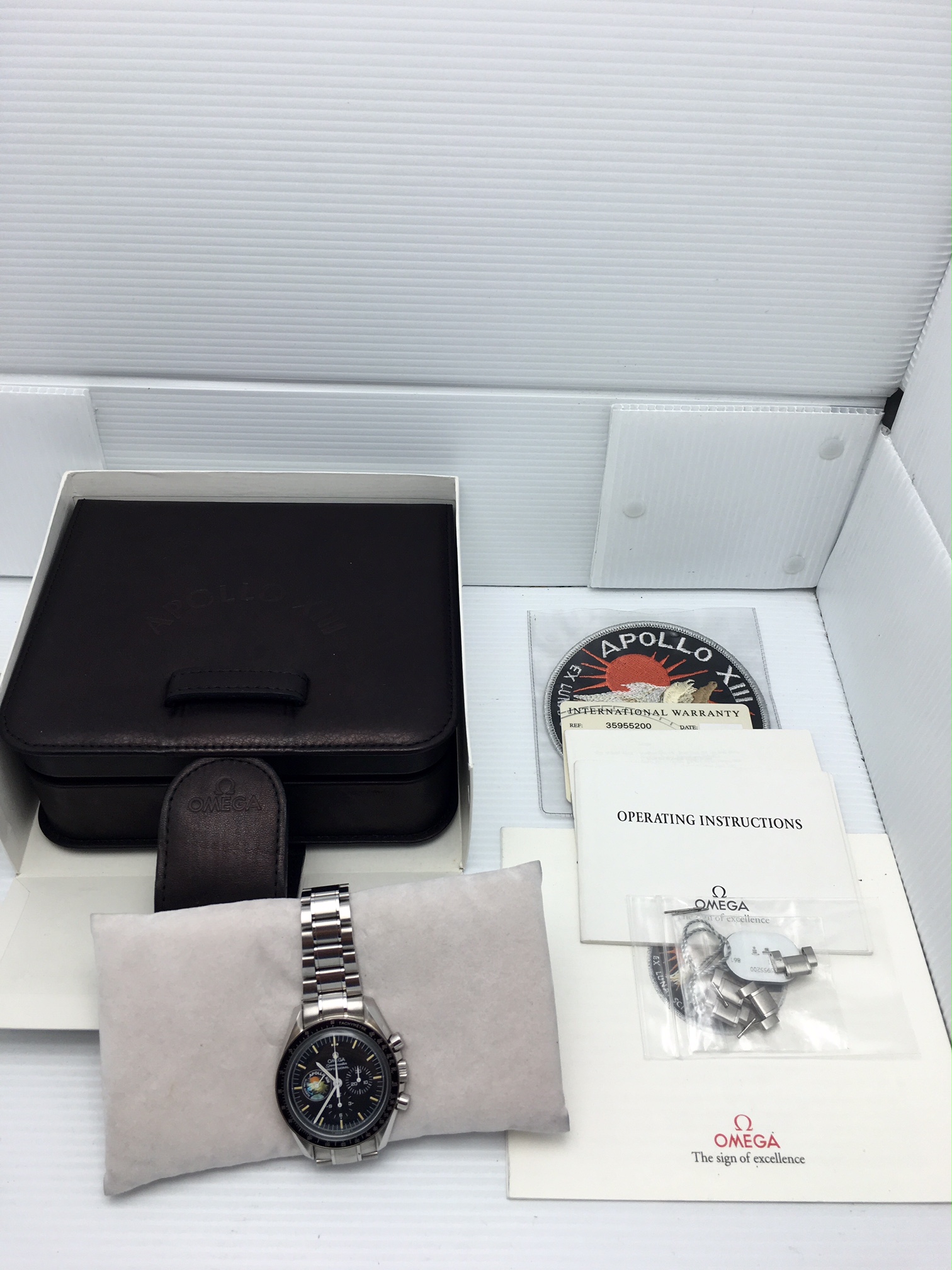 I have an Omega Speedmaster Pro 3595.52 Apollo 13 Patch model limited series for sale. This is highly sought after. A celebration of an amazing contribution Omega made to the Apollo project and helping bring home some of our astronauts on the Apollo 13 mission. Please take a look at photos. This one looks unpolished and minty. Full Complete Set.
