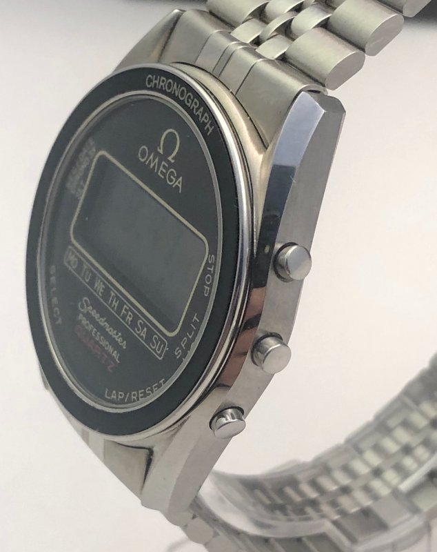 Last night I suddenly got a crave for this timepiece. Months ago I heard about its existence and I snubbed it mercilessly with a "pff, if I want a Quartz LCD I'll get a Casio for 30€". Yesterday, however, I started to get seriously interested in this Speedmaster, a little bit profane, precursor of the X33 and with a minimal and retro style that fascinates me a lot.
