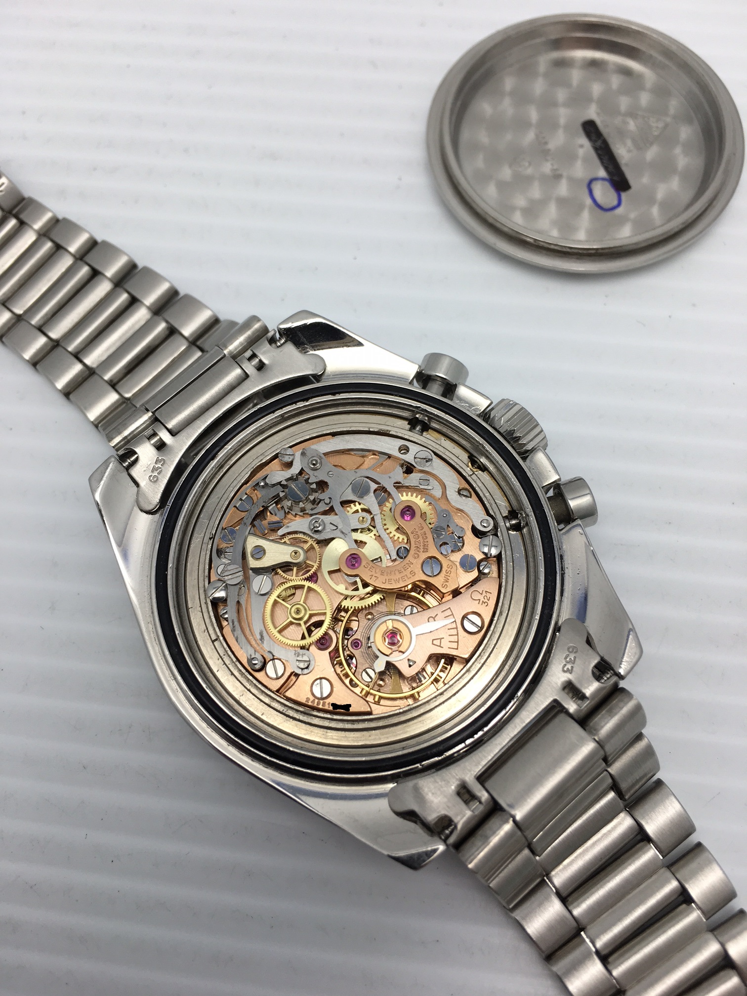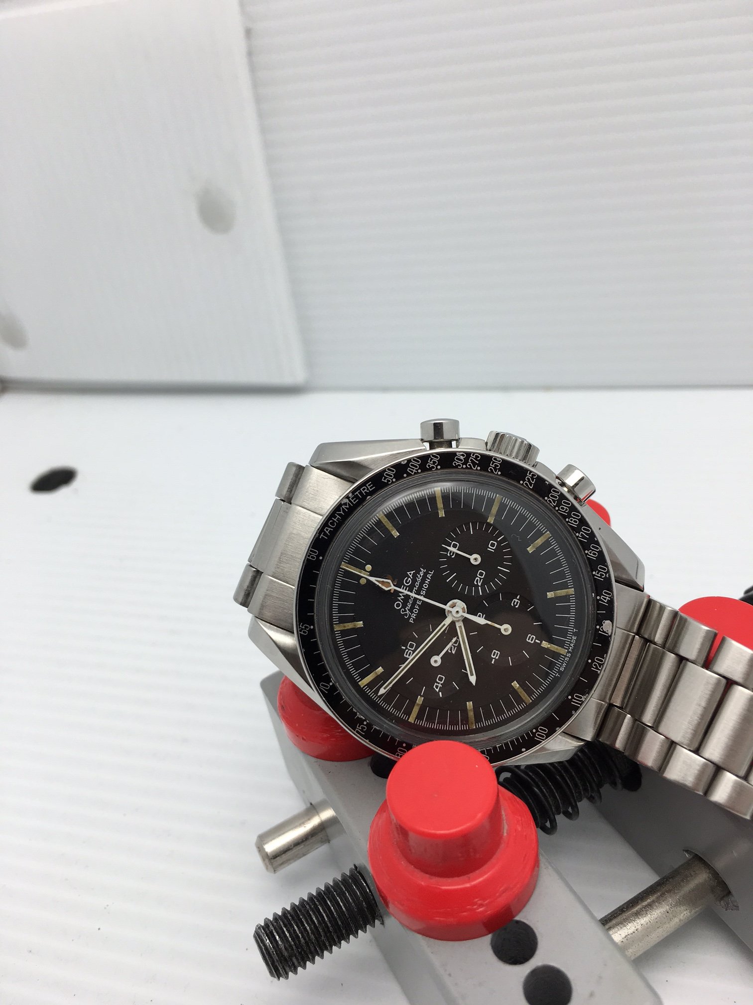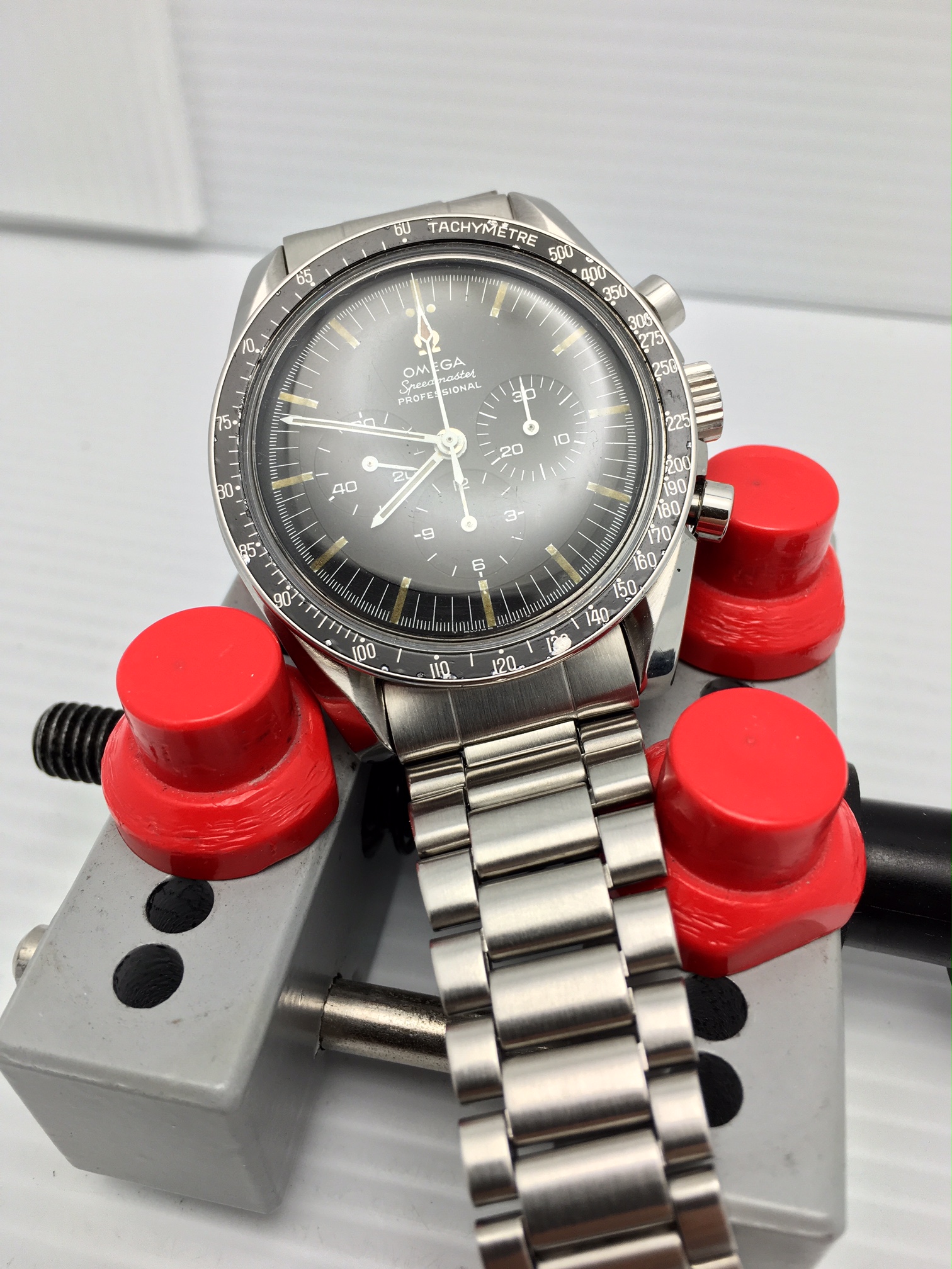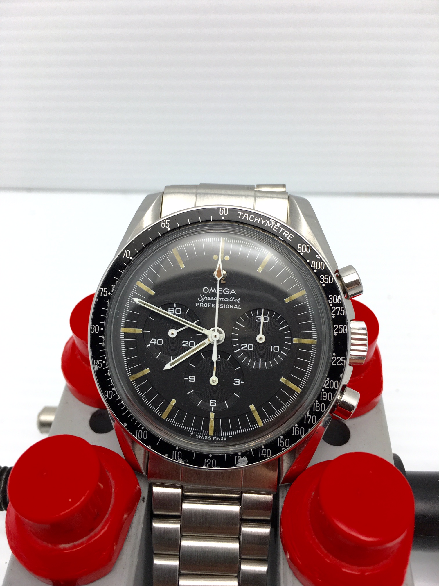 I have an Omega Speedmaster Professional 105.012-66 for sale. Please take a look at the photos for condition and read entire listing. Aged Dot over 90 bezel and correct smaller crown. This one is interesting as it has the CB case edges seen on the upper top of the lugs but has an HF caseback.