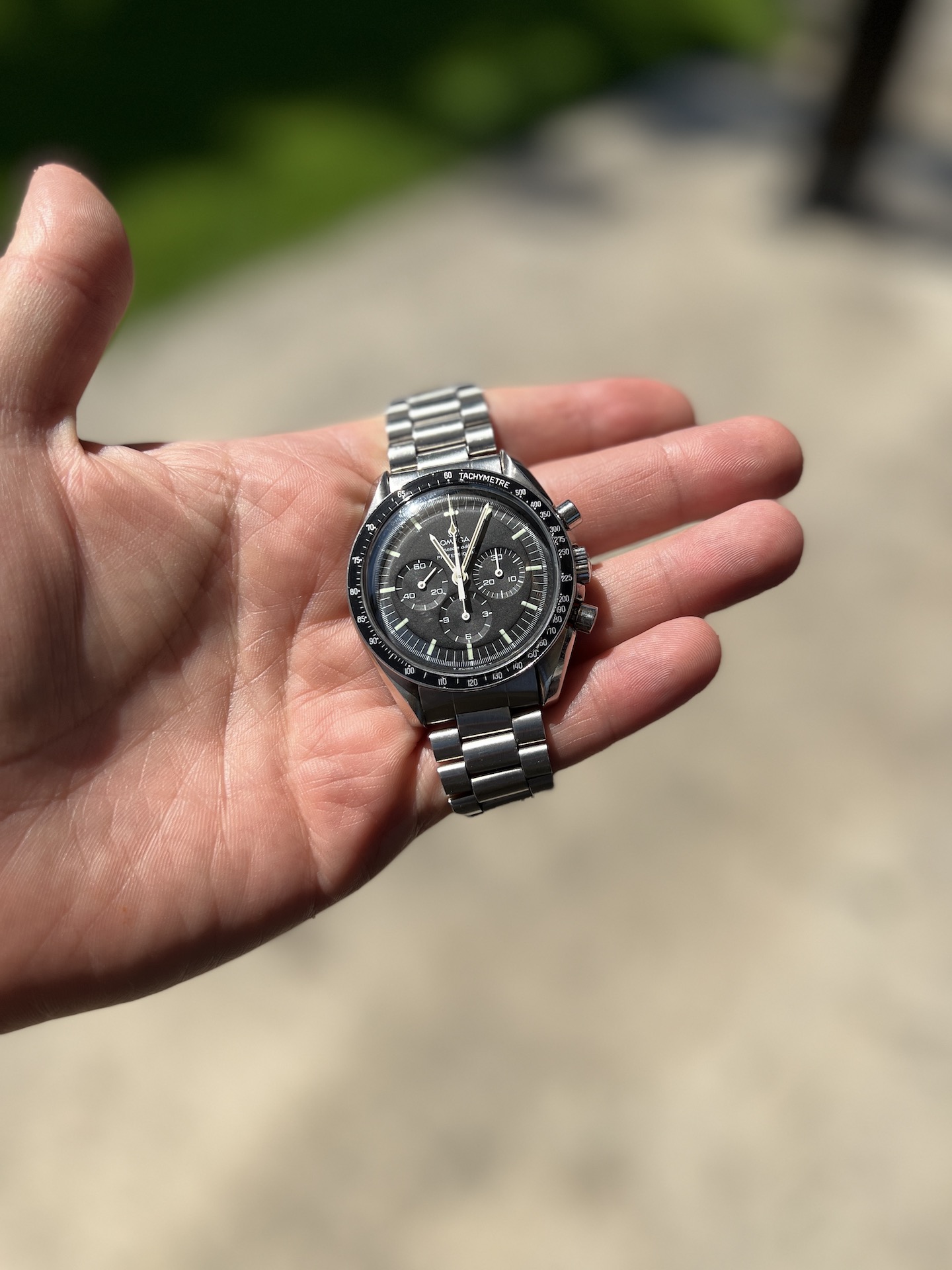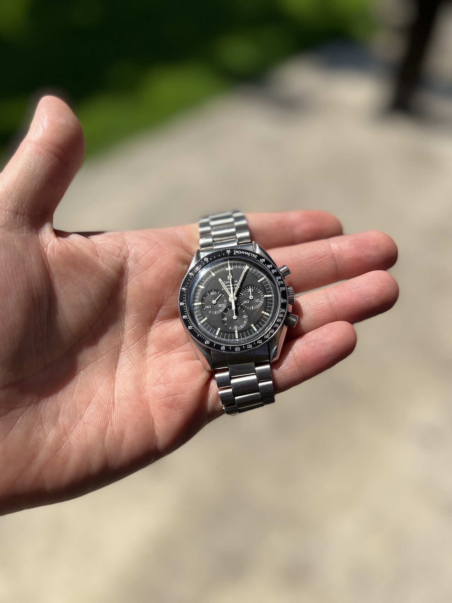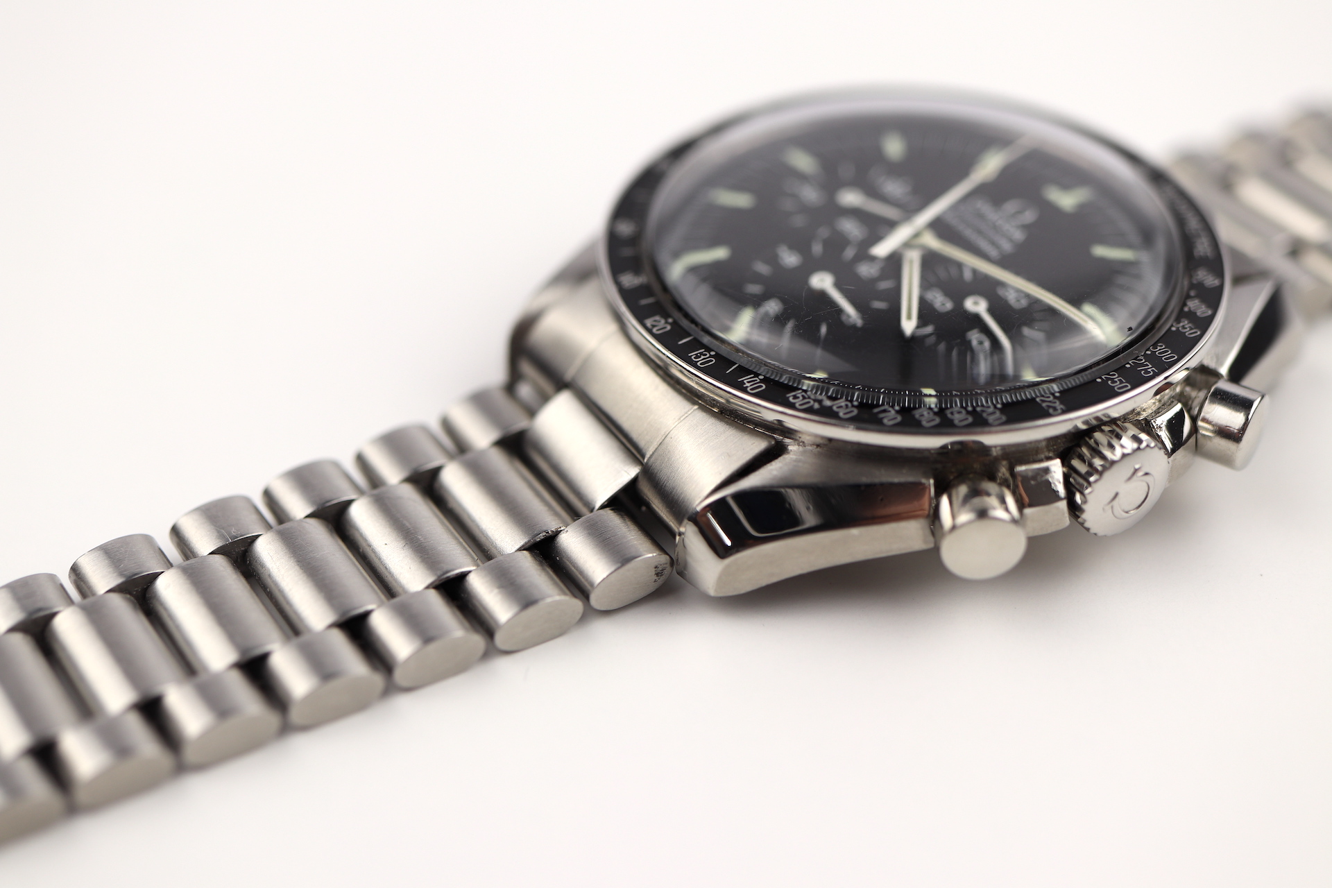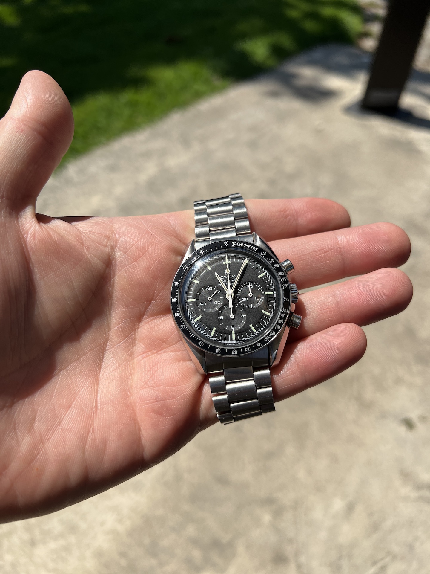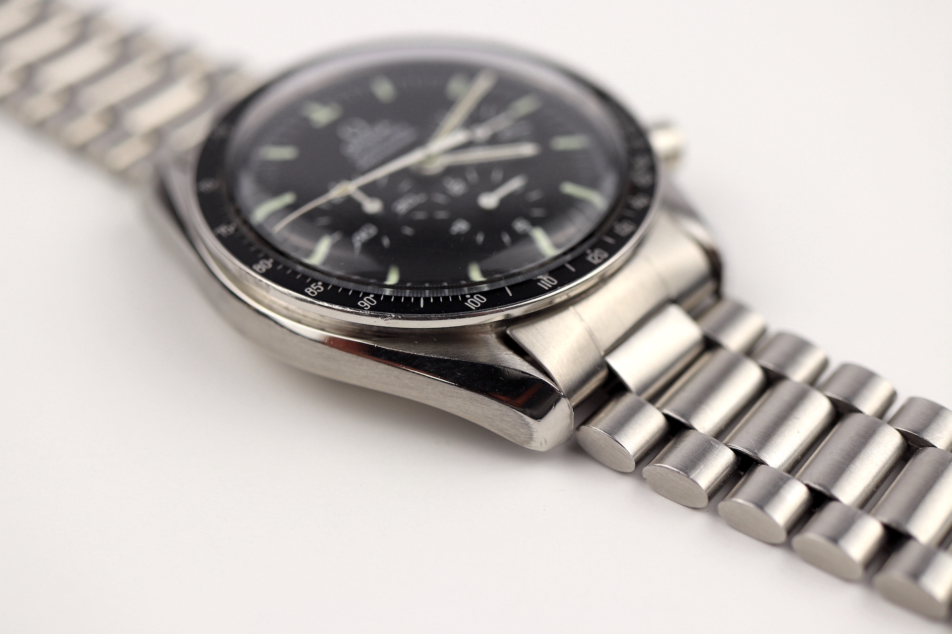 ·For sale, I have an Omega Speedmaster Professional 145.022-1971. It has the Caliber 861 which is a manual winding movement. The case measures 42mm without the crown. The watch was just serviced and all functions are working as they should. The watch will come with the 1171 bracelet and 677 end links. The box in the pictures is also included.