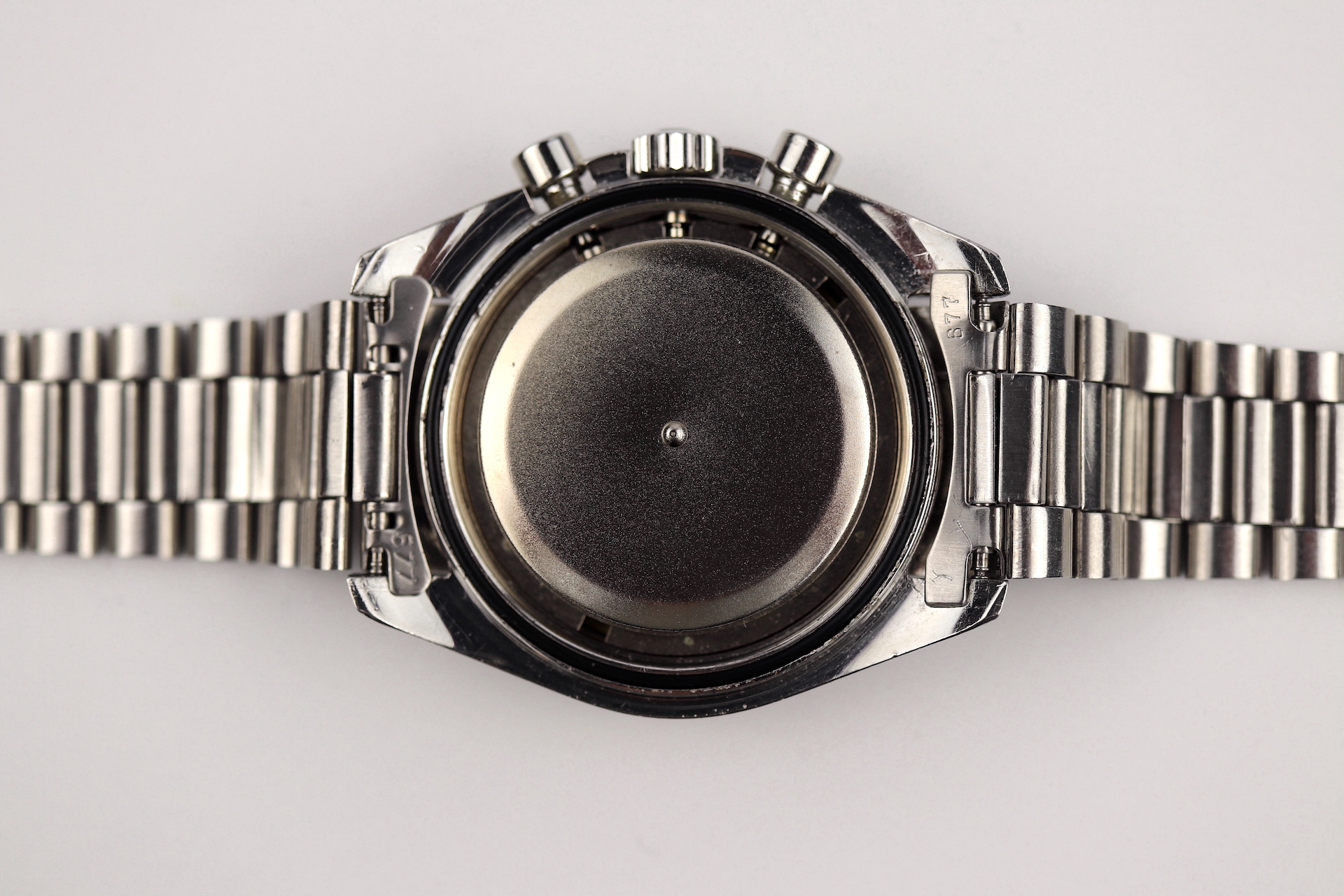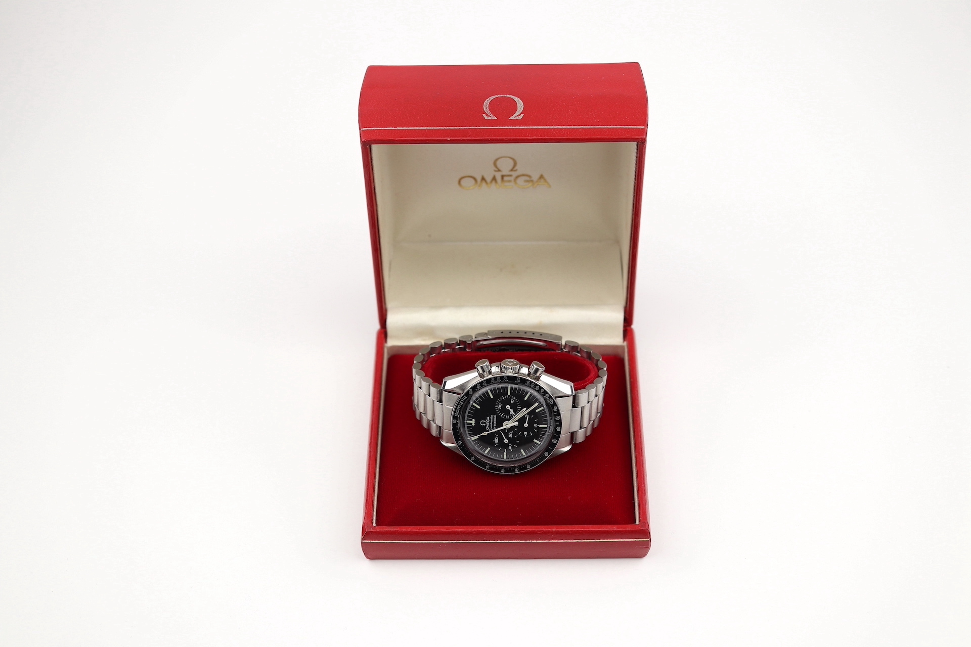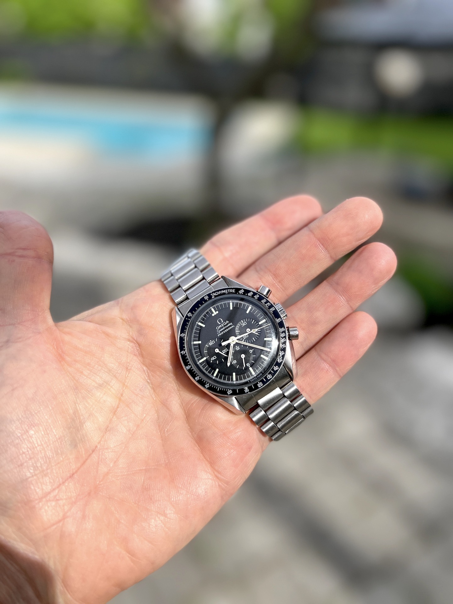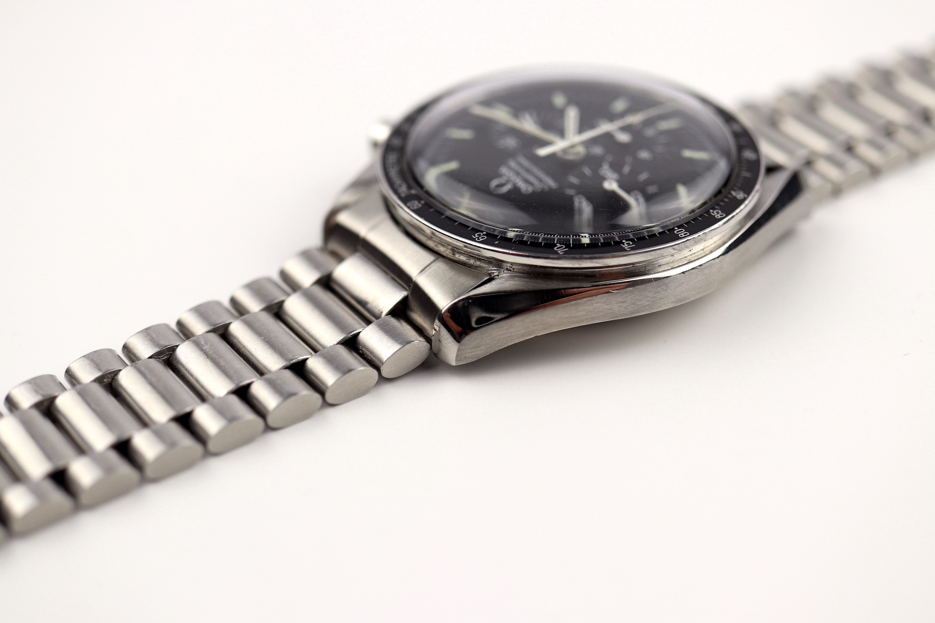 ·For sale, I have an Omega Speedmaster Professional 145.022-1971. It has the Caliber 861 which is a manual winding movement. The case measures 42mm without the crown. The watch was just serviced and all functions are working as they should. The watch will come with the 1171 bracelet and 677 end links. The box in the pictures is also included.