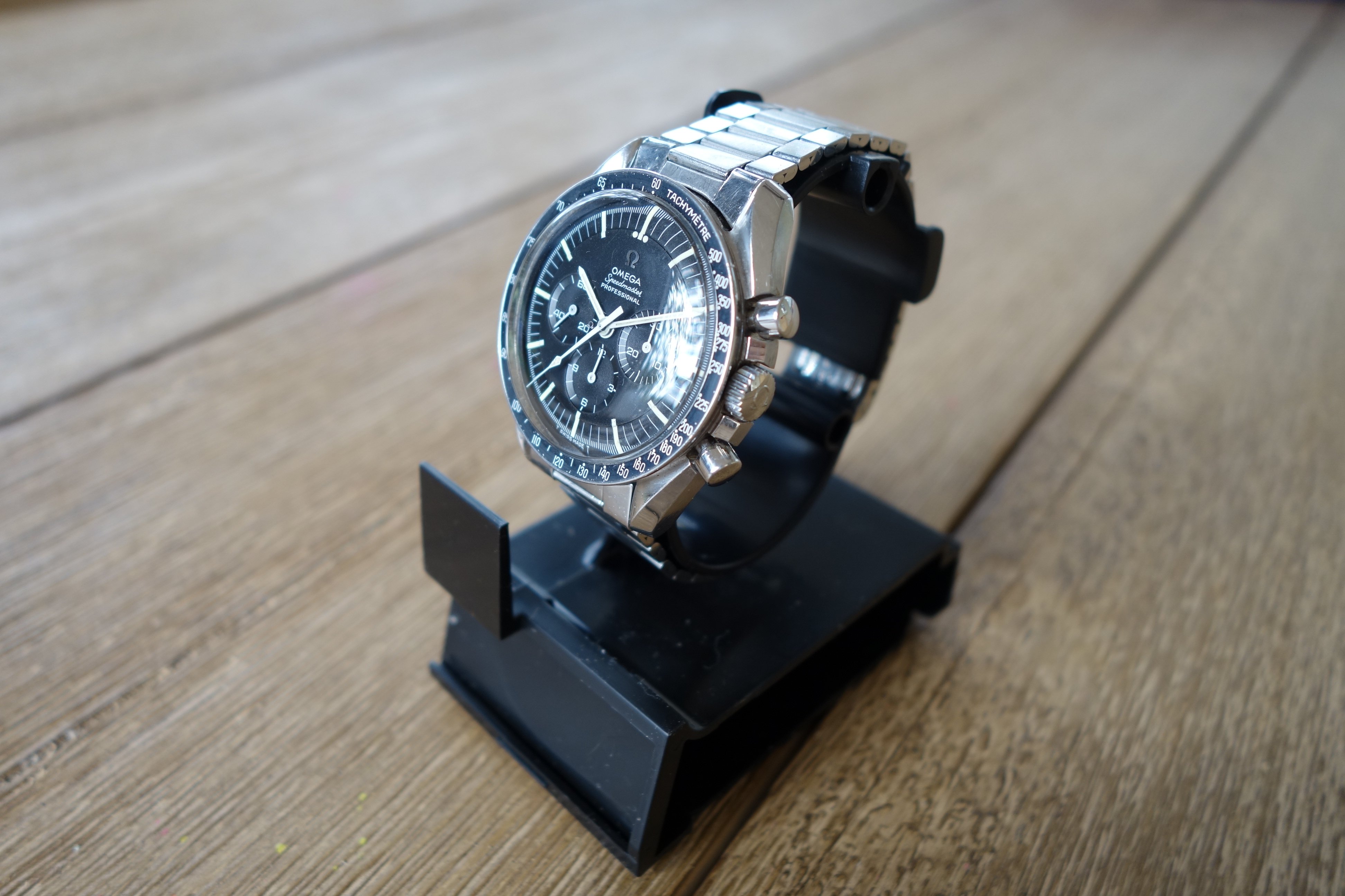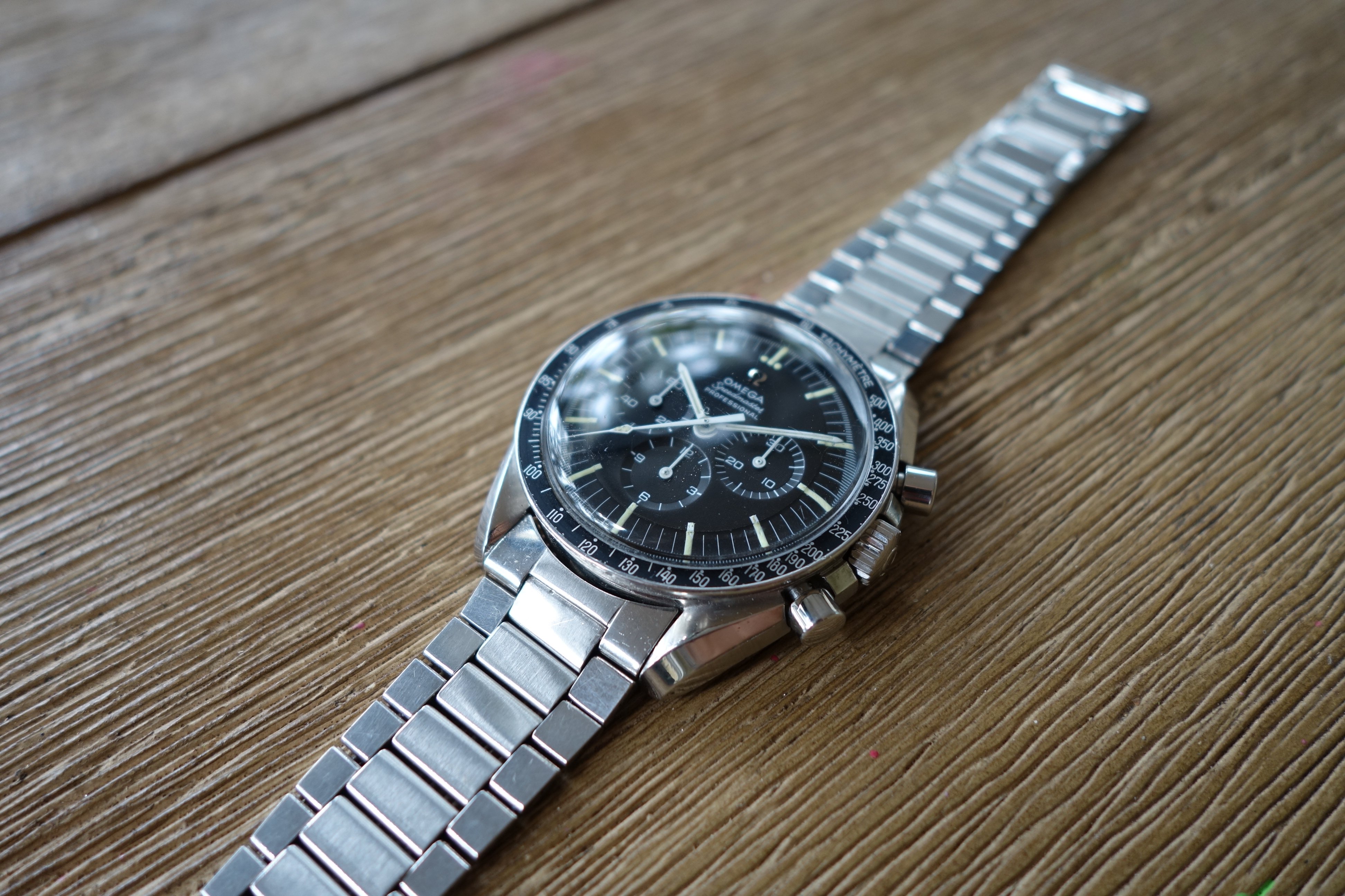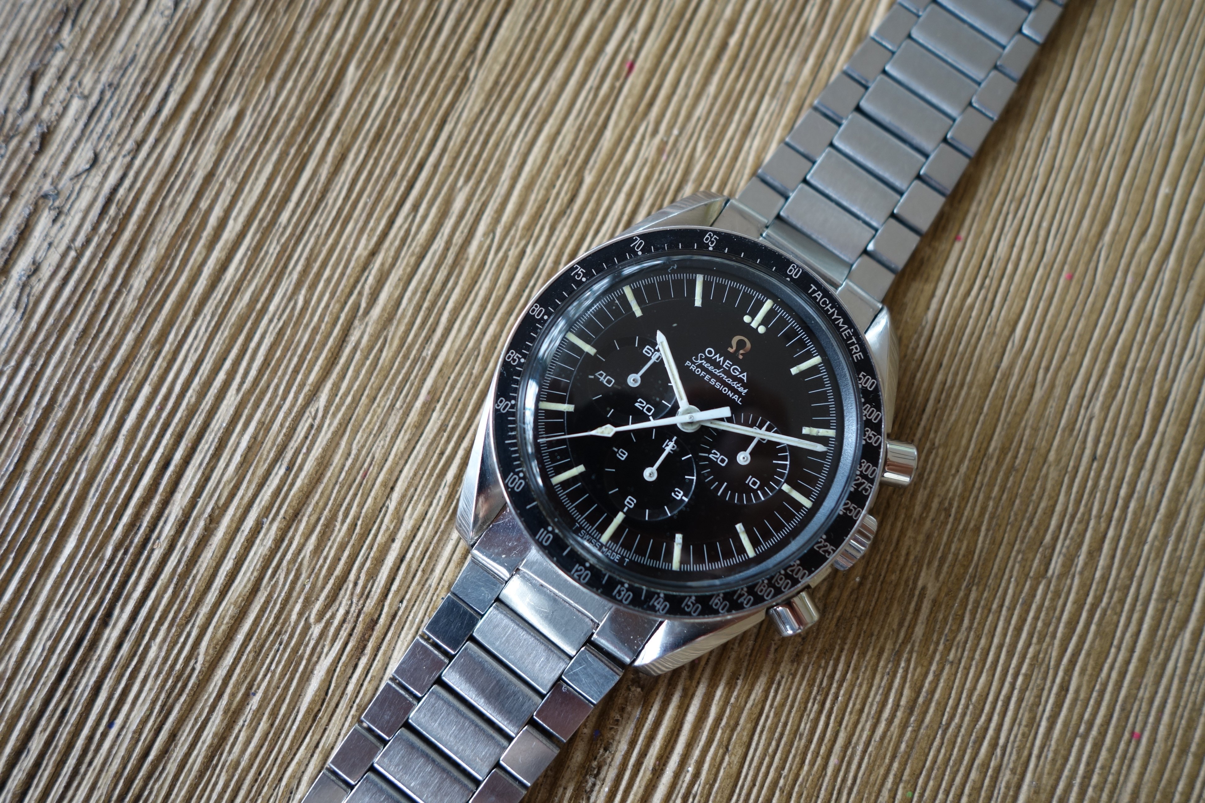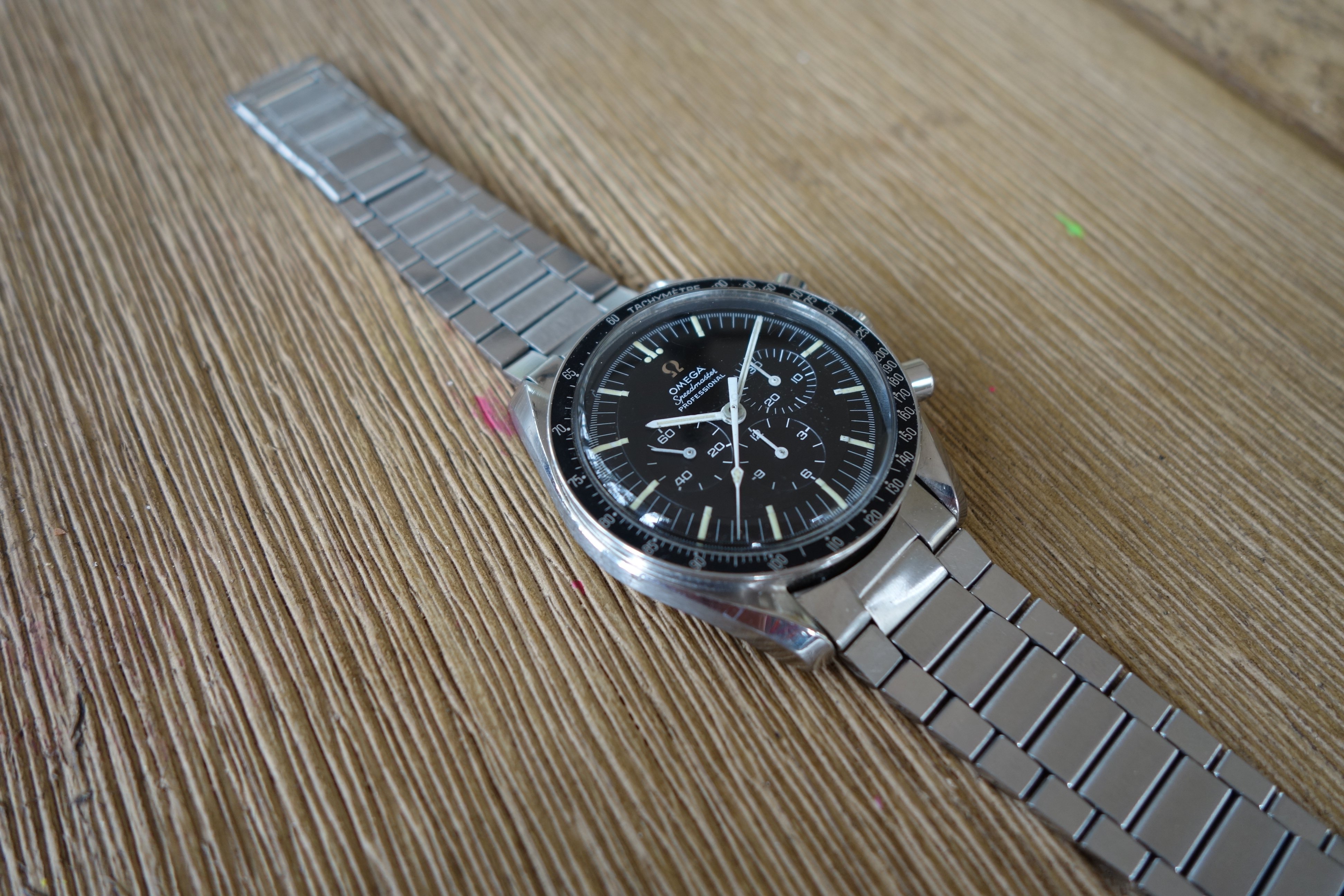 Okay, the watch. This is a very nice 145.022-68 that I bought earlier this year from @DRjre086 and had serviced shortly thereafter. During service, I opted to have the crown, crystal and pushers replaced for water resistance. Genuine Omega parts were used, and the original parts are included in this sale. No refinishing was done, as my watchmaker felt the case to be untouched. I've enjoyed owning this watch, but I have an overseas move on the horizon and I'm trying to get my collection down to a more manageable state.