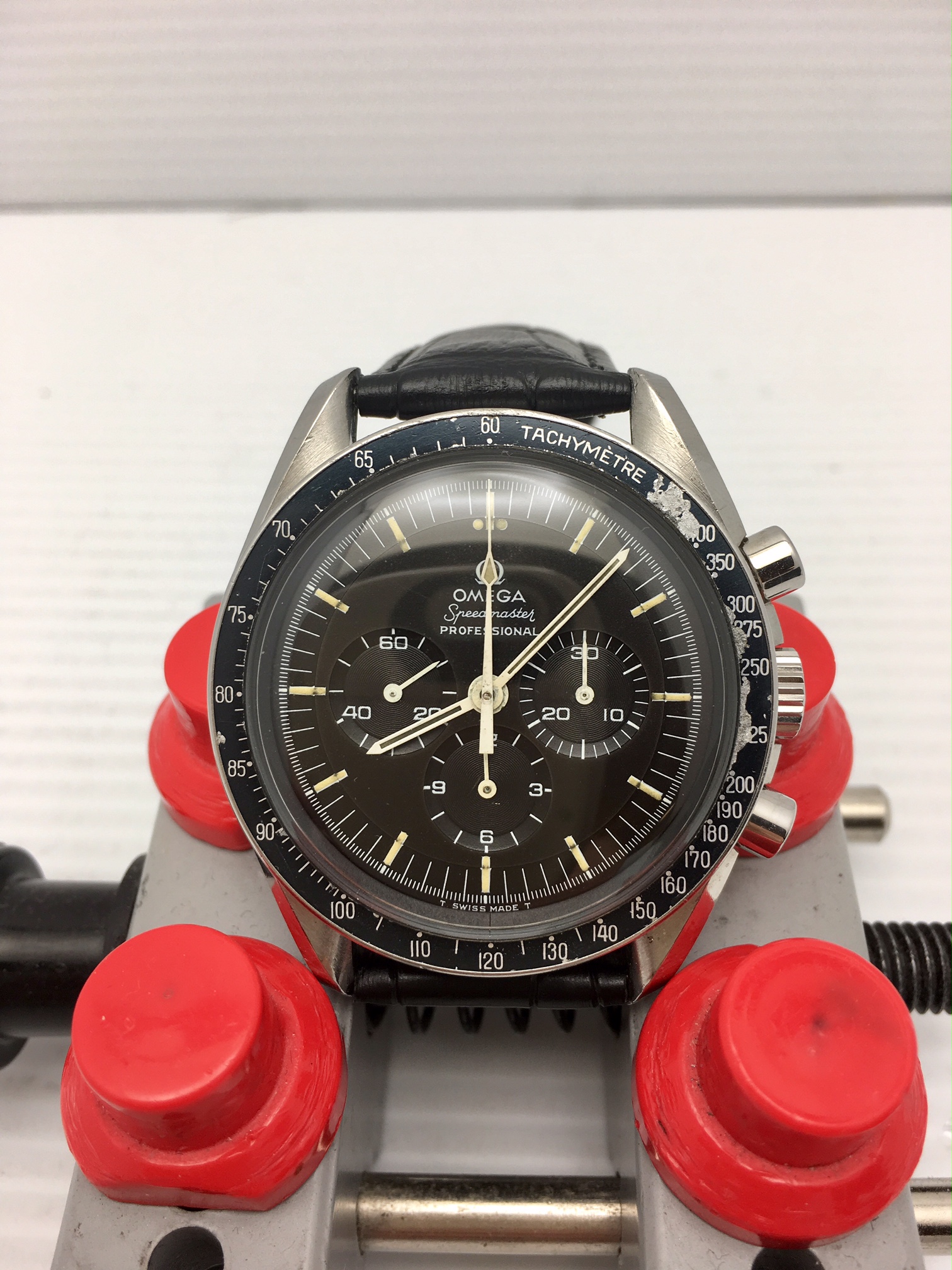 I have an Omega Speedmaster Professional 145.022-69 pre moon for sale. Please take a look at the photos for condition and read entire listing. Nice DON bezel and excellent dial with matching hands. Dial is slightly browning when rotating side to side.