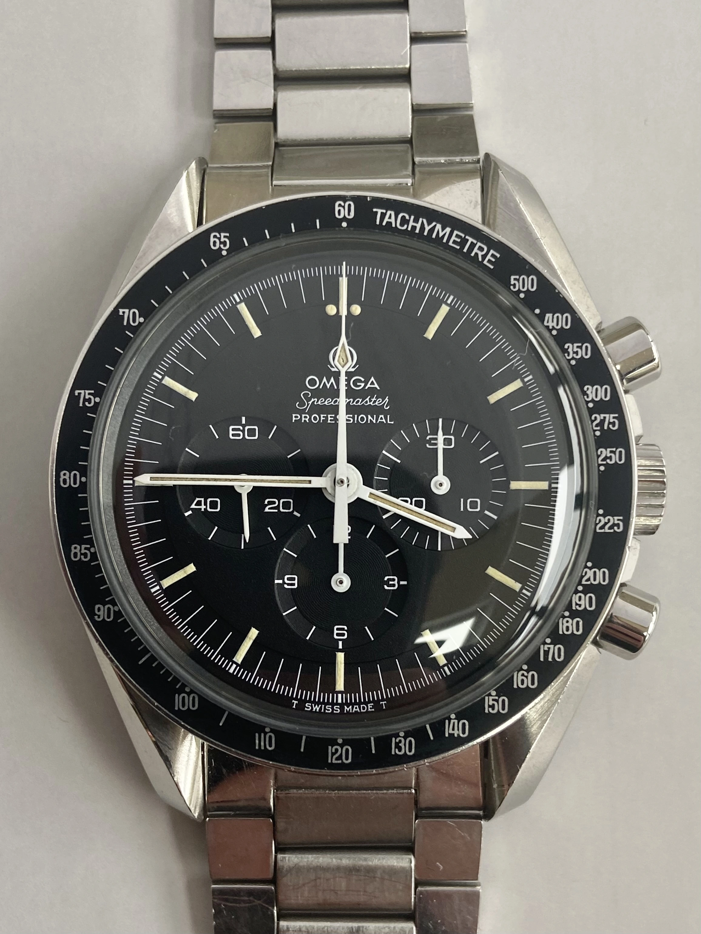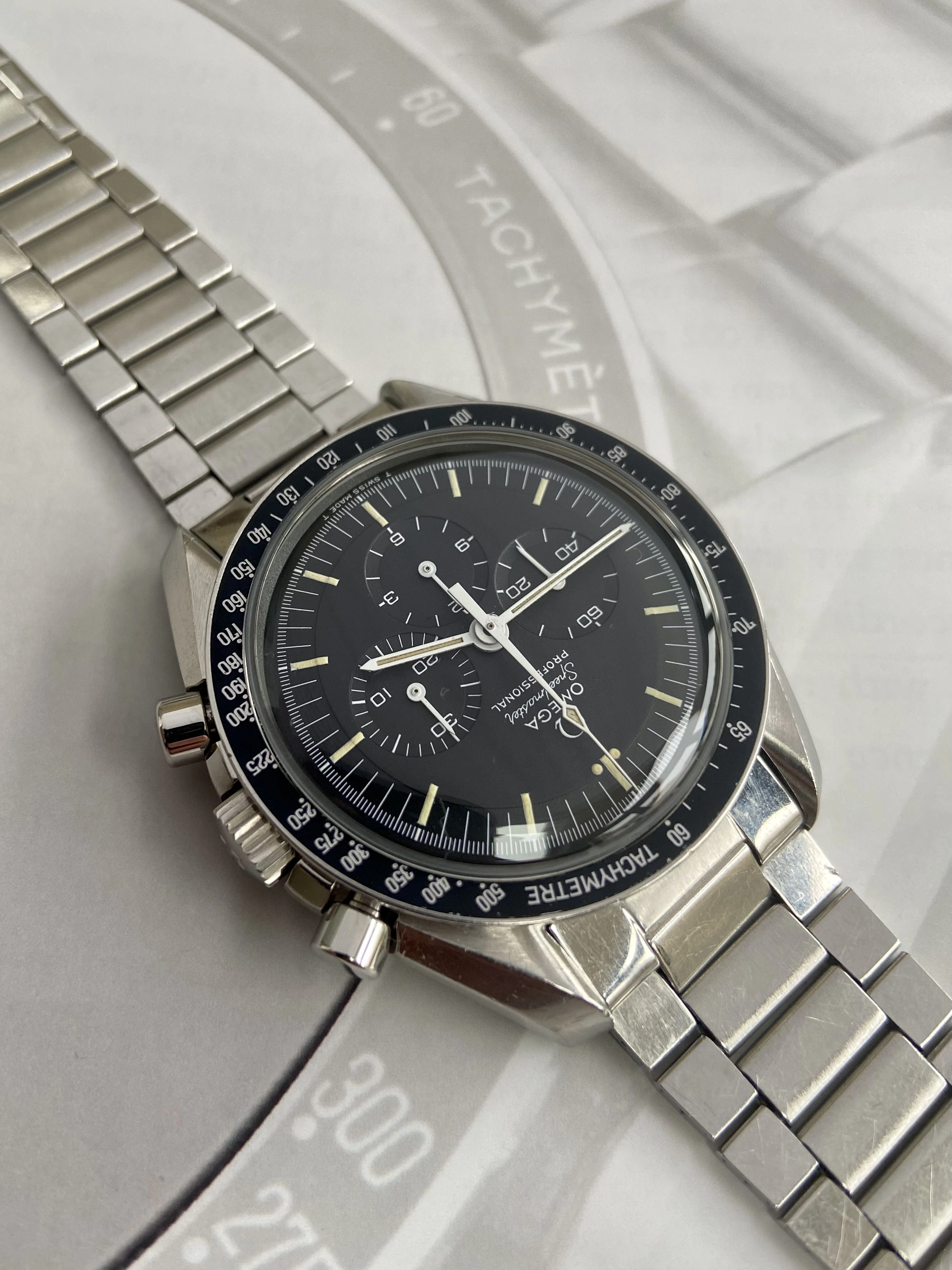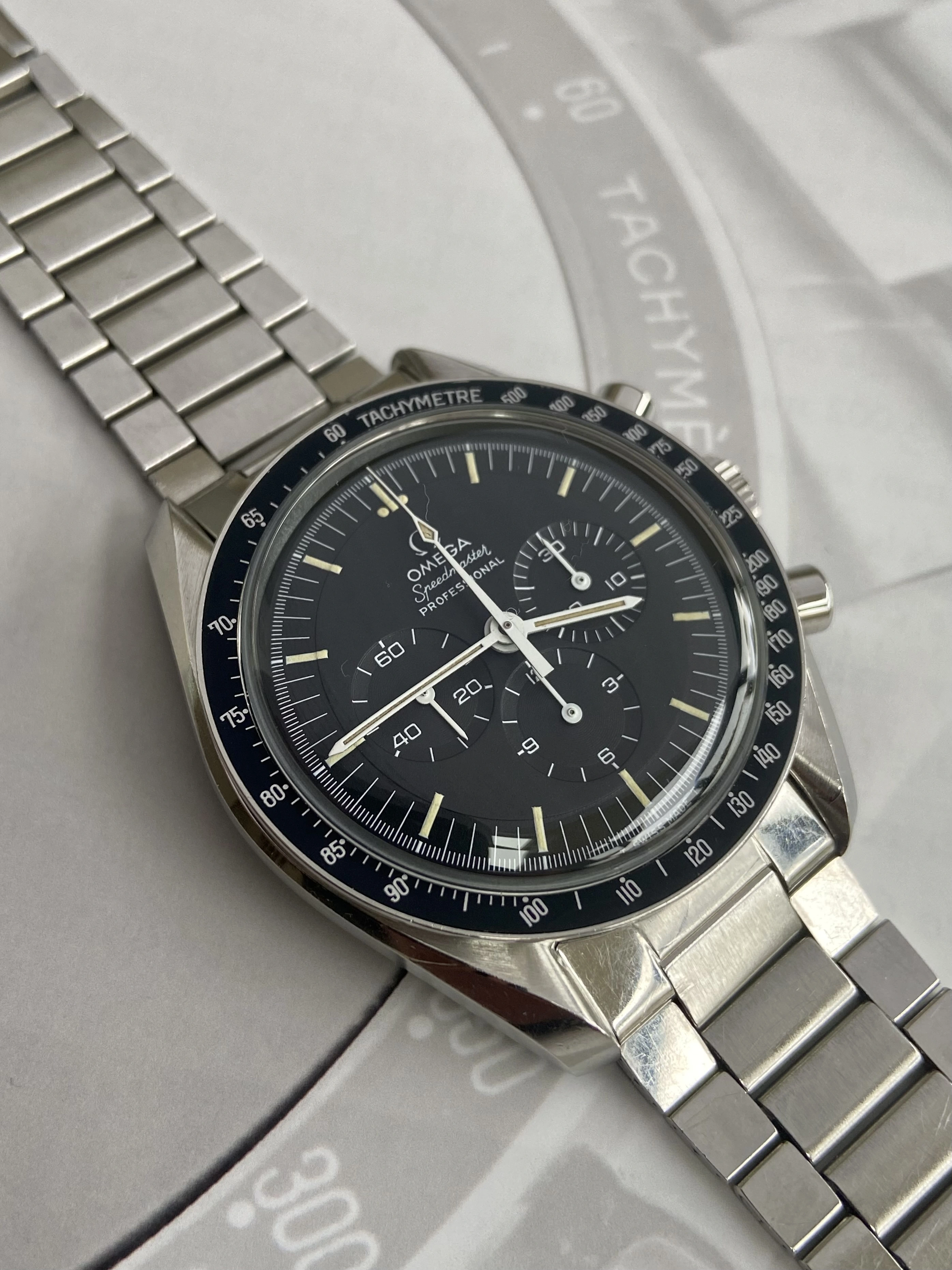 Factory original C1 black step dial, not refinished, restored or relumed. In absolutely excellent condition, no damage, scratches or loss of print. Genuinely the best vintage Speedmaster dial I’ve owned.