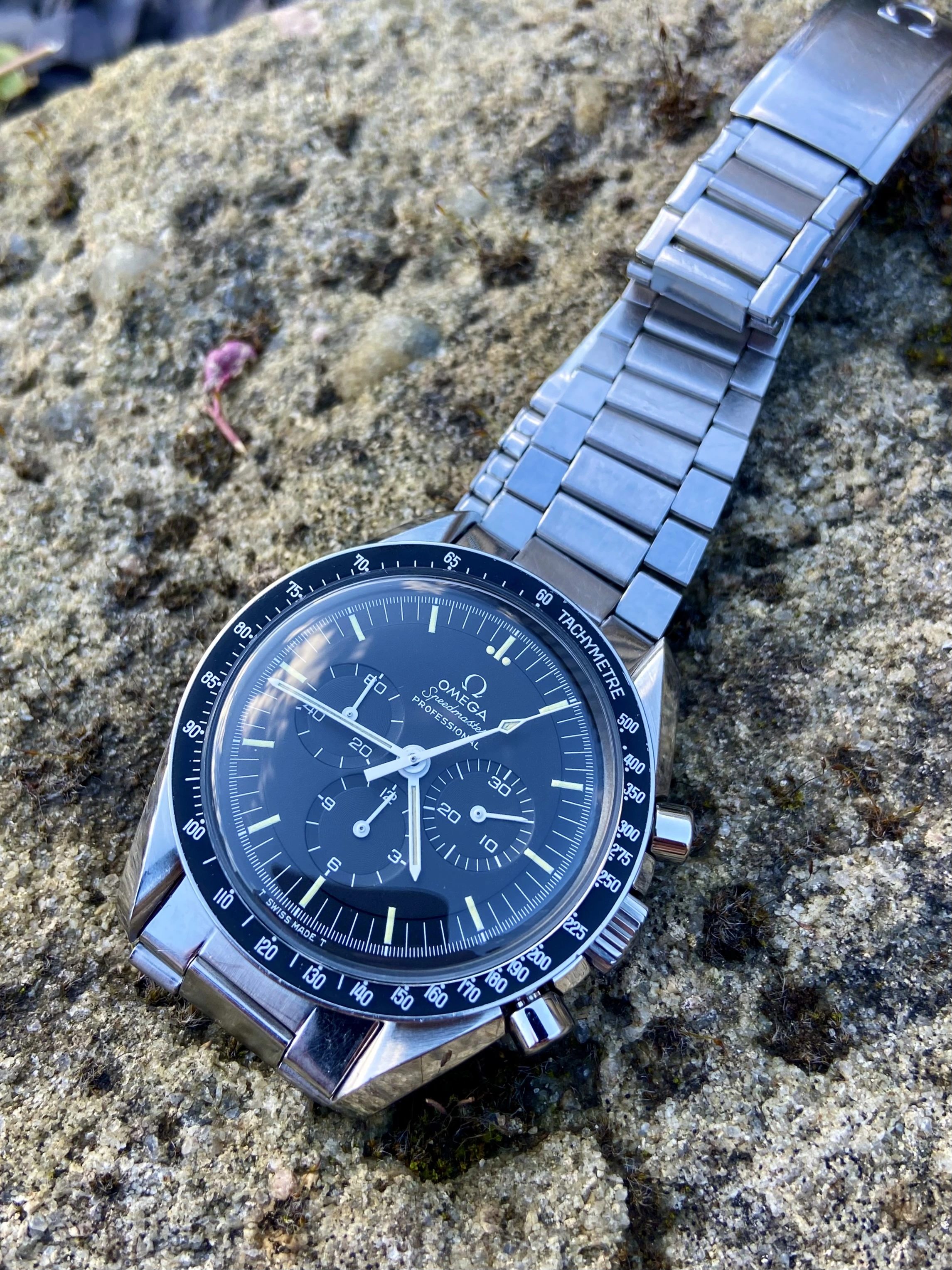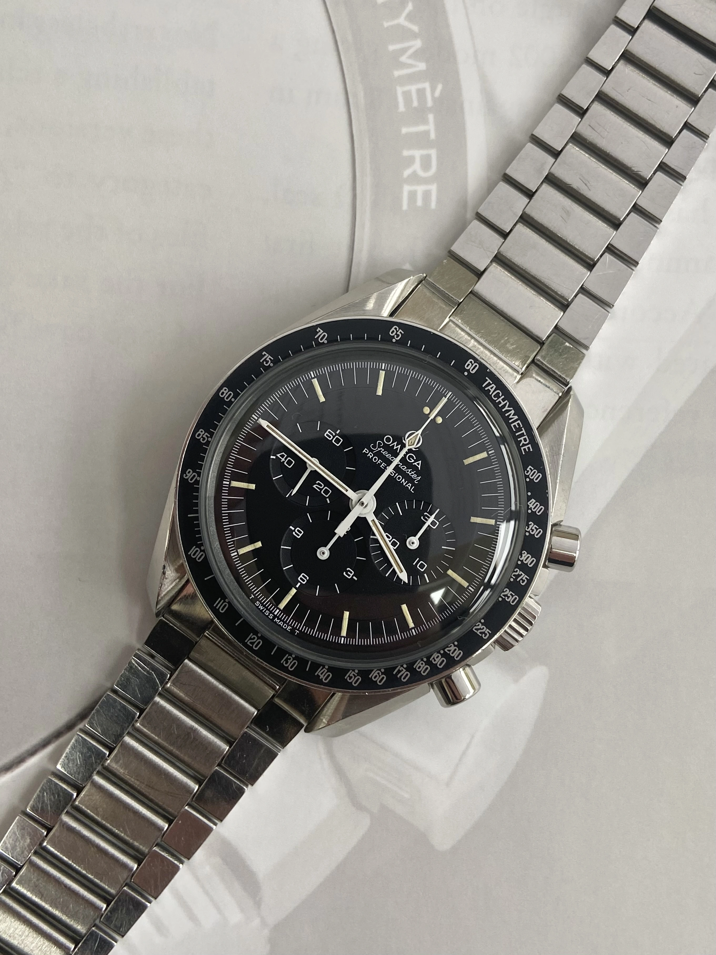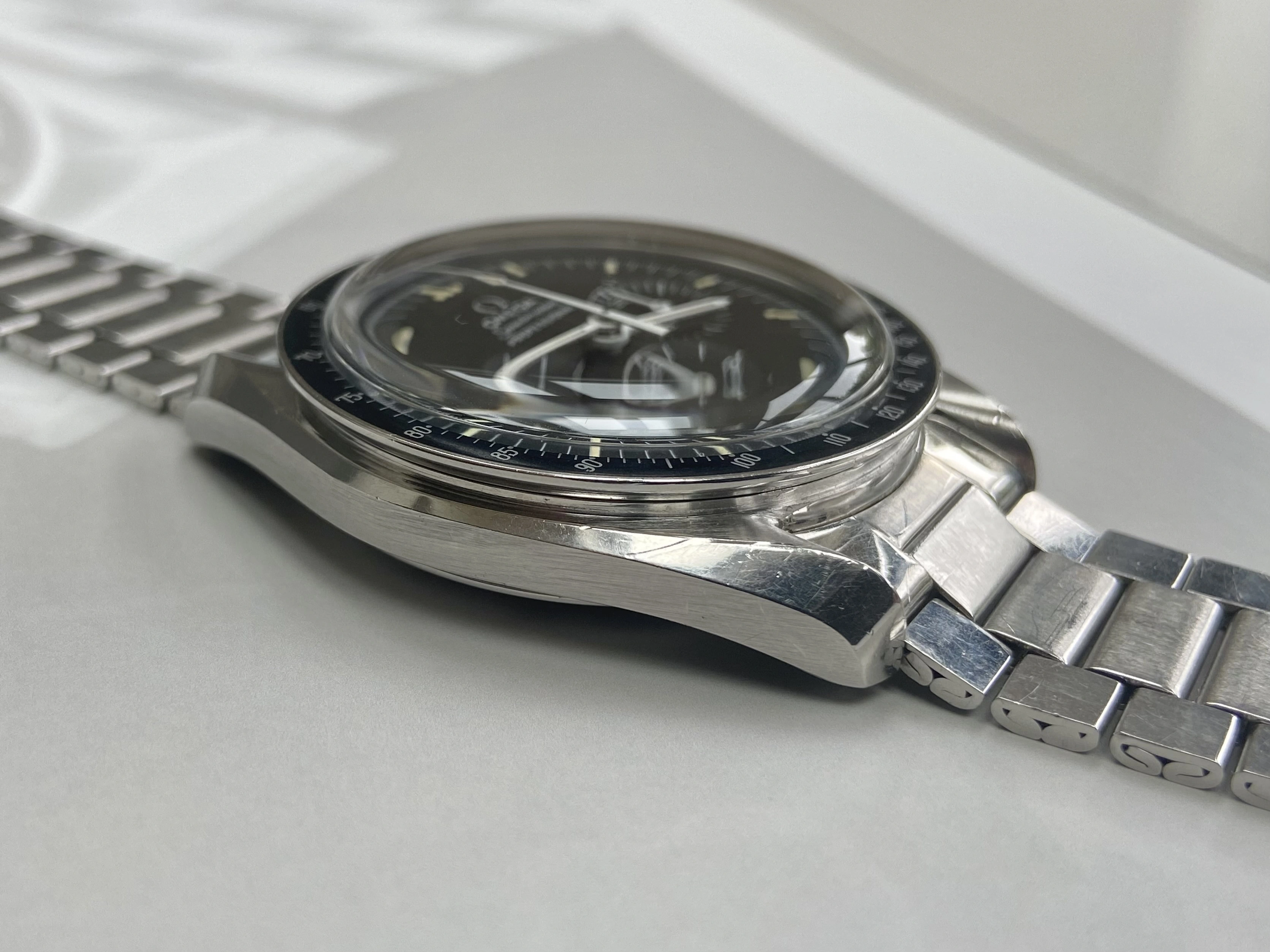 Factory original C1 black step dial, not refinished, restored or relumed. In absolutely excellent condition, no damage, scratches or loss of print. Genuinely the best vintage Speedmaster dial I’ve owned.
