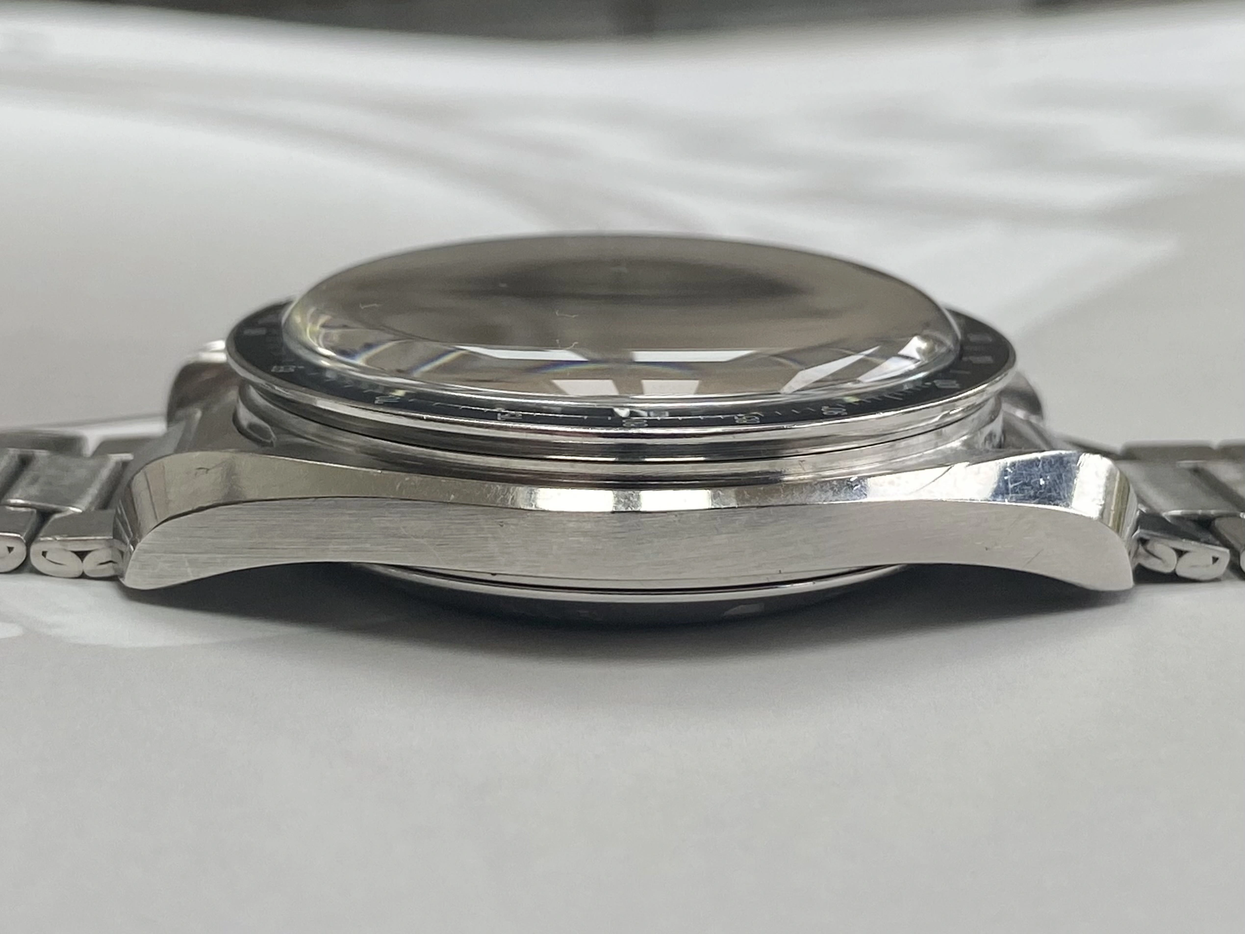 I fully believe this was a factory original watch when I acquired it, very possibly never opened or serviced as it retained the red dot on the caseback. Every part was original, down to the crystal, pushers, crown and bracelet. It was fully serviced in March this year by STS where I had a new crystal and pushers installed, but the originals were returned and will be included with the watch.