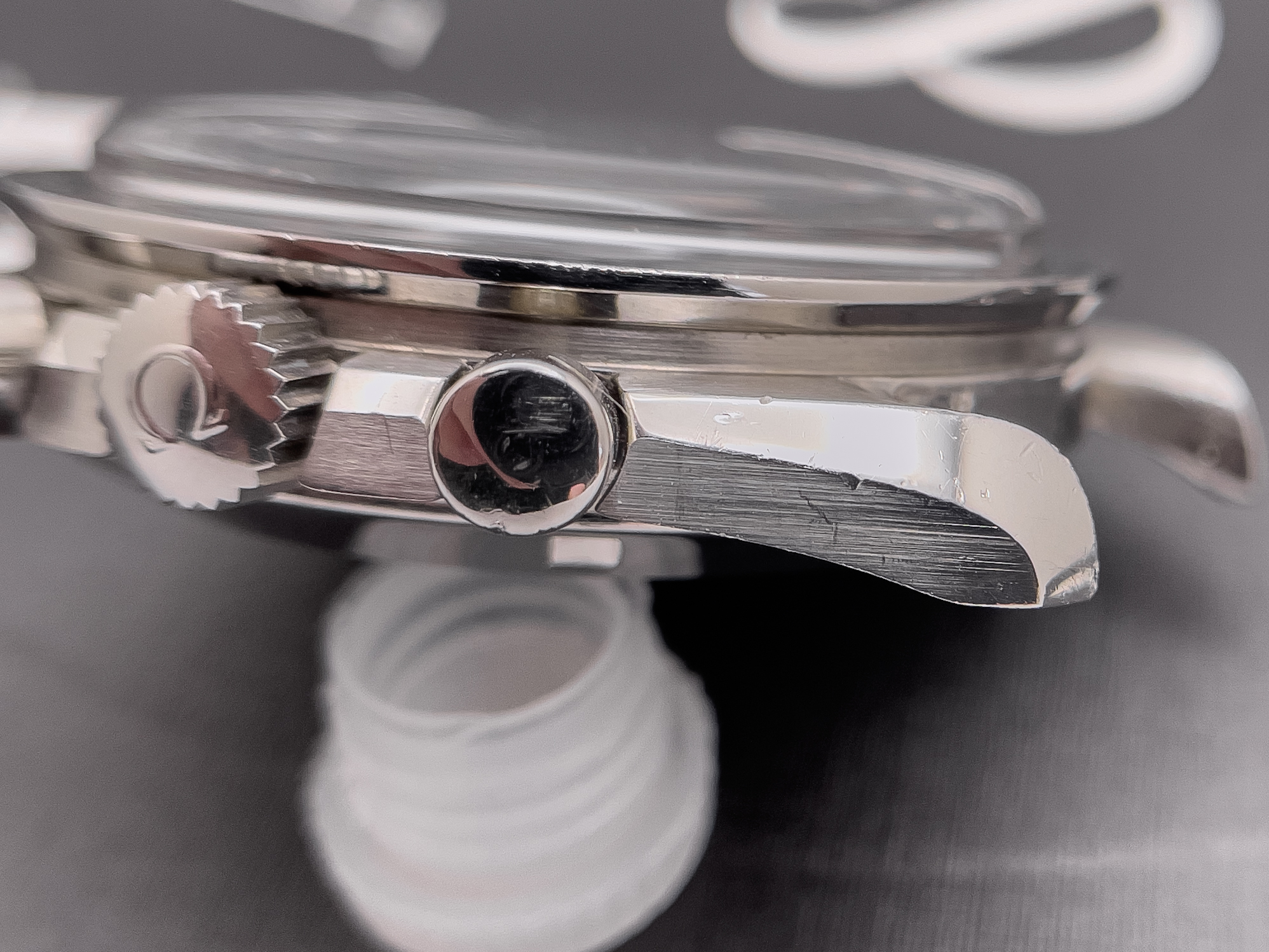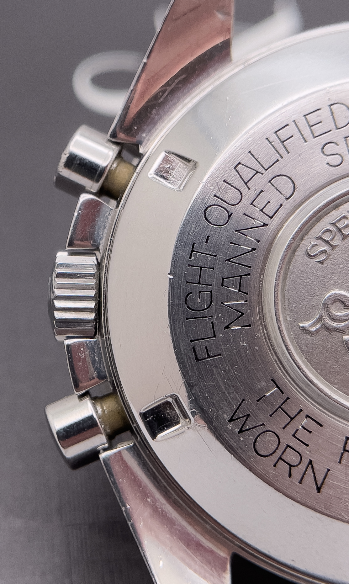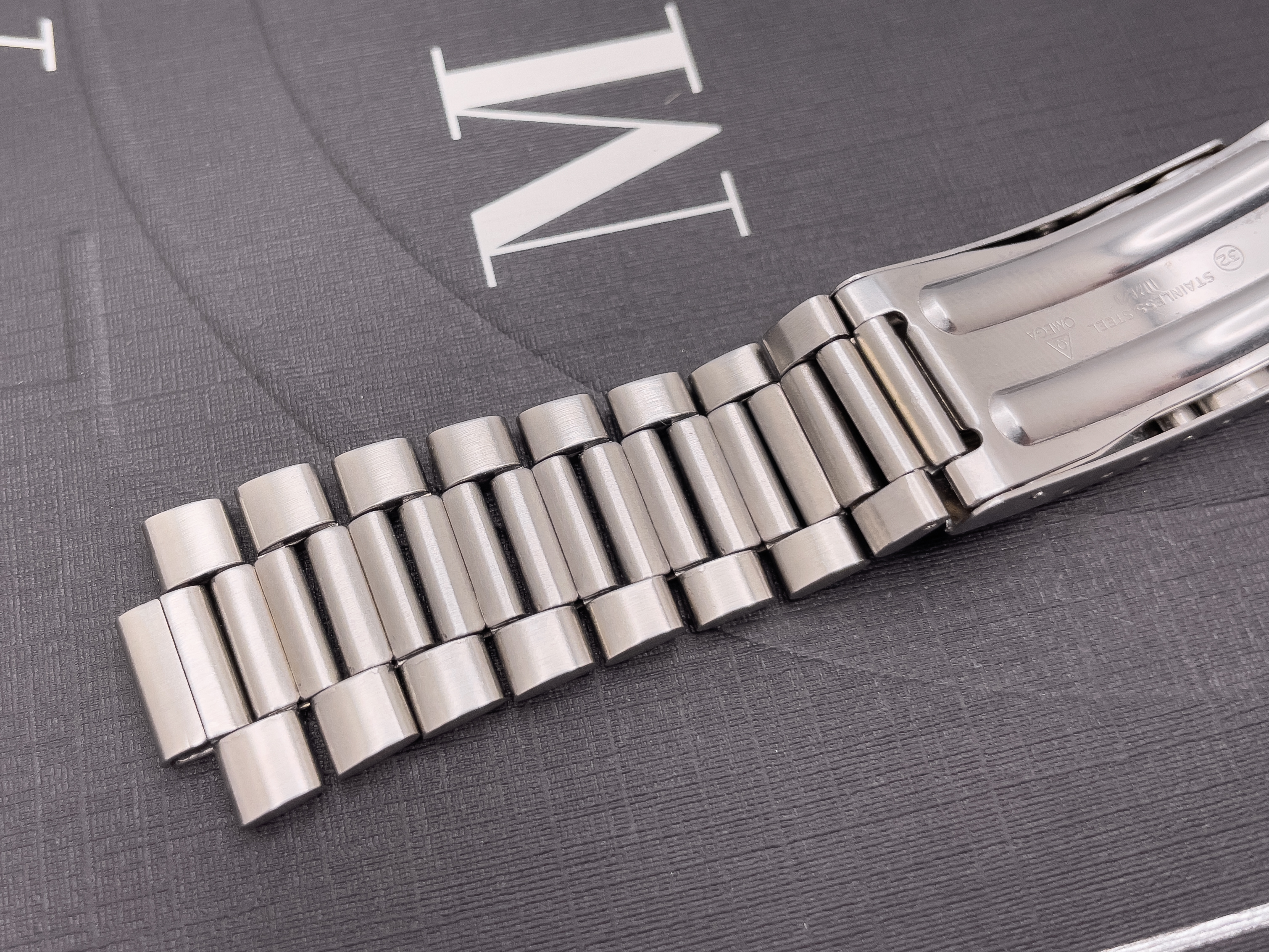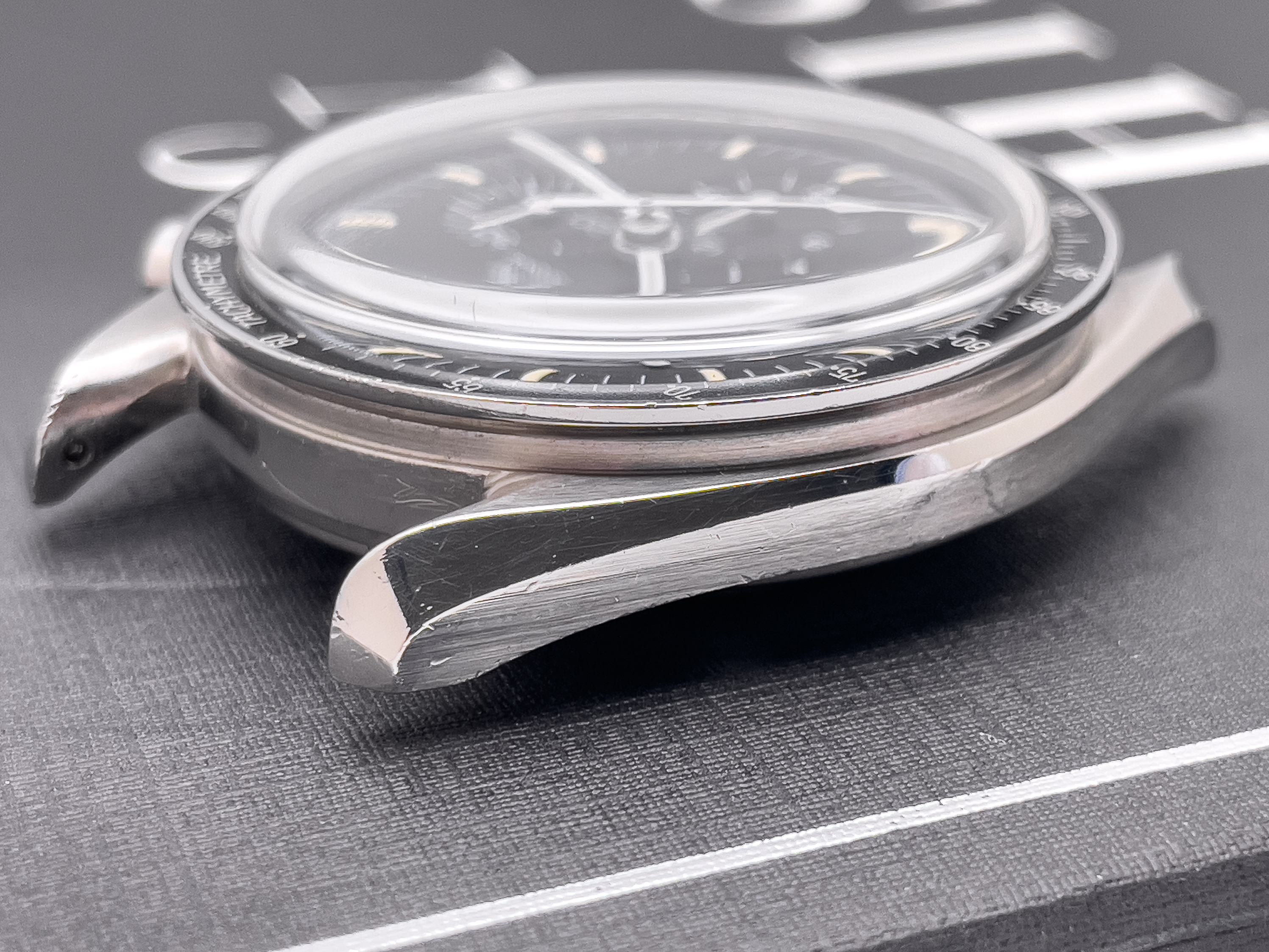 Over the last year I have picked up a couple other Speedies, which resulted in this one getting much less wrist time. I purchased this piece from fellow member Ndgal, which he had advertised as from 85. I don't have an extract for this, but using ilovemyspeedmaster.com I got an estimated March 1985 date. While I cannot say this is "unpolished" as I am not the original owner of this, the case does have sharp edges and shows wear commensurate with it's ~37 years of age. During service the case was not refinished. The original TACHYMETRE bezel is in overall great condition with small chips at 85, 93, 98, & 105, which is photographed below. The dial is in excellent condition with soft custardy tritium. The hands are original to the watch despite the tritium being softer in color than the dial. Please note there are two small cracks in the lume of the hour hand. During service, Kelly inspected these under microscope and confirmed the lume is secure. The pushers were rebuilt during service. The crystal is in good shape and could do with a light polish and has the present Ω in the center. The caseback has a superficial tool slip mark from a previous owner. Note the short tail Q and the ADB (A. Donze-Baum SA) Fir Tree. The 1171 with 633 end links is original to the watch and full size (with three additional links not photographed). During service I had the pins/tubes replaced and requested a new set of Omega spring bars. My wrist is between ~7" - ~7.25" and the bracelet is comfortably sized to the middle of 8 micro adjustments. As this is a full size bracelet, there is plenty of room for adjustment in either direction.