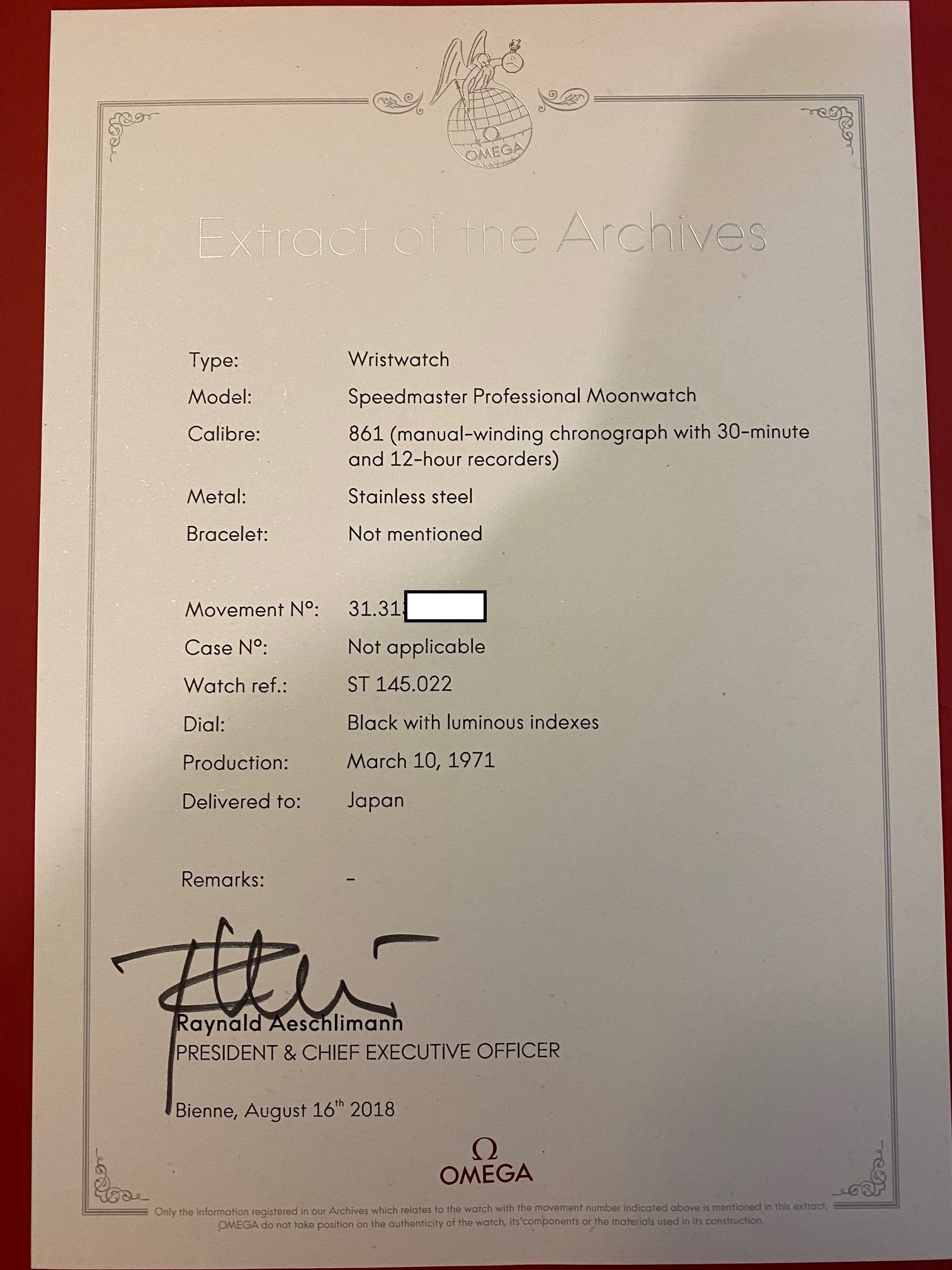 Accessories: watch only with Extract of Archives documentation