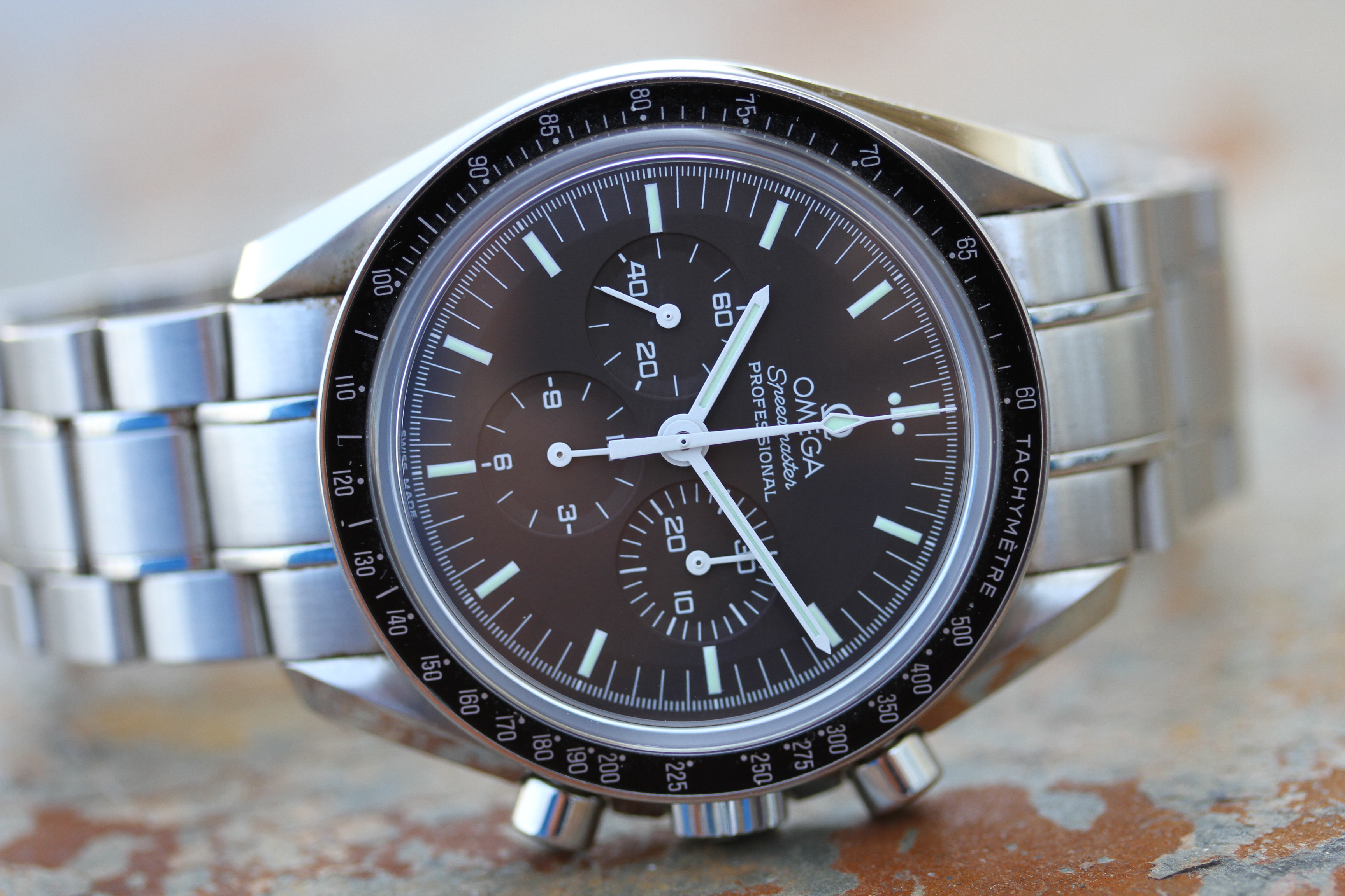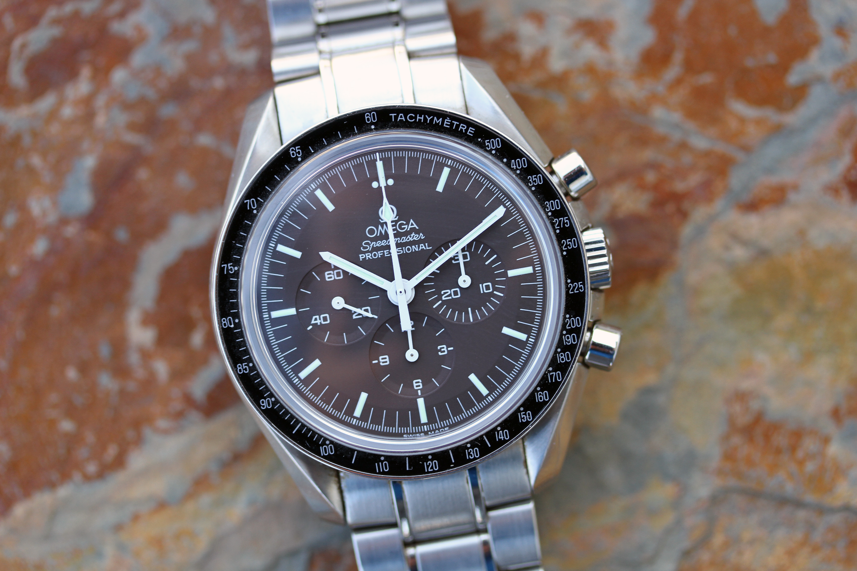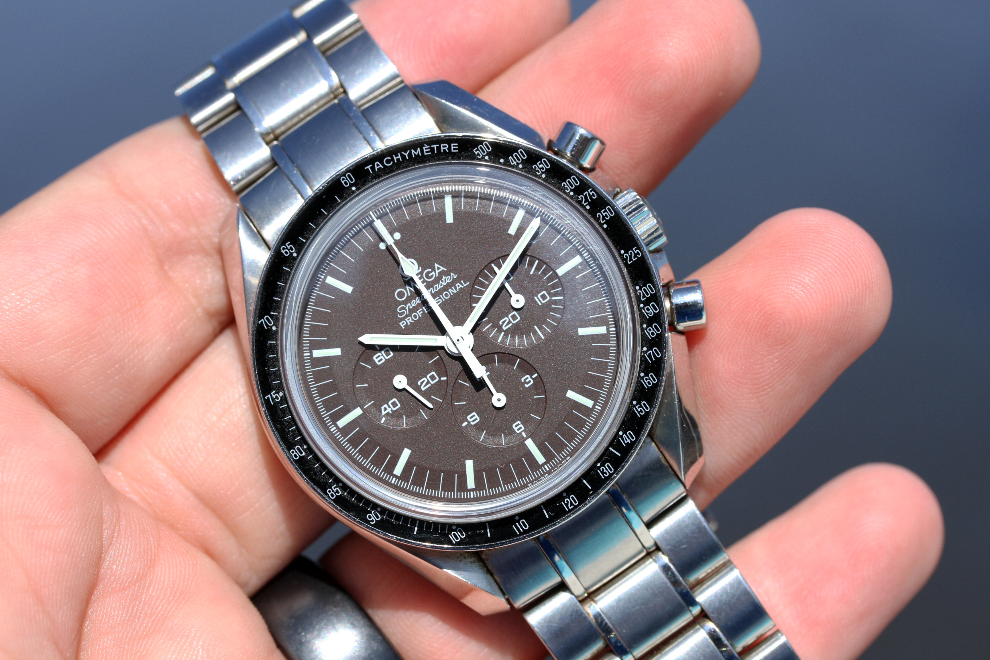 ·Up for grabs is an Omega Speedmaster Moonwatch "Chocolate Sapphire Sandwich"