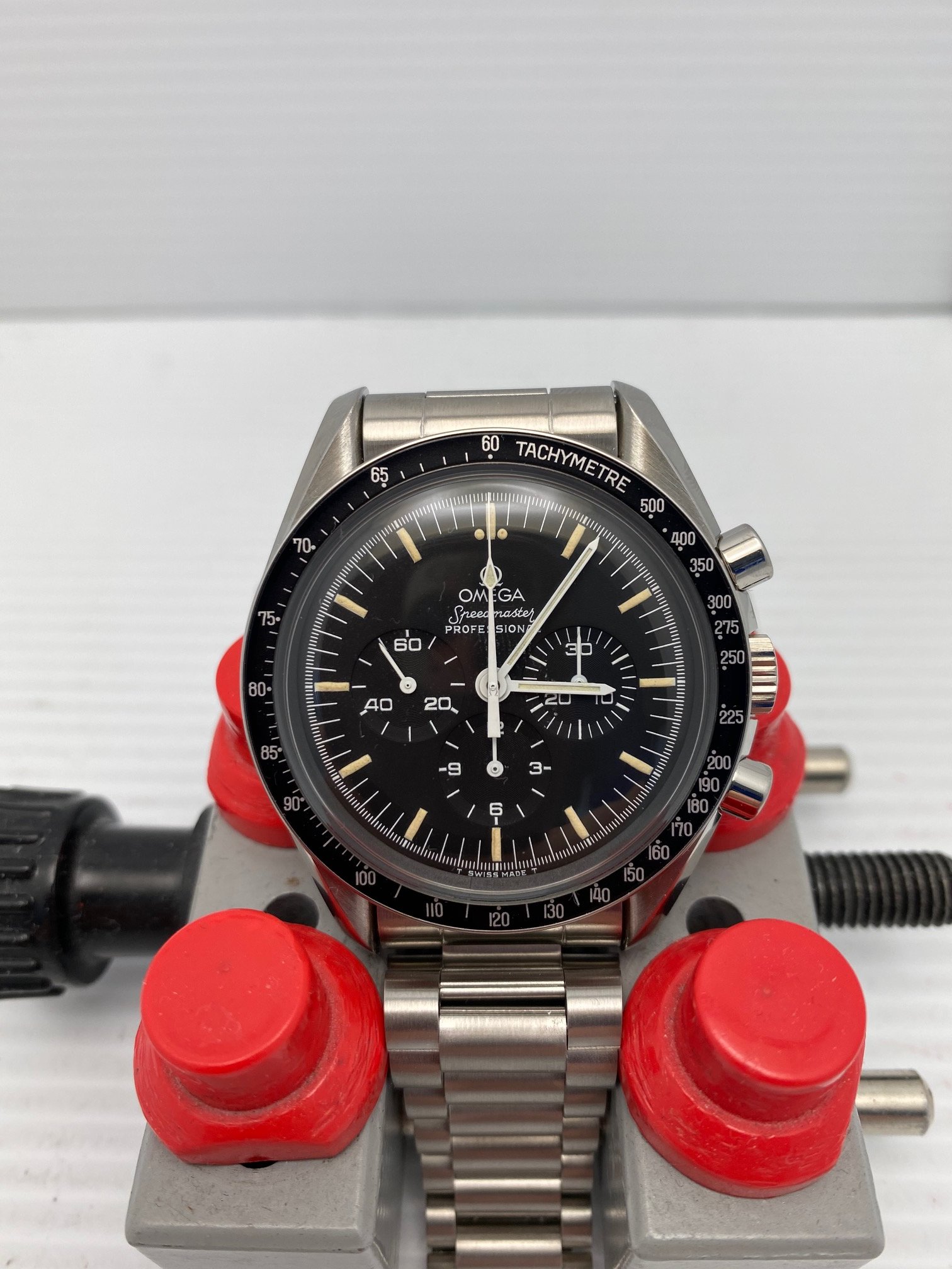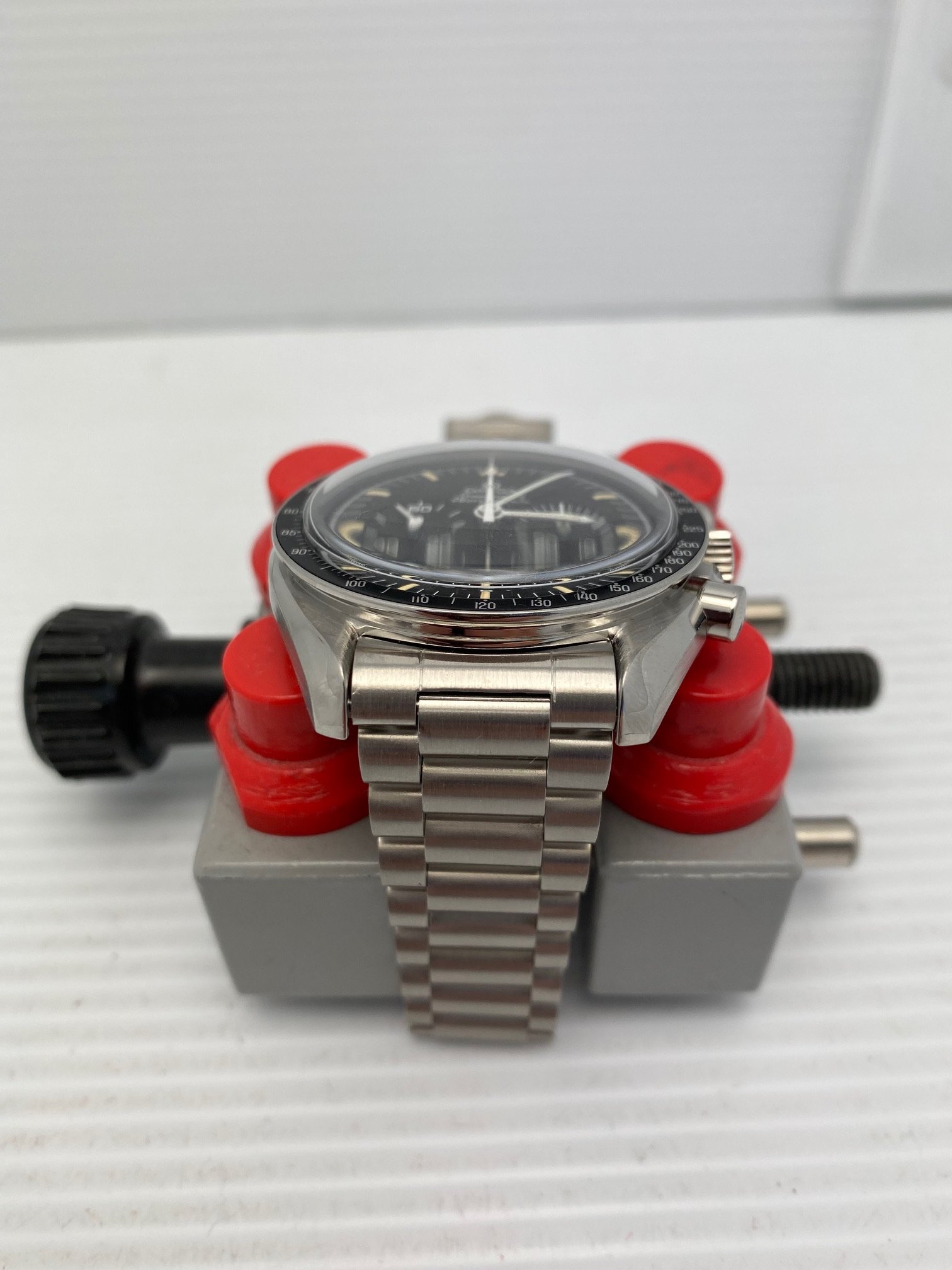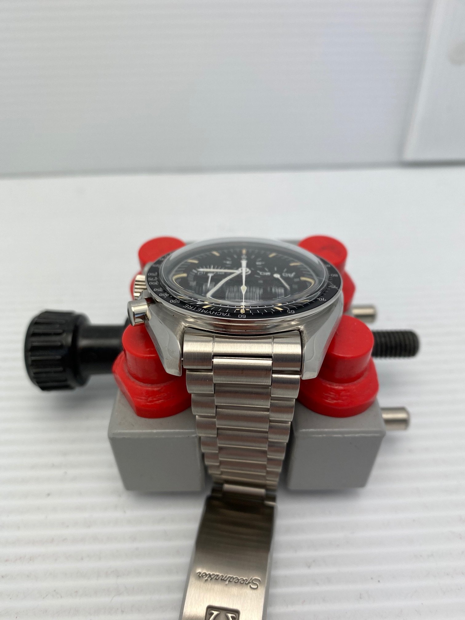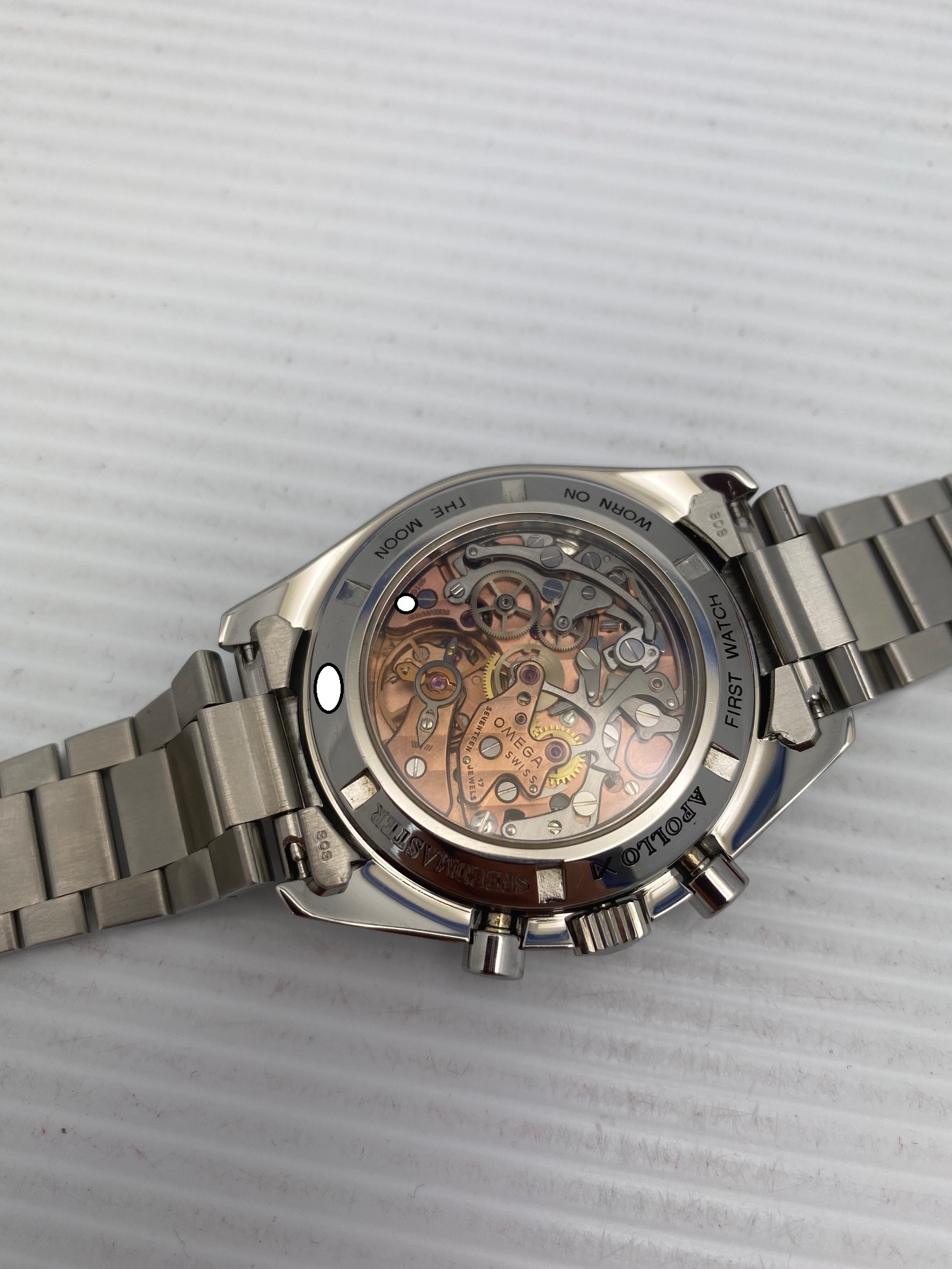 I have an Omega Speedmaster Professional 345.0808 first series A1000 for sale. The Hesalite look with viewing of the beautiful movement! Please take a look at photos for condition. This is first series of 1000 produced with the copper movement.