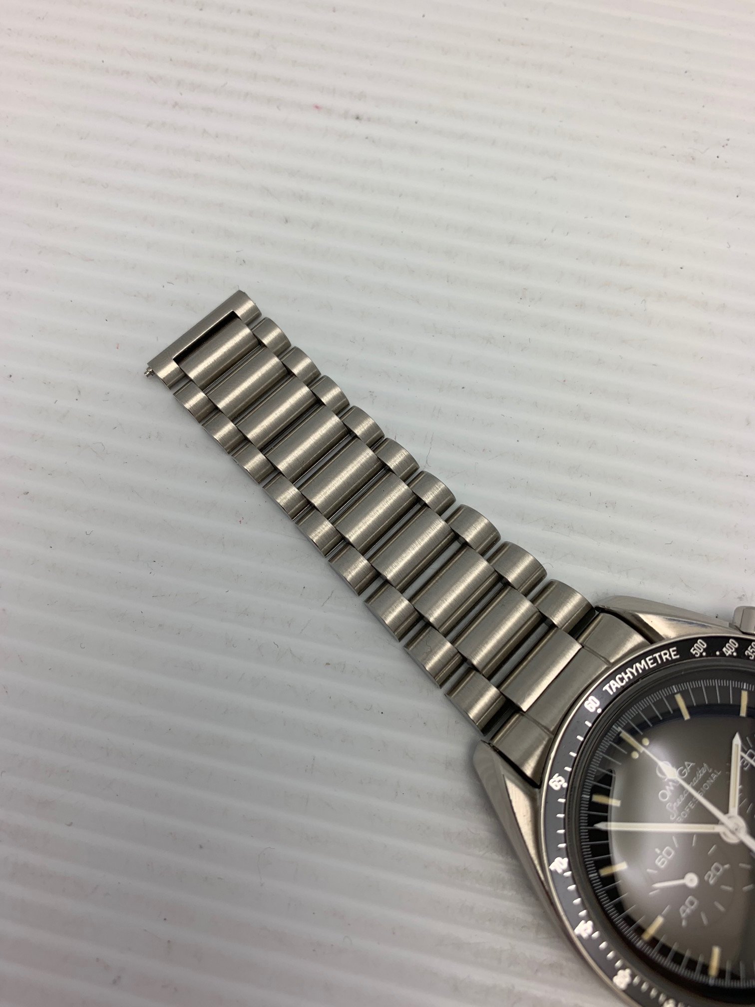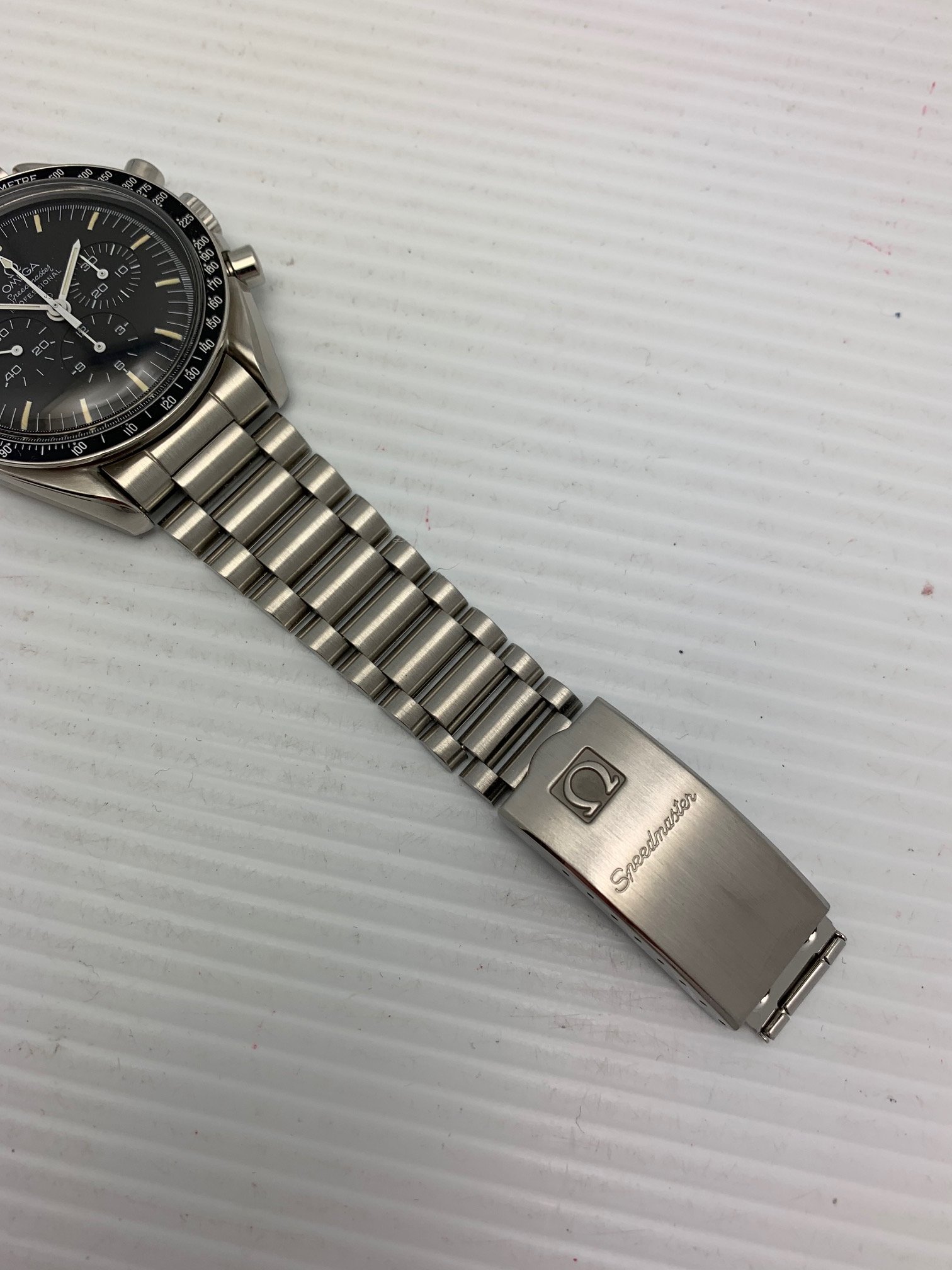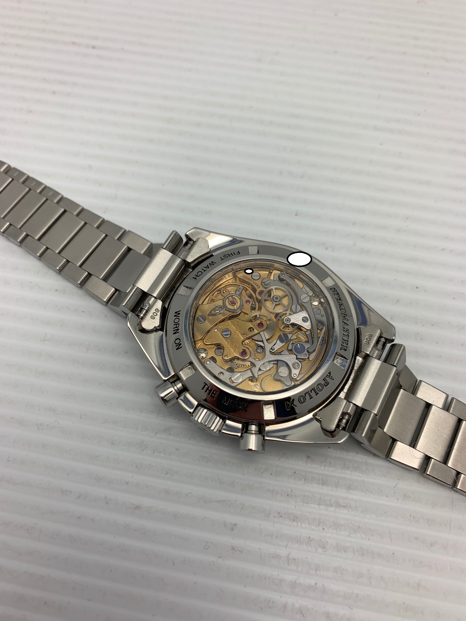 I have an Omega Speedmaster Professional 345.0808 second series A1000 for sale. The Hesalite look with viewing of the beautiful movement! Please take a look at photos for condition. This is part of the second series of 1000 produced with the yellow gilt movement.