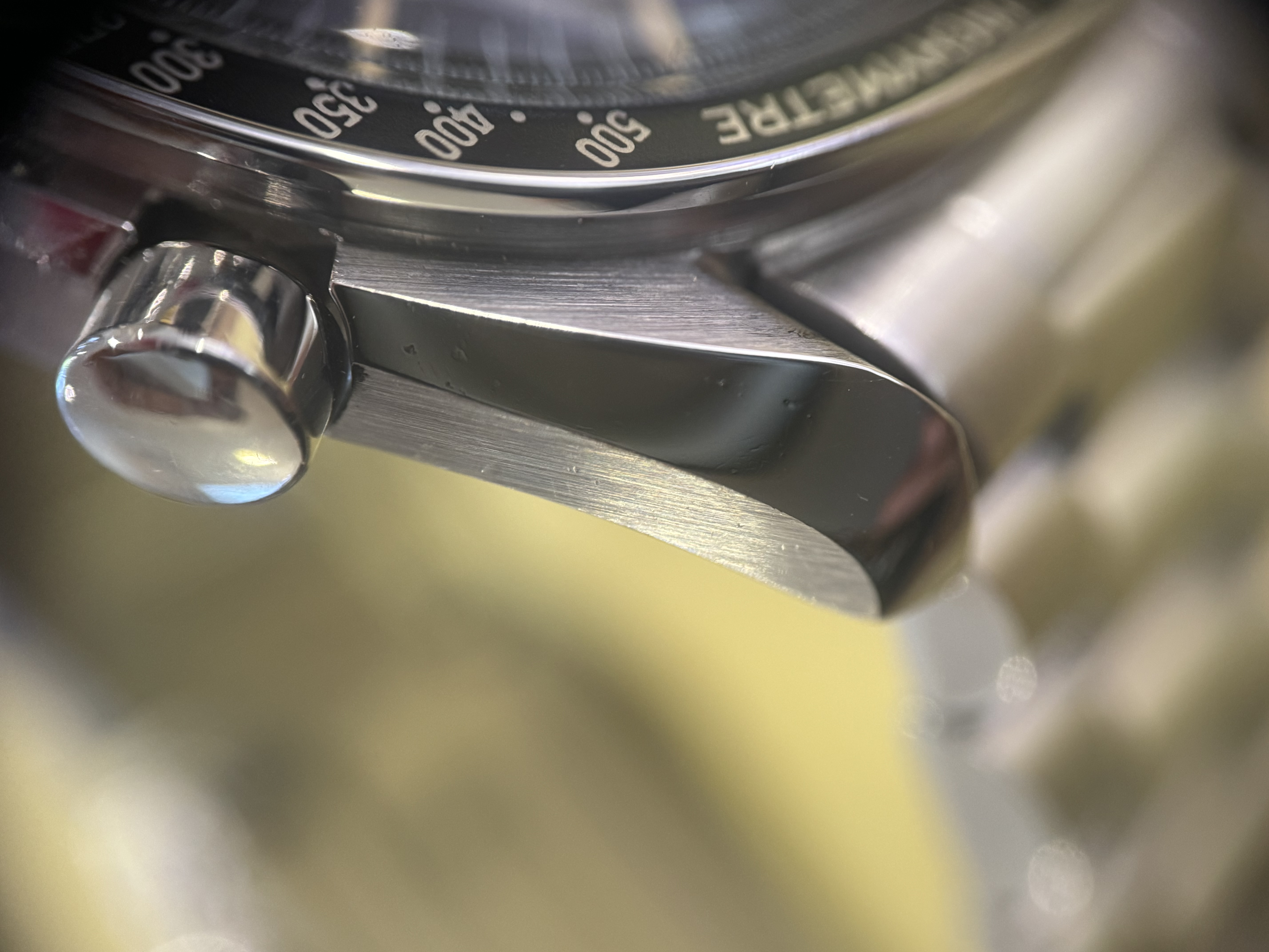 Crown (24/wide; type A3) and pushers (wide and tall; type 4): in very good condition.