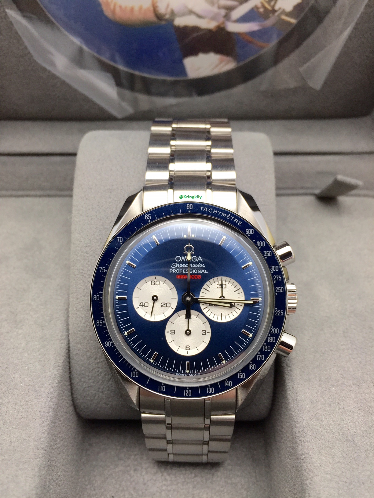I have an Omega Speedmaster Professional 3565.80 for sale. It comes with only what is stated or shown in photos. It runs well and has plenty of amplitude. This was once a grail for many with the beautiful blue dial. Please view pictures for any wear marks. These are getting harder and harder to find.