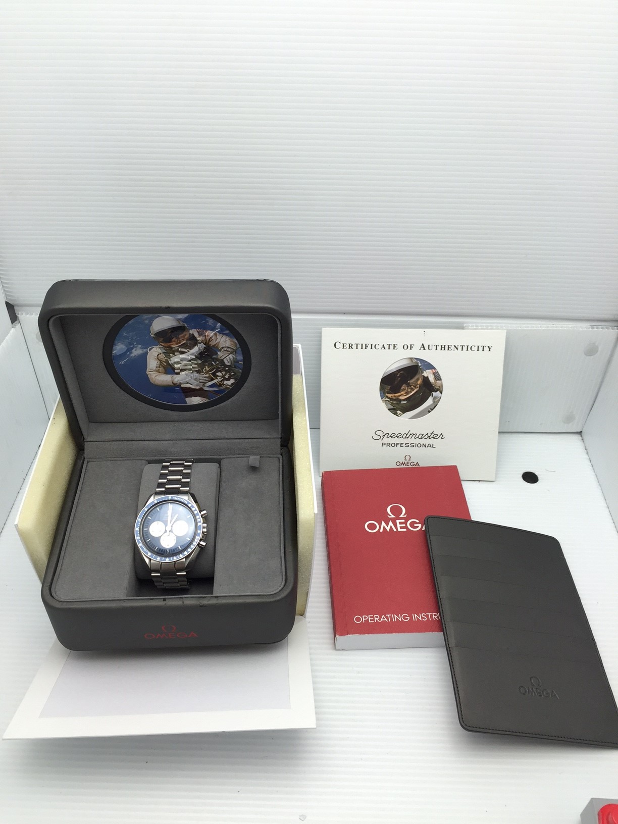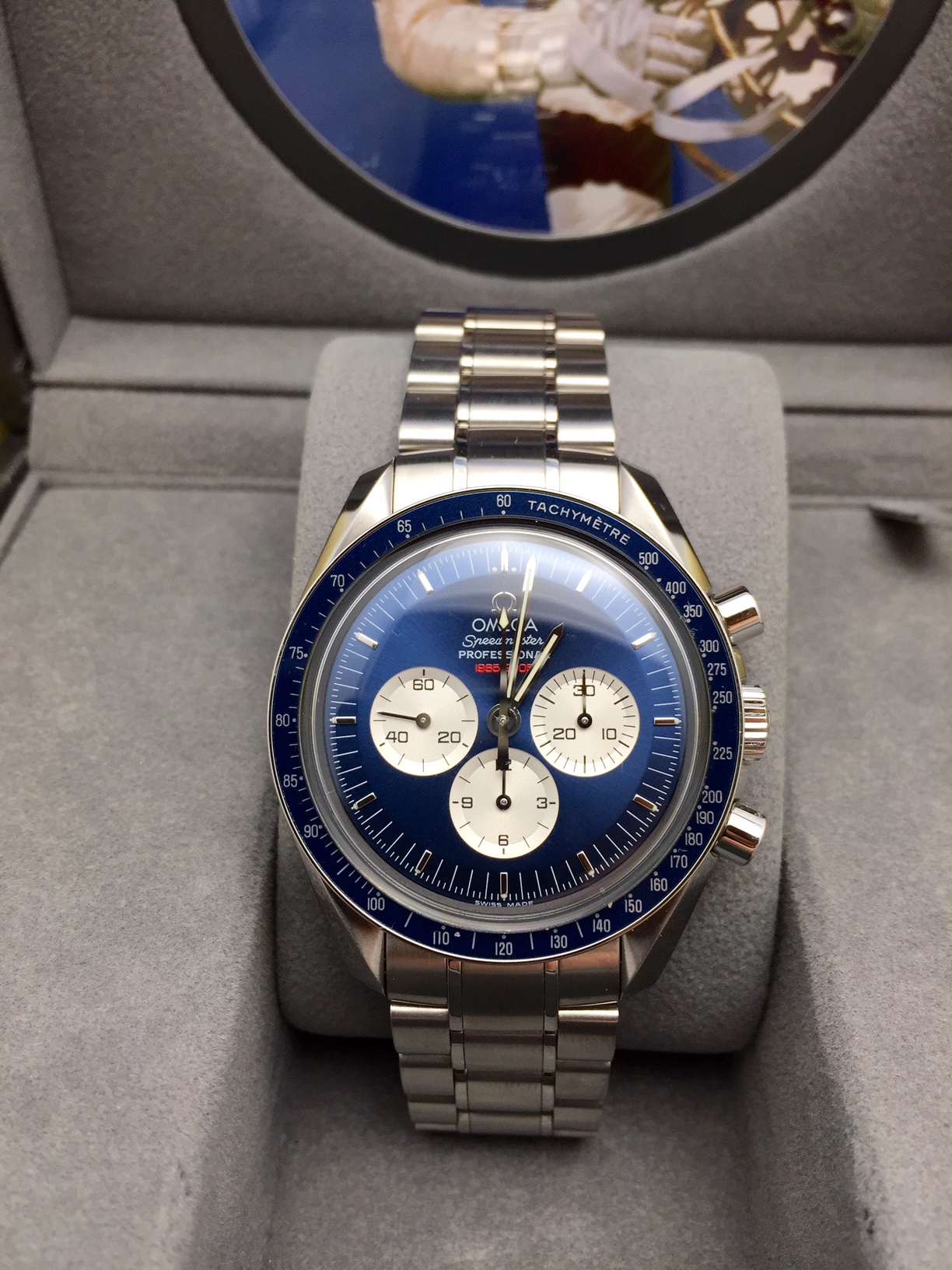 I have an Omega Speedmaster Professional 3565.80 for sale. It comes with only what is stated or shown in photos. It runs well and has plenty of amplitude. This was once a grail for many with the beautiful blue dial. Please view pictures for any wear marks but looks very clean. These are getting harder and harder to find.