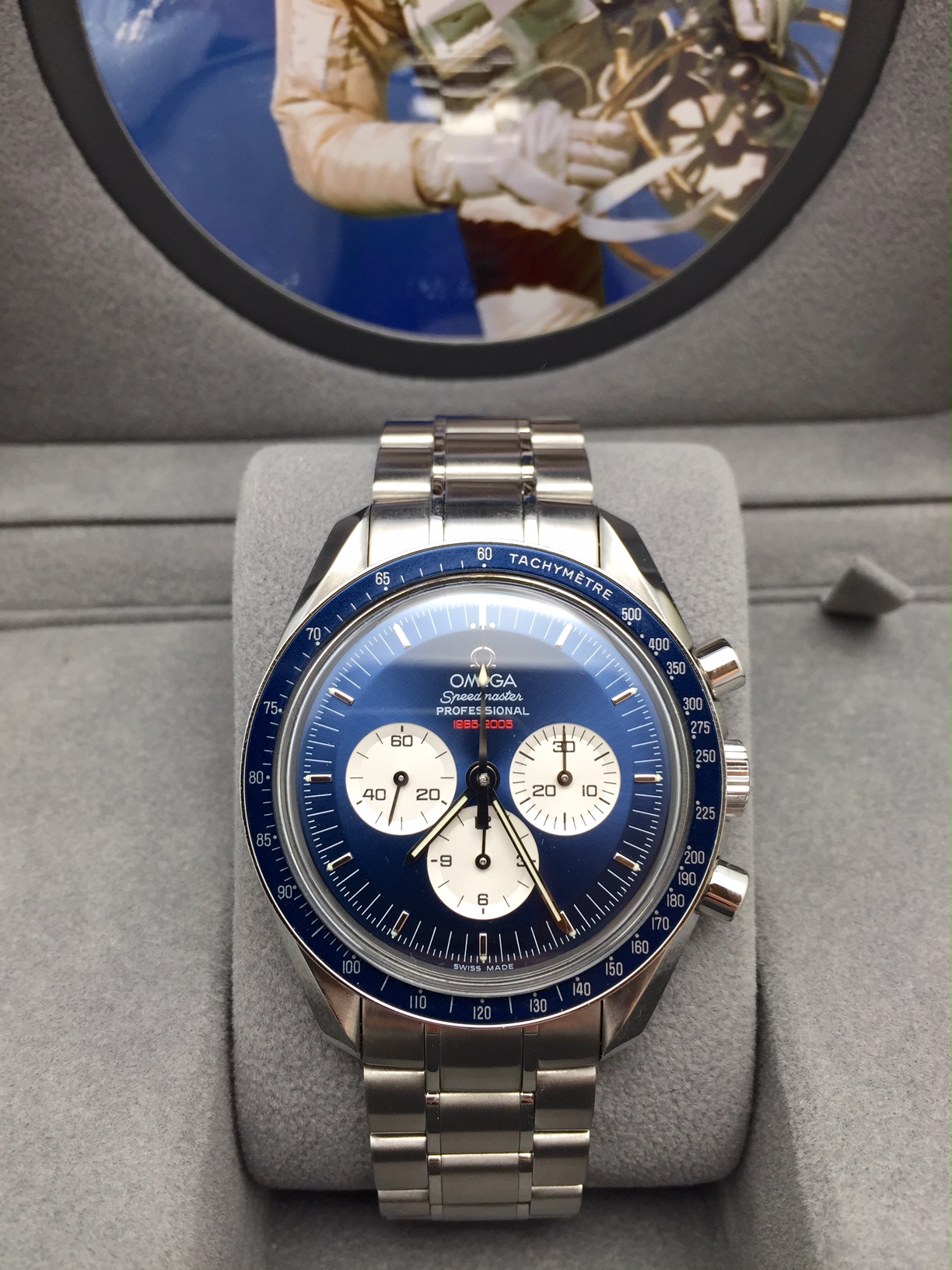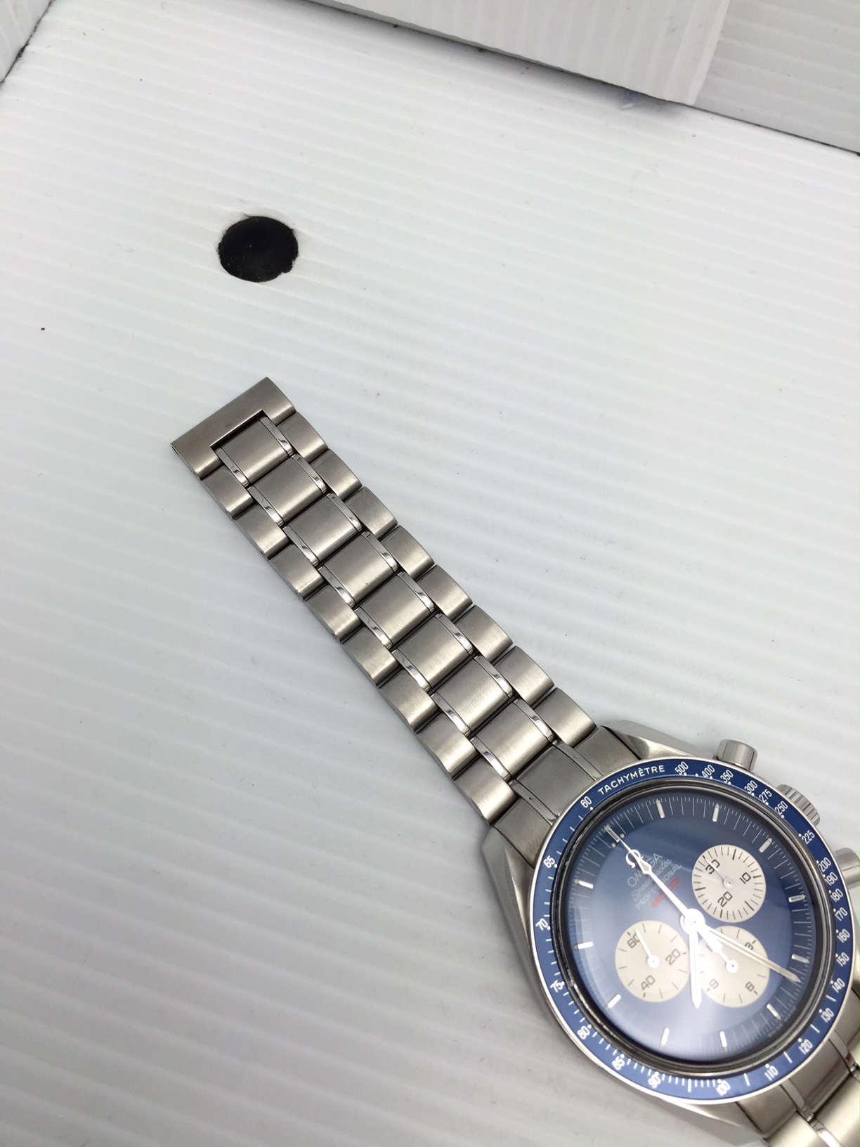 I have an Omega Speedmaster Professional 3565.80 for sale. It comes with only what is stated or shown in photos. It runs well and has plenty of amplitude. This was once a grail for many with the beautiful blue dial. Please view pictures for any wear marks.