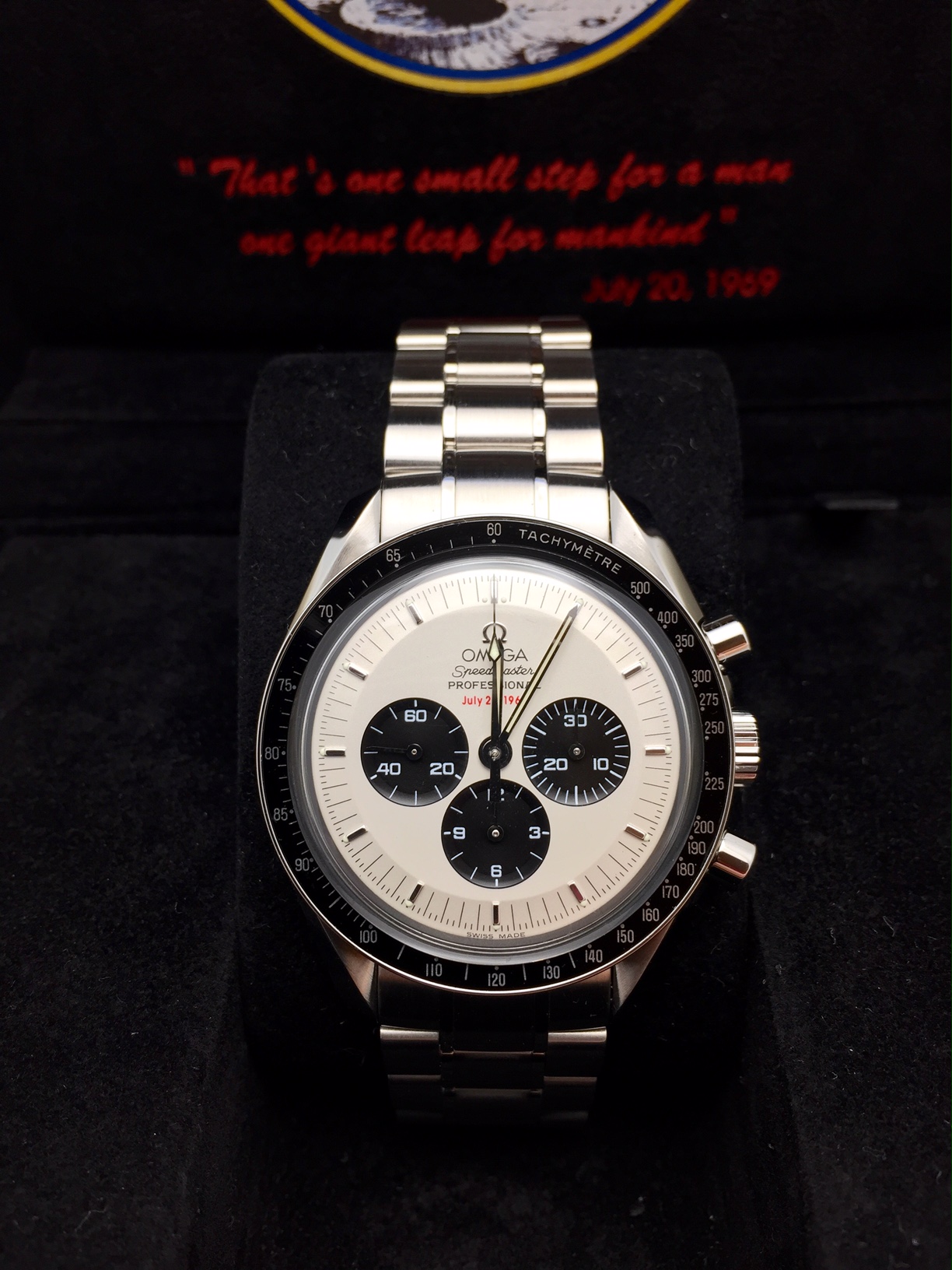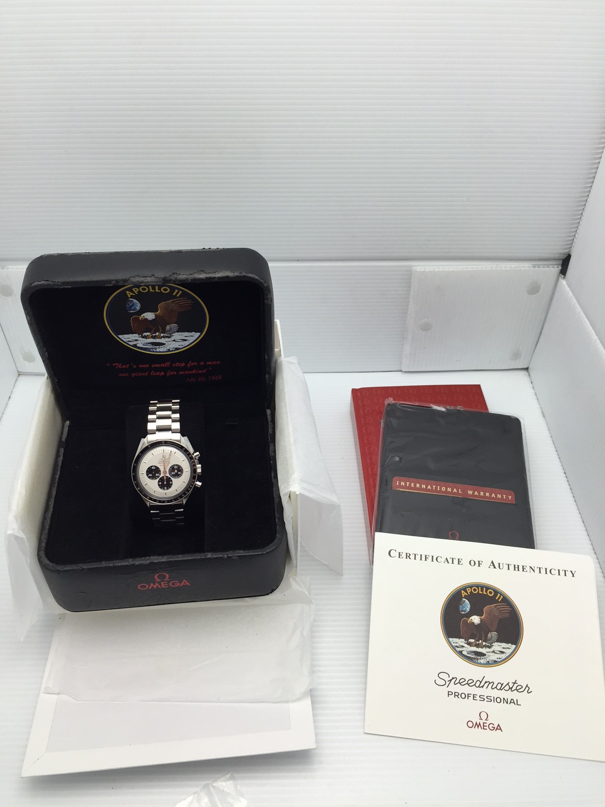 I have an Omega Speedmaster Professional 3569.31 for sale. It comes with only what is stated or shown in photos. It runs well and has plenty of amplitude. The panda dial Apollo 11 is highly sought after. Please view pictures for any wear marks.