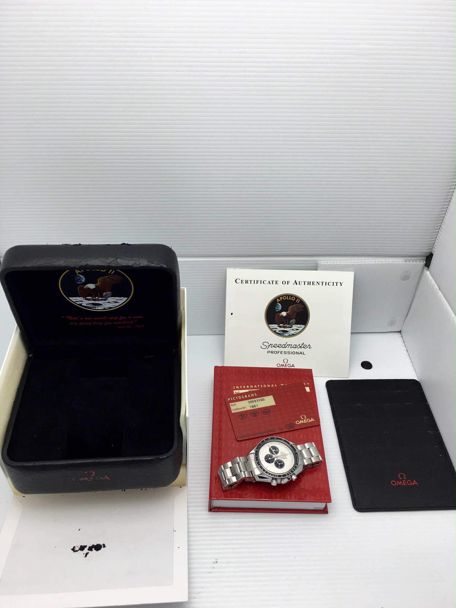 I have an Omega Speedmaster Professional 3569.31 for sale. It comes with only what is stated or shown in photos. It runs well and has plenty of amplitude. The panda dial Apollo 11 is highly sought after. Please view pictures for any wear marks.