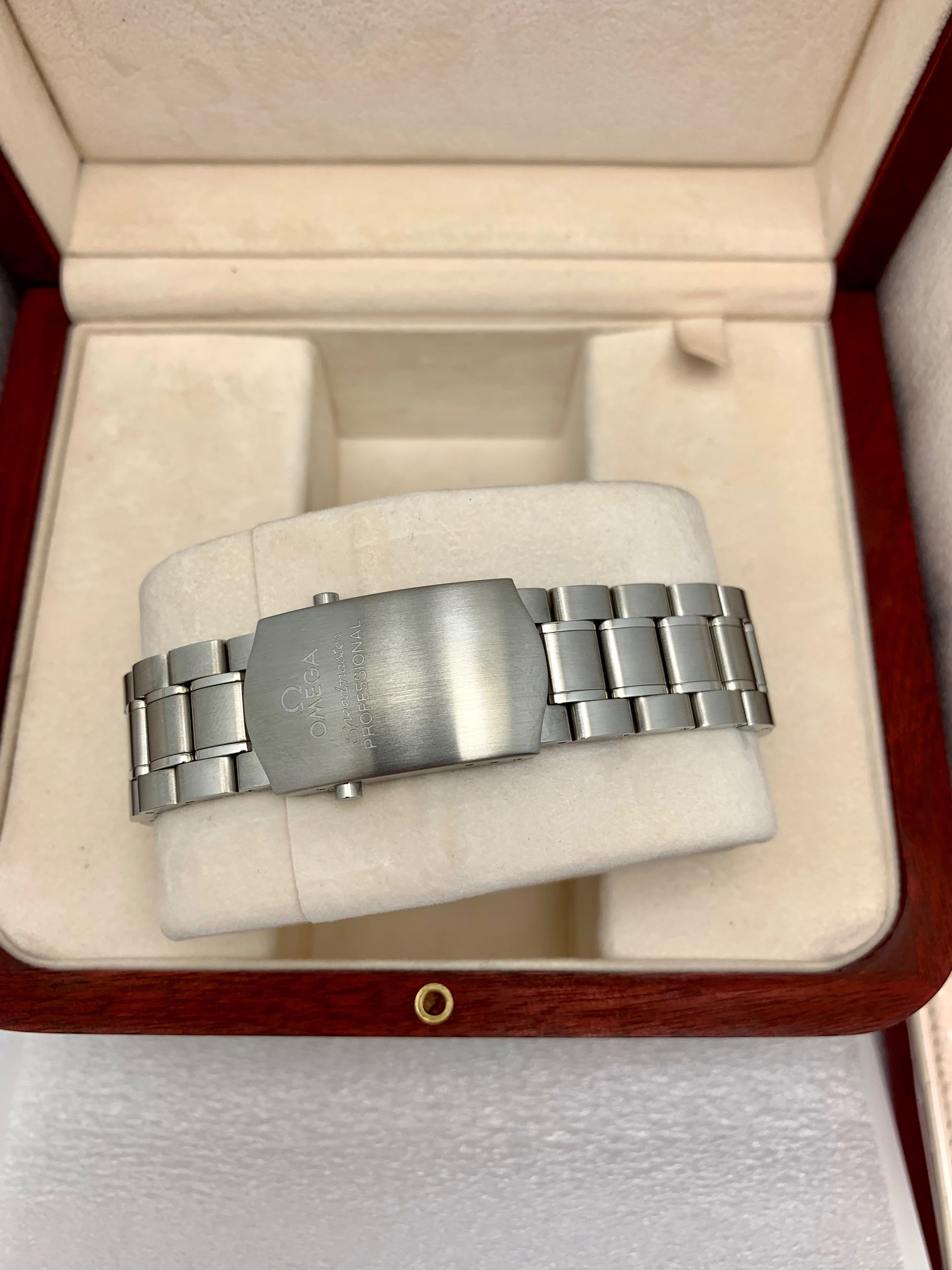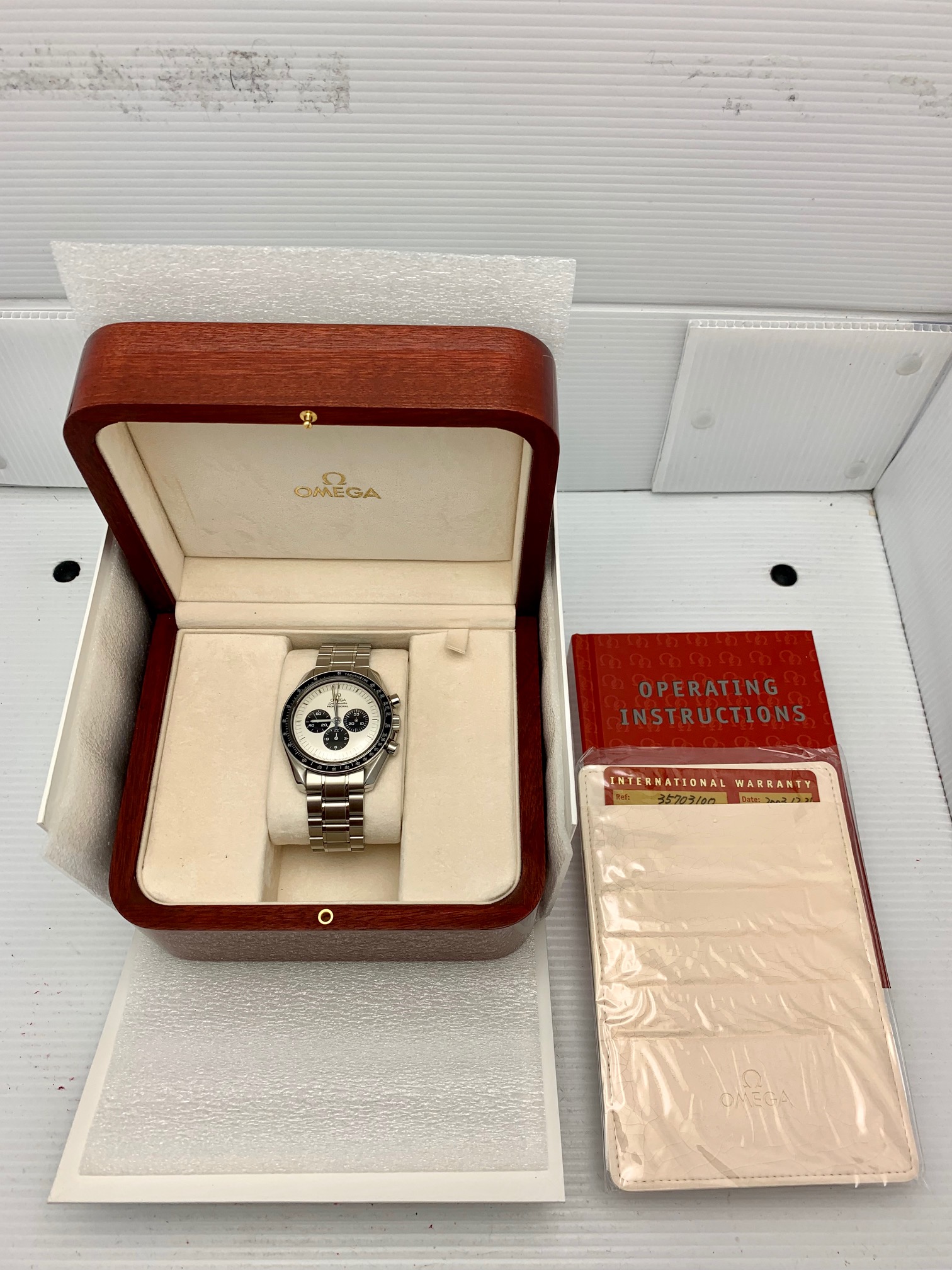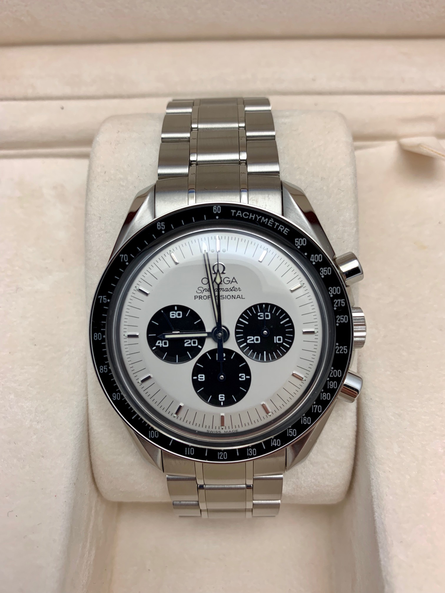 I have an Omega Speedmaster Professional 3570.31 "Mitsukoshi" for sale. Runs great and all functions work as expect. A mint example of this reference with a super sharp case. Please take a look at the photos for condition. I have verified the serial and it is indeed a real Mitsukoshi not a put together piece. Only 300 of these were made by factory all the rest are put together. Only getting harder and harder to find.