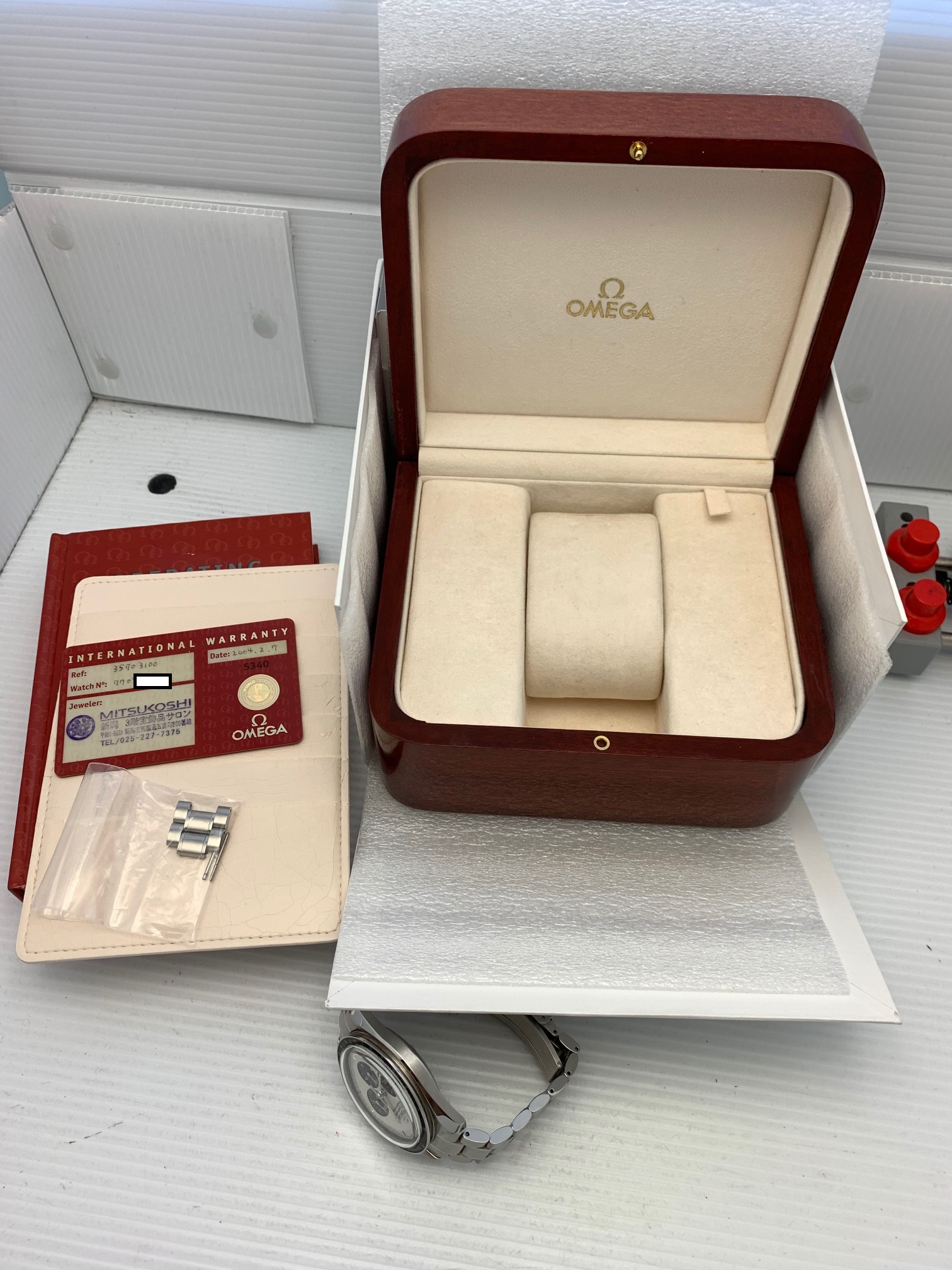 Accessories: Both Omega boxes, card holder, manual, warranty card