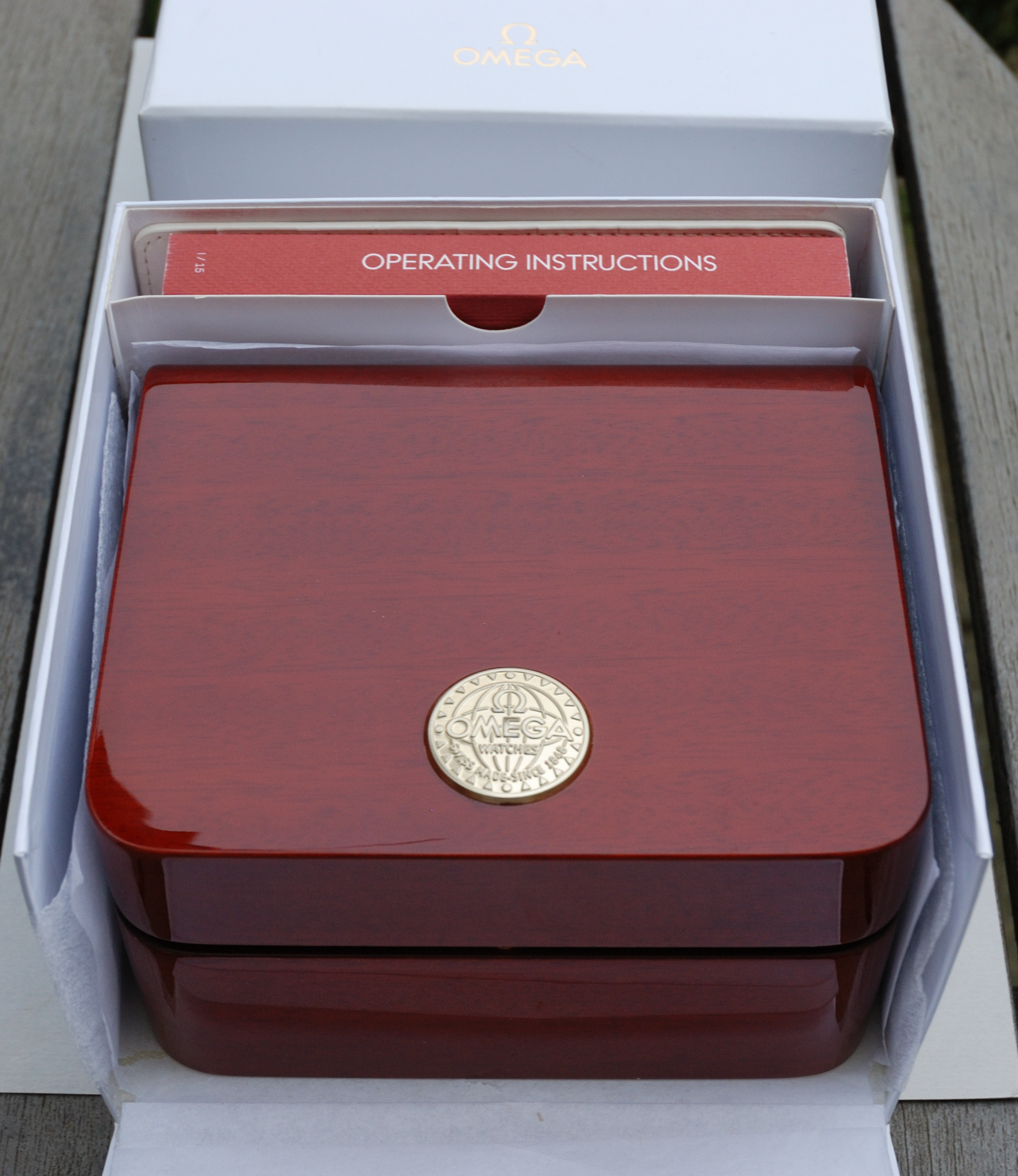 As there has been some debate about the type of box used for this model, I have both the red leatherette type and the red wood (NOS) version available. Price below is for the watch with the leatherette box - if the wood version is preferred, I will supply this instead for an additional £40.