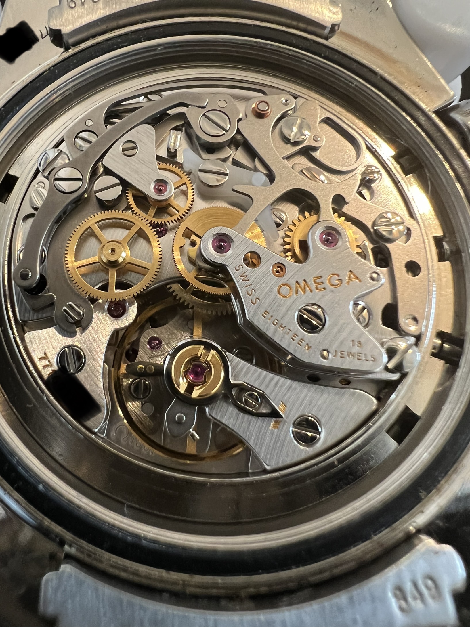 MOVEMENT: Iconic hand wound cal 1861 running very well! Within seconds a day from my experience, winding smooth, all hands reset crisply on the chrono. No service history known but in great shape!