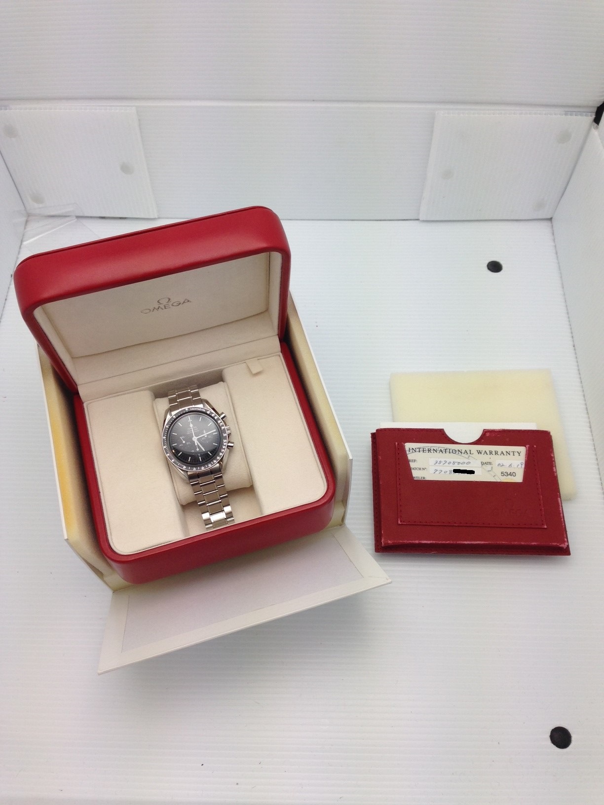 Accessories: Both Omega boxes, manuals, card holder. Warranty card