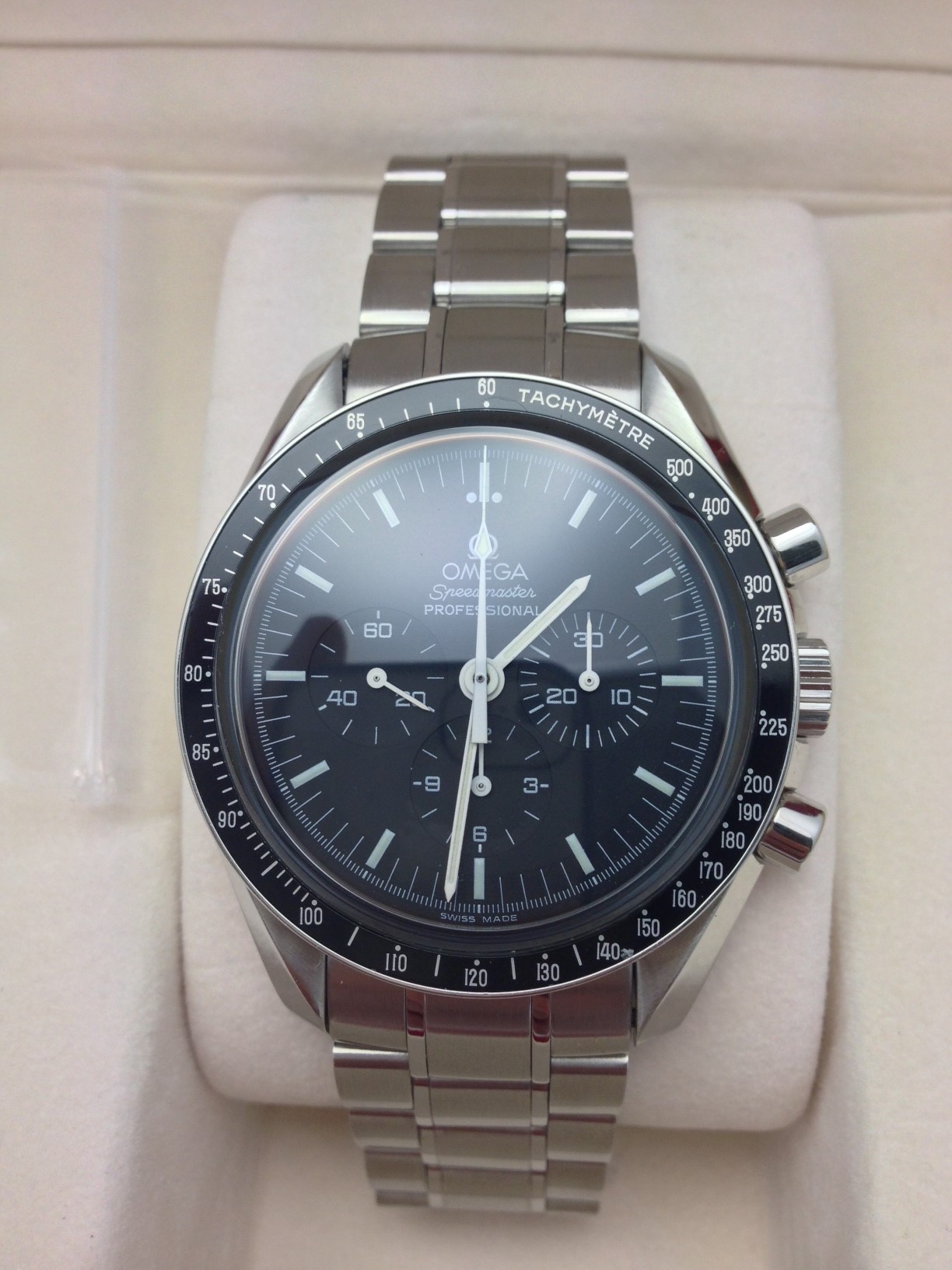 I have an Omega Speedmaster Professional 3573.50 for sale. Runs great and all functions work as expected. Please take a look at the photos for condition. Just fully serviced and warranty will be provided until 4/2015 by me.